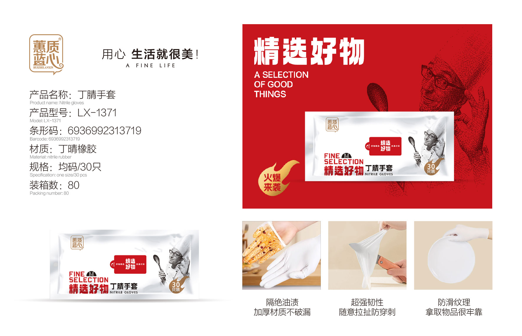 蕙质蓝心丁腈手套-均码(30只/包)