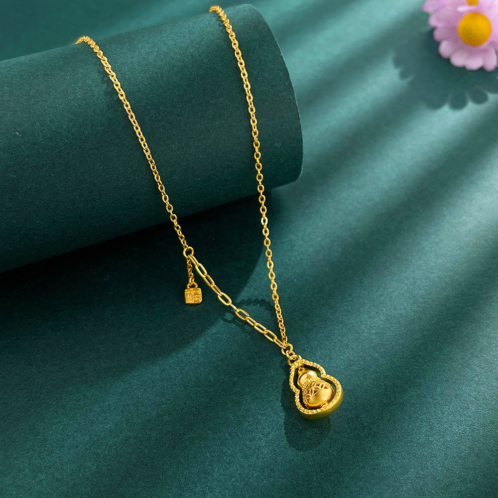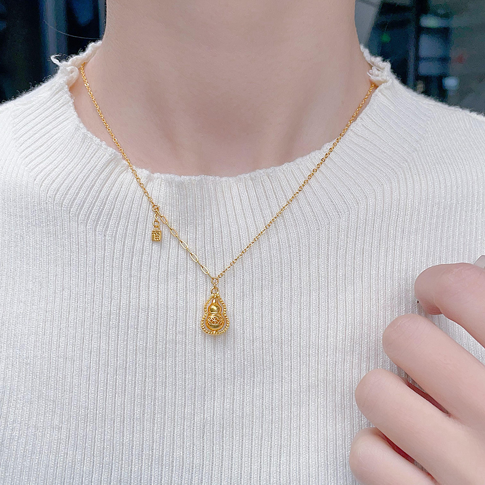 【限时克减128元】足金999.9 #非凡福佑 #招财纳福 #时来运转 空心福佑葫芦项链福牌吊饰AB链福禄双至可转花丝招财葫芦调节套链(AEWTL00153)