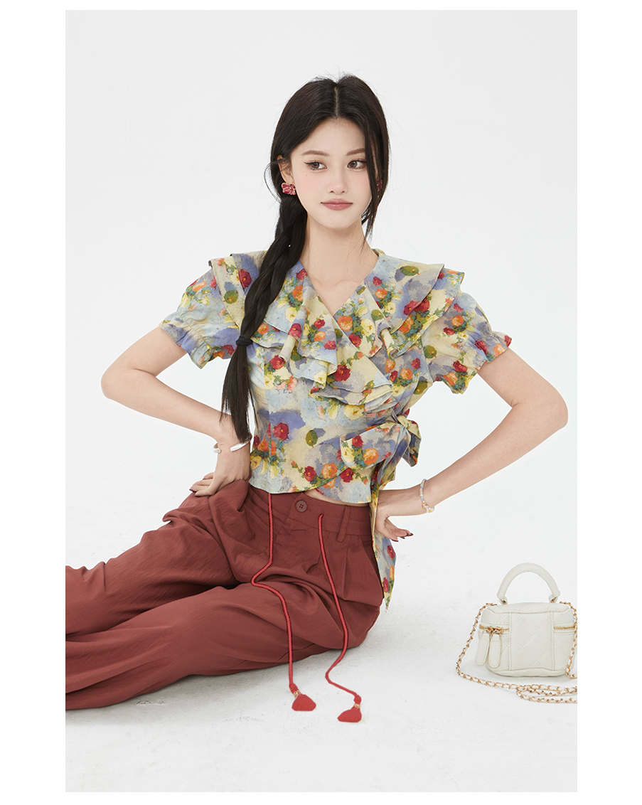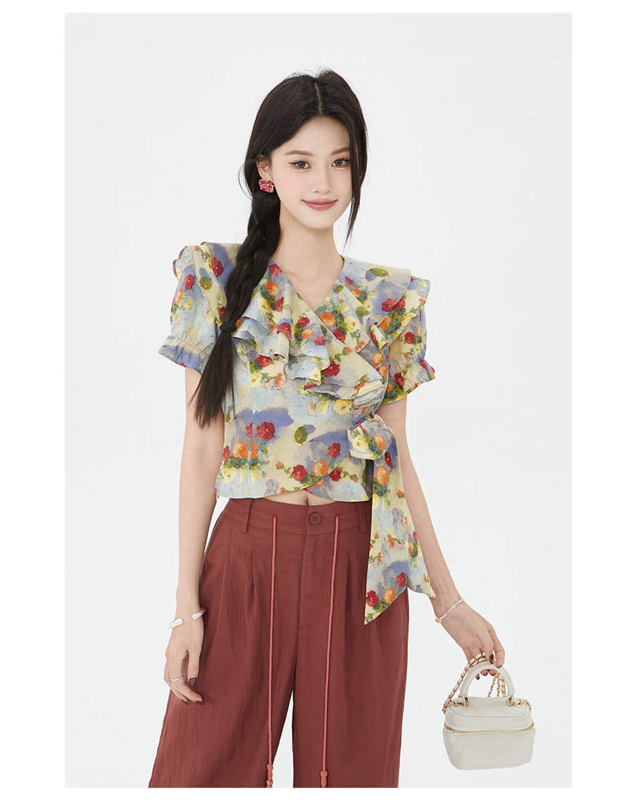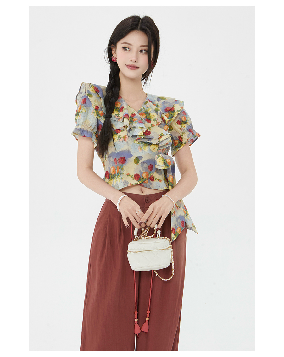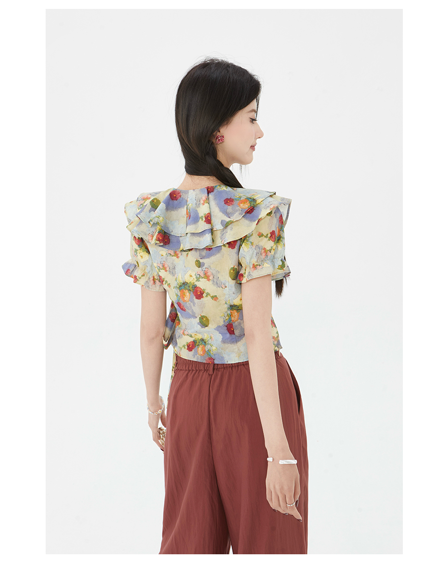 P&X设计师女装2025夏季碎花法式印花泡泡袖小衫825228077 花色