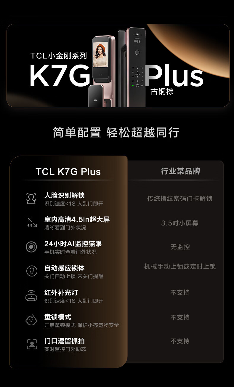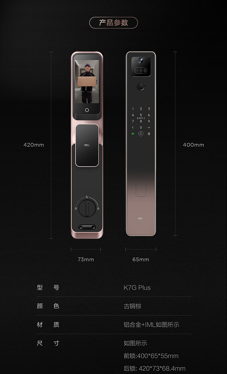 TCL3D人脸识别猫眼锁指纹锁智能锁智能门锁密码锁家用电子锁K7GPlus