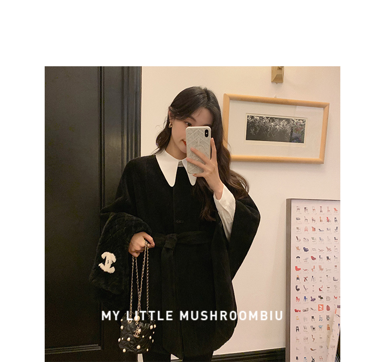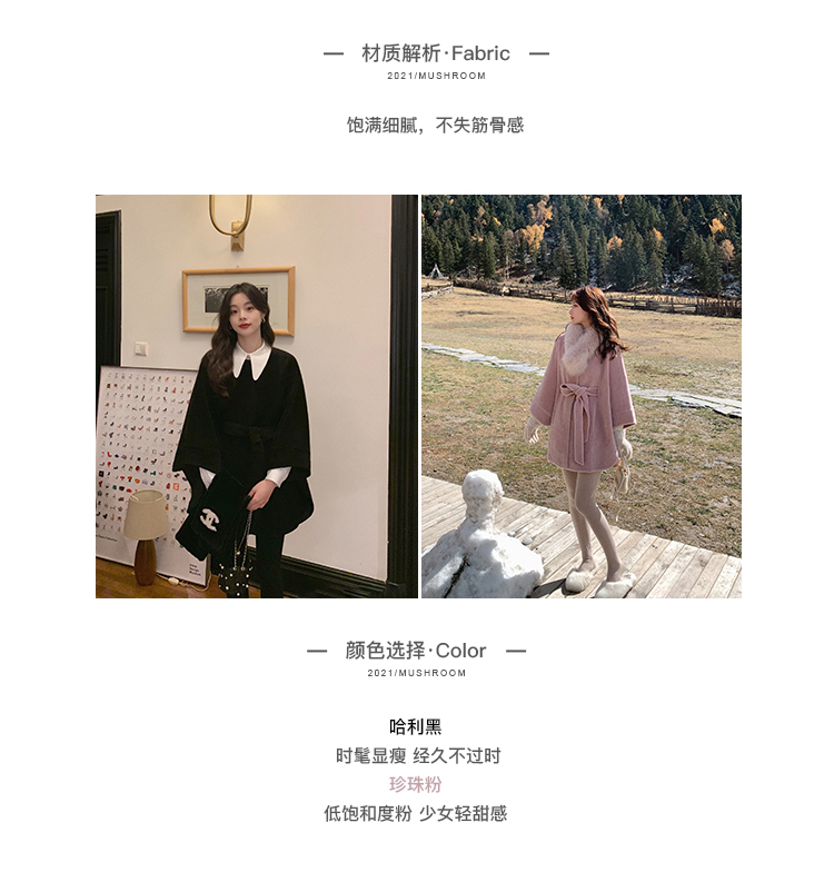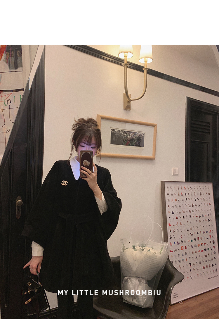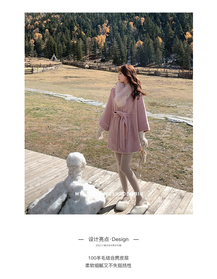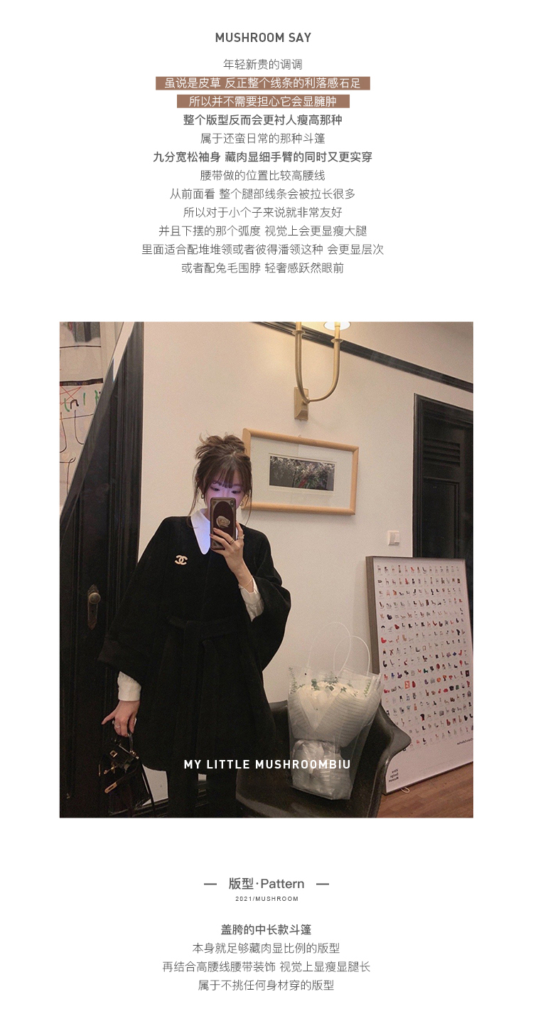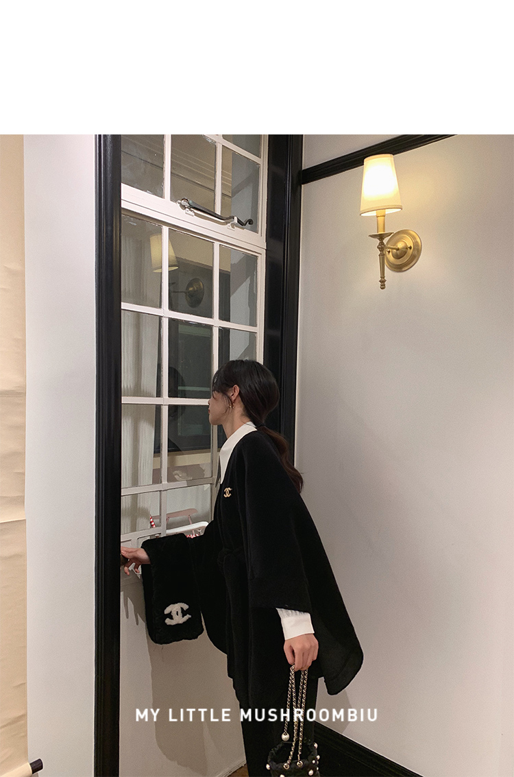 金蘑菇菇【黑标 皮草可可】喜马拉雅皮草~不显臃肿毛绒斗篷外套