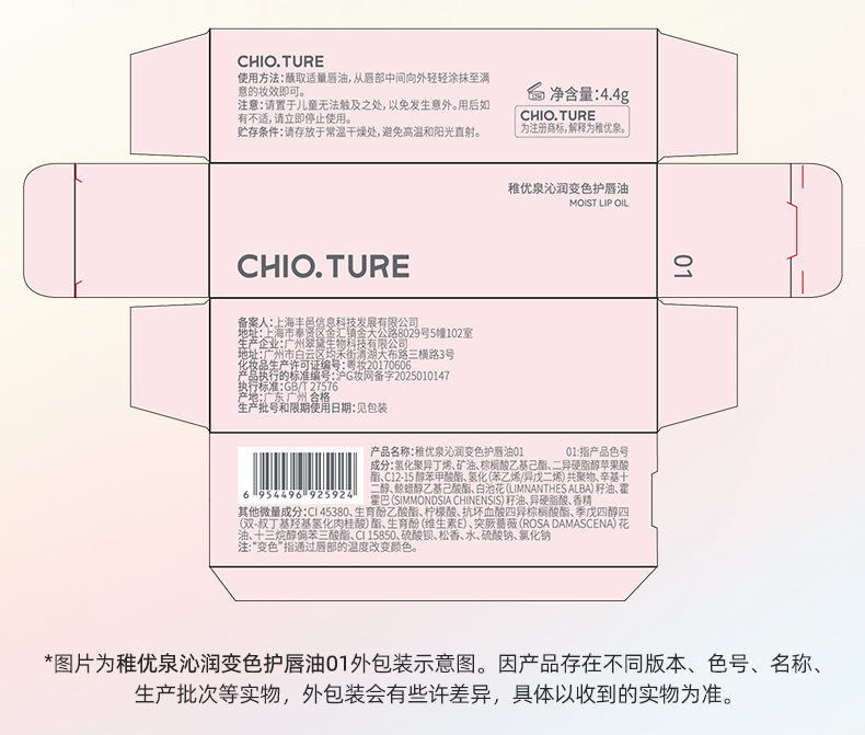稚优泉(CHIOTURE)沁润变色护唇油精华唇蜜釉妆前打底改善干裂润唇