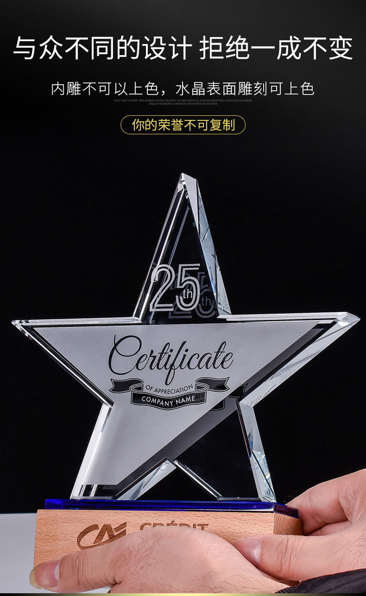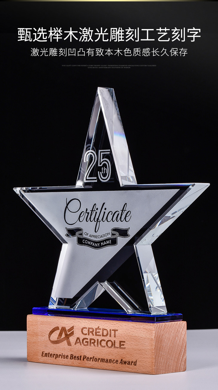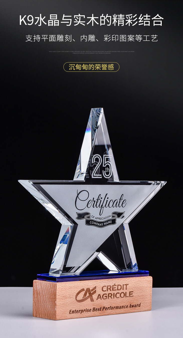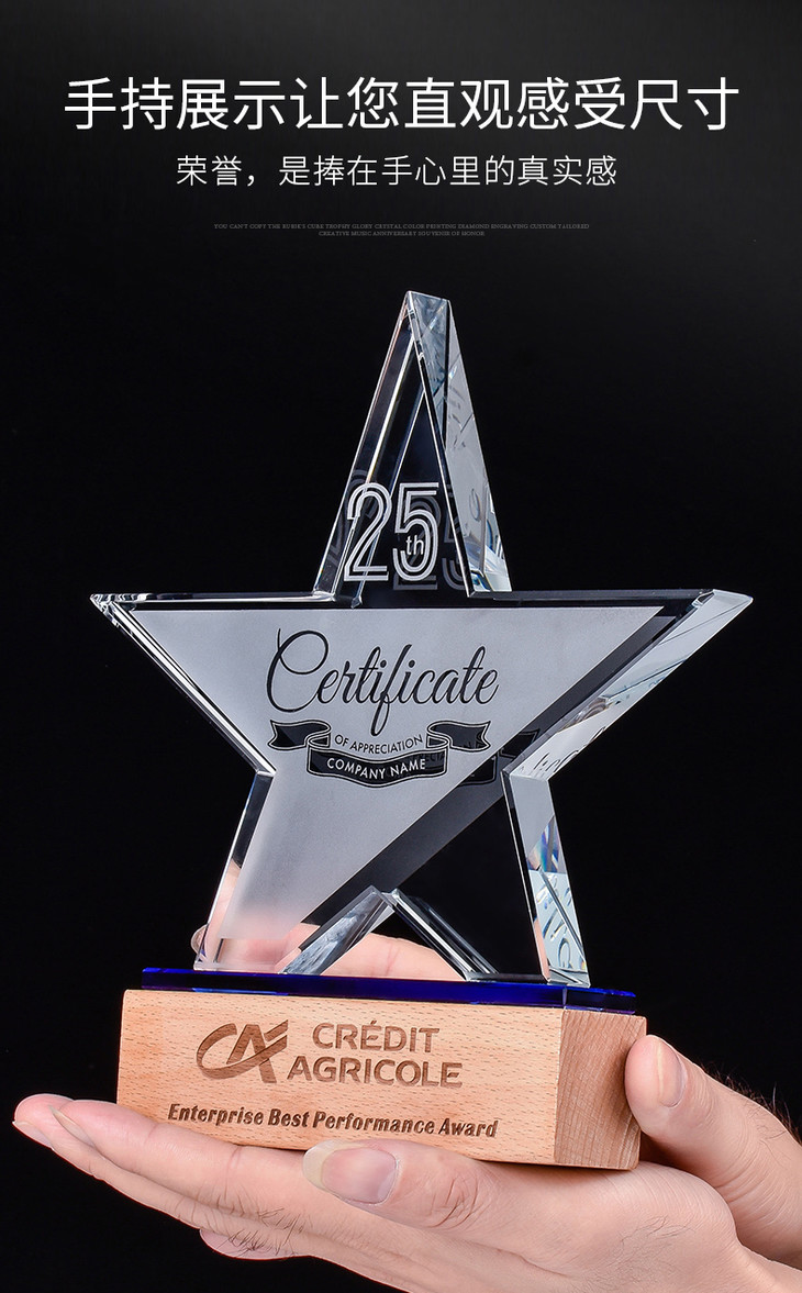奖杯定制水晶五角星授权牌定做创意优秀员工荣誉奖牌比赛纪念品