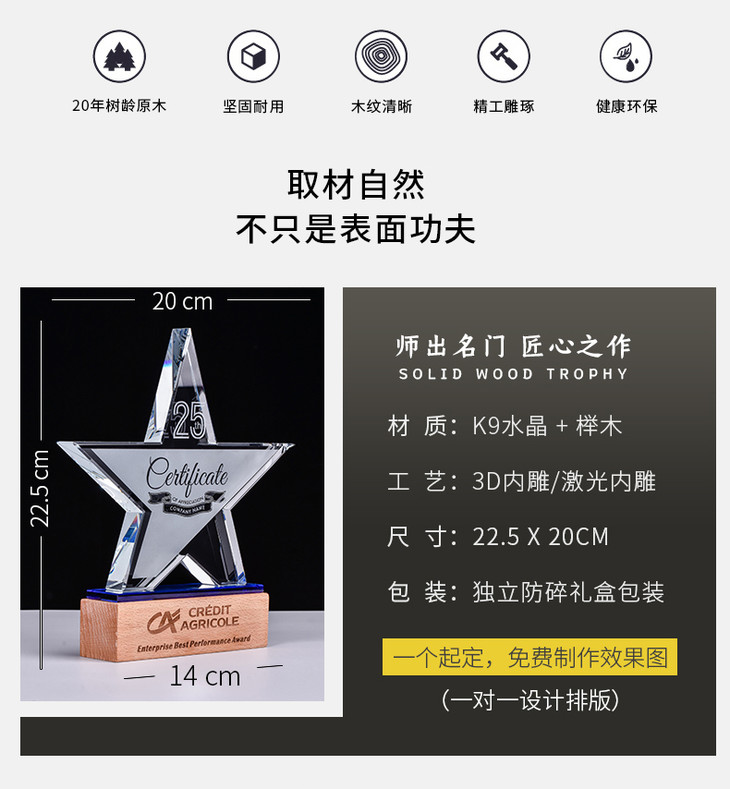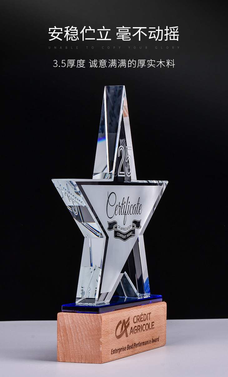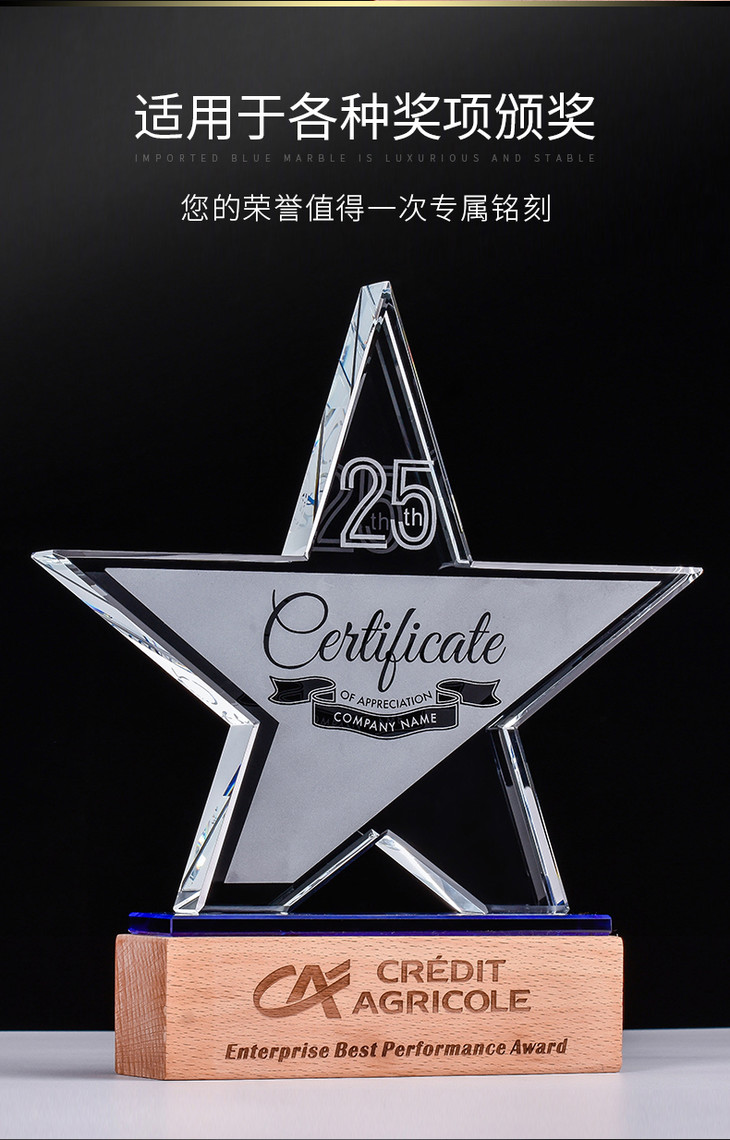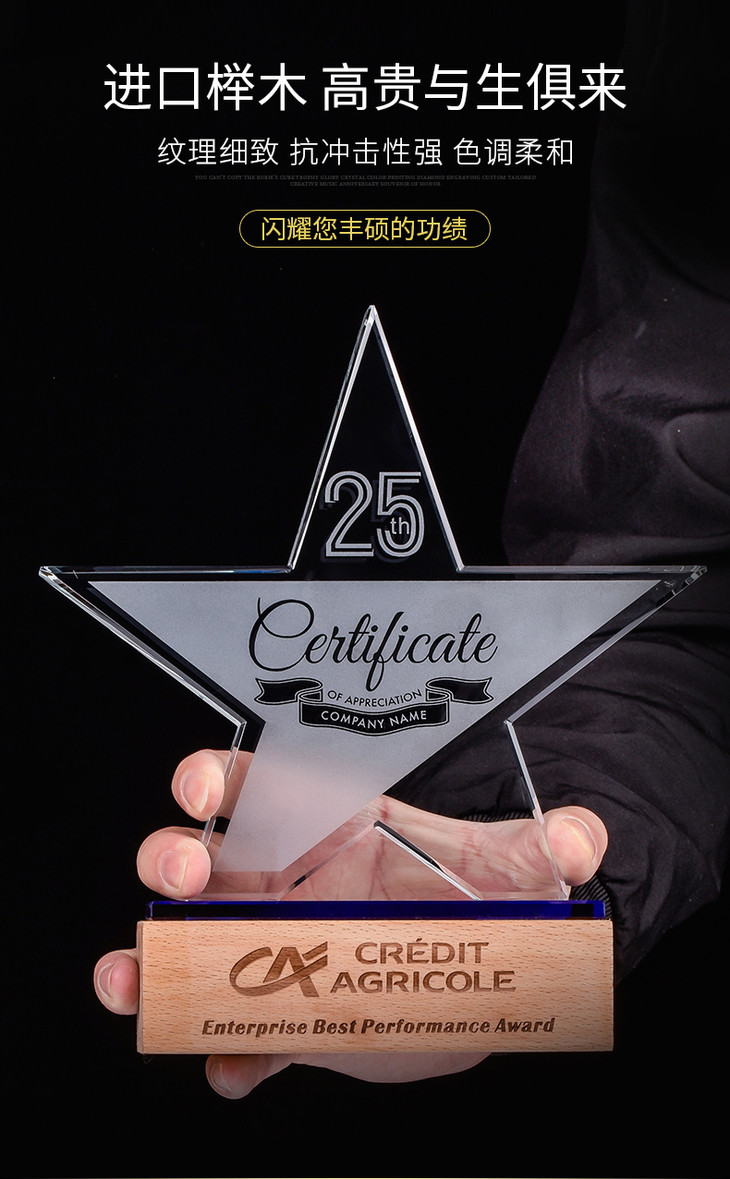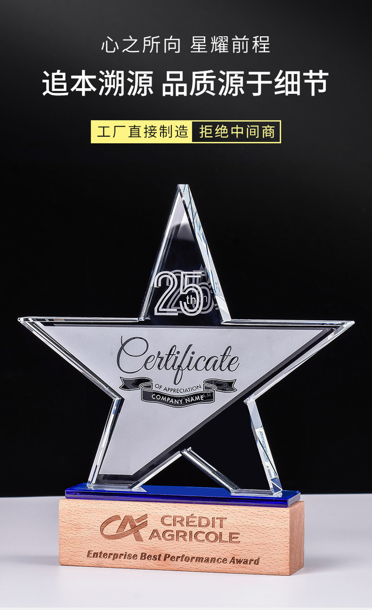 奖杯定制水晶五角星授权牌定做创意优秀员工荣誉奖牌比赛纪念品