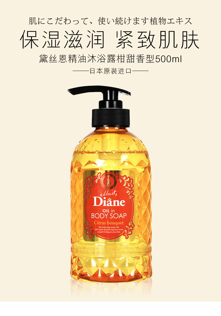日本黛丝恩精油沐浴露系列柑甜香型/茉莉花香型500ml 精油奢养清爽美肌泡沫细腻绵密 110138/117858