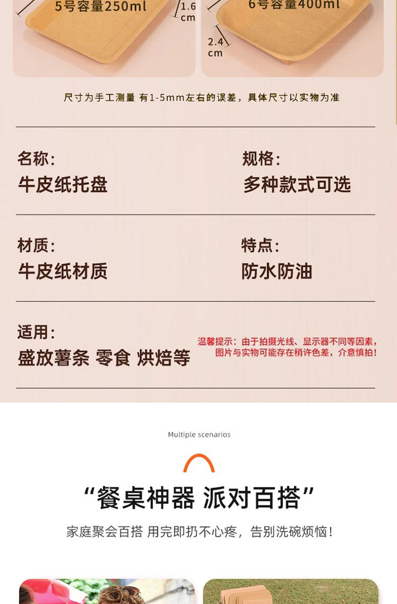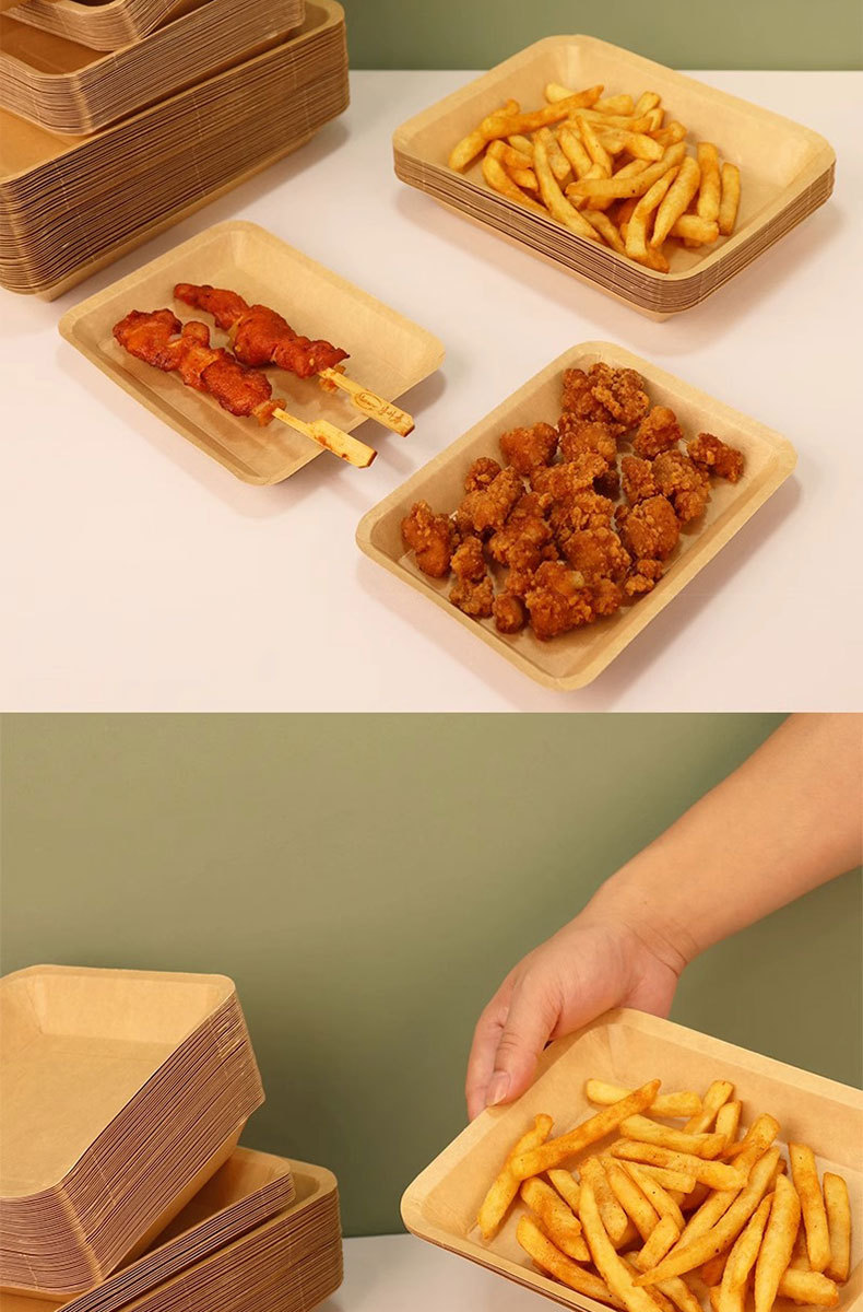 秒杀20个【防水防油!内置淋膜】食品级户外牛皮纸防油餐盒托盘一次性烧烤盘加厚纸盘炸鸡块薯条烤串盒食品敞口盘。rb