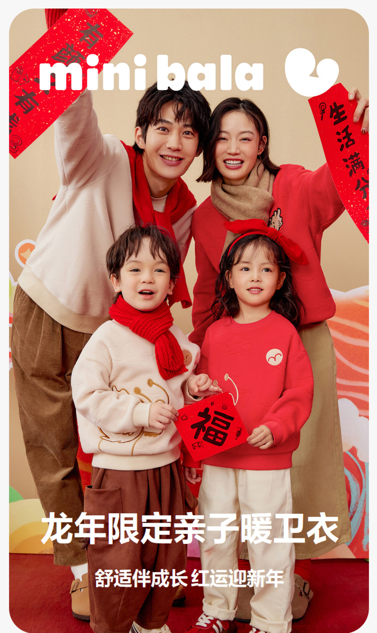 【mini亲子 儿童款 龙年非遗联名】迷你巴拉男童女童长袖卫衣儿童一家三口衣服