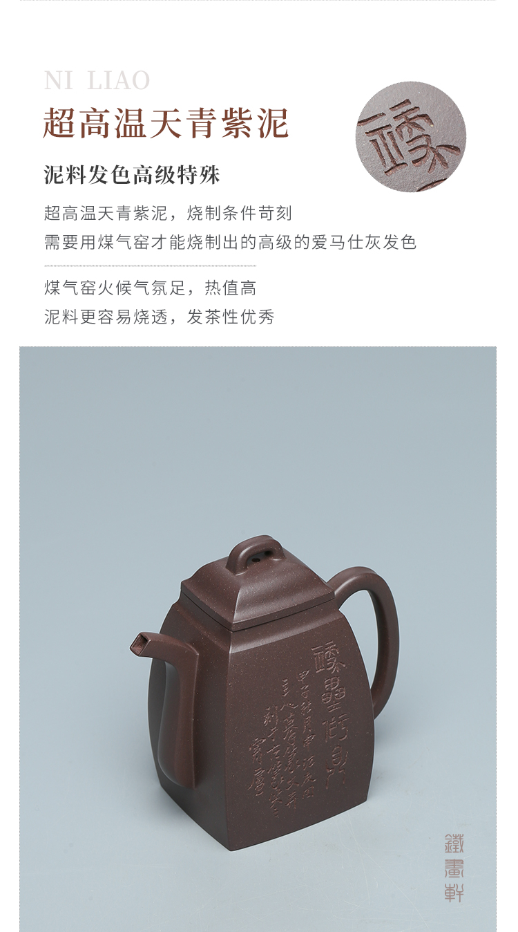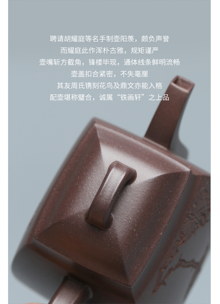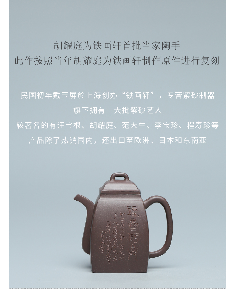百年紫砂品牌铁画轩出品 超高温天青紫泥 汉方壶紫砂壶200cc