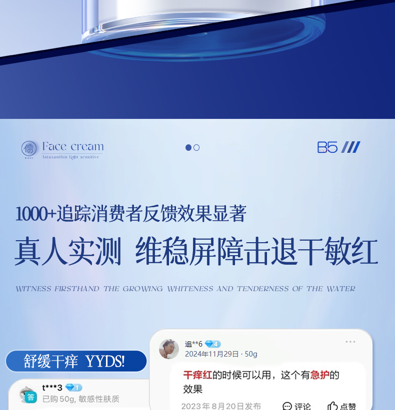 【下单就送补水面膜】儒意·泛醇特护保湿面霜 维生素原B5 修护屏障+高能锁水 解决秋冬季皮肤干燥、泛红、敏感等问题 50g/瓶