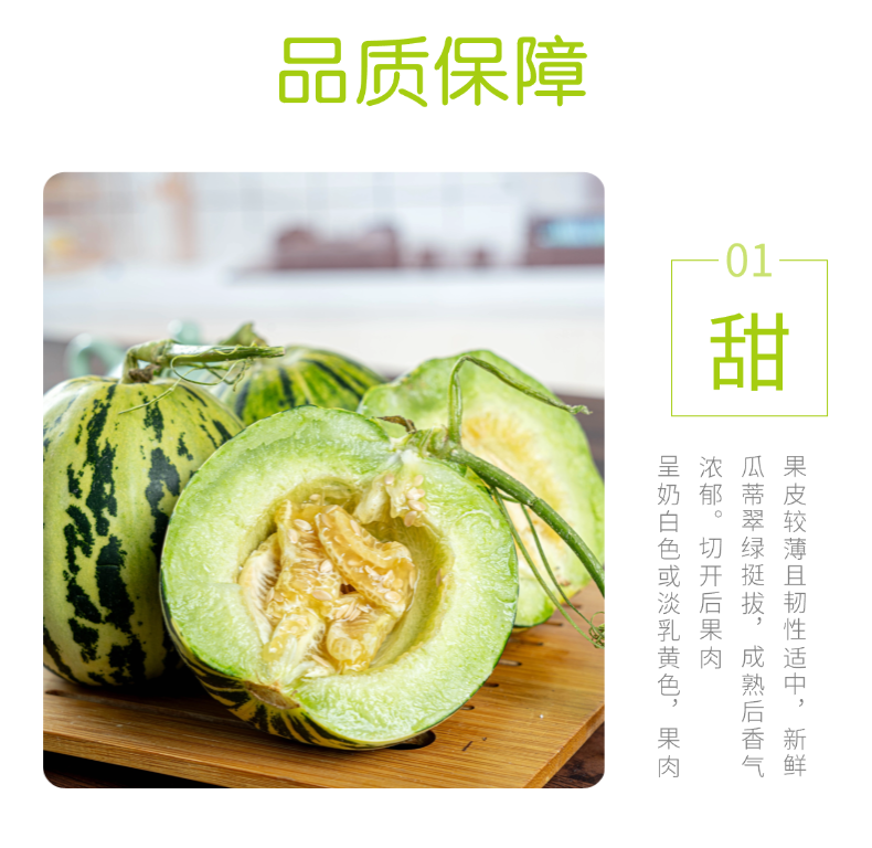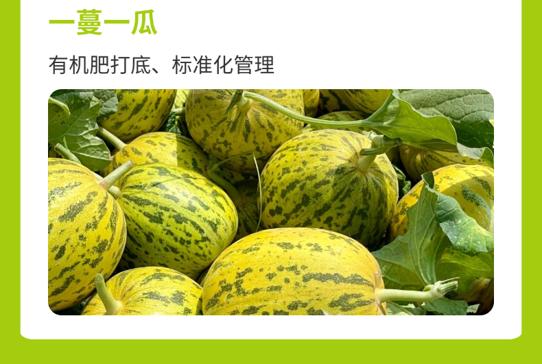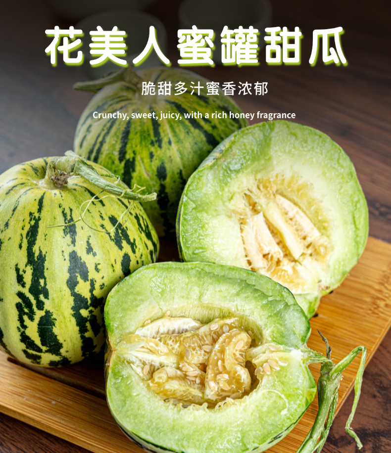 【产品亮点】肉厚细腻,脆甜多汁,瓜香浓郁,自然成熟