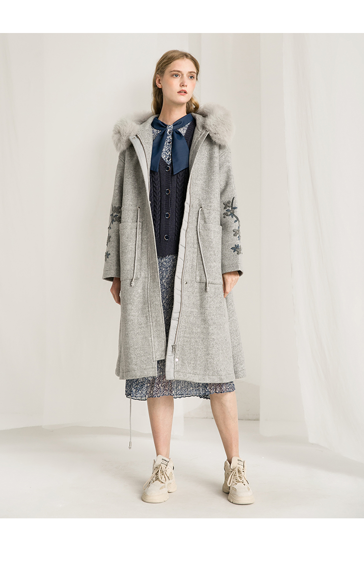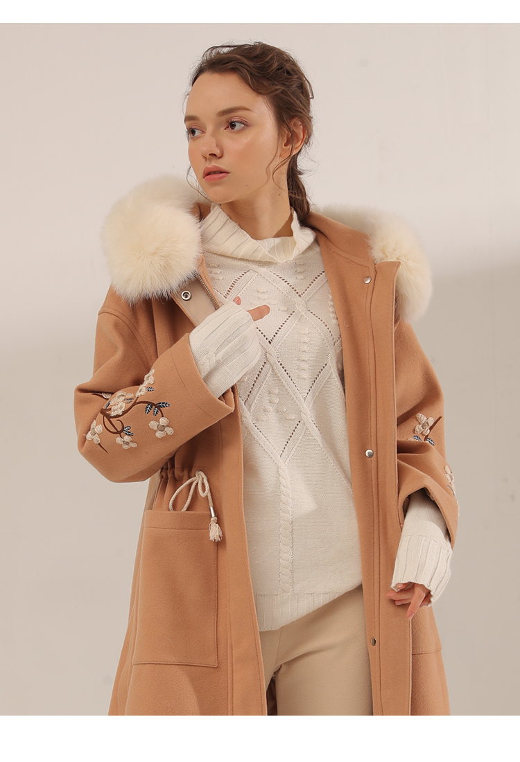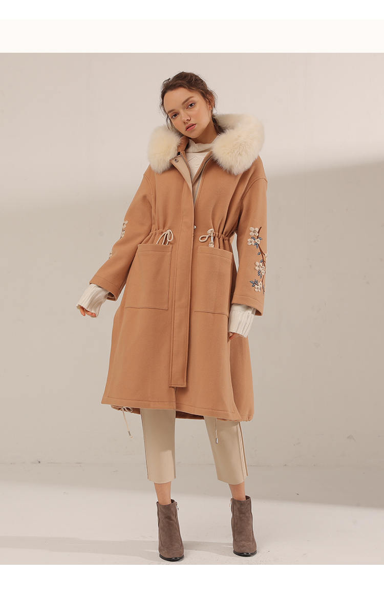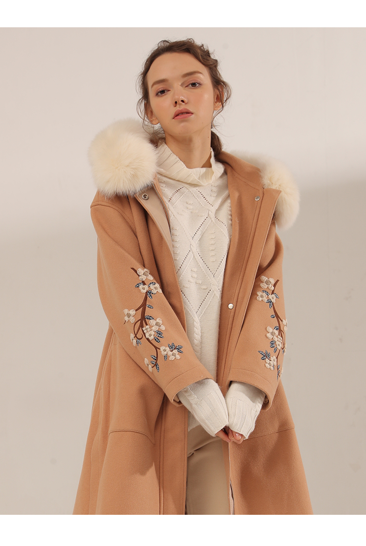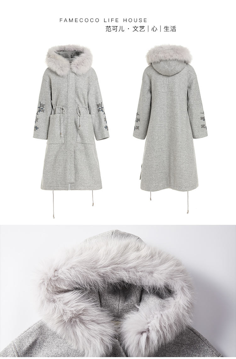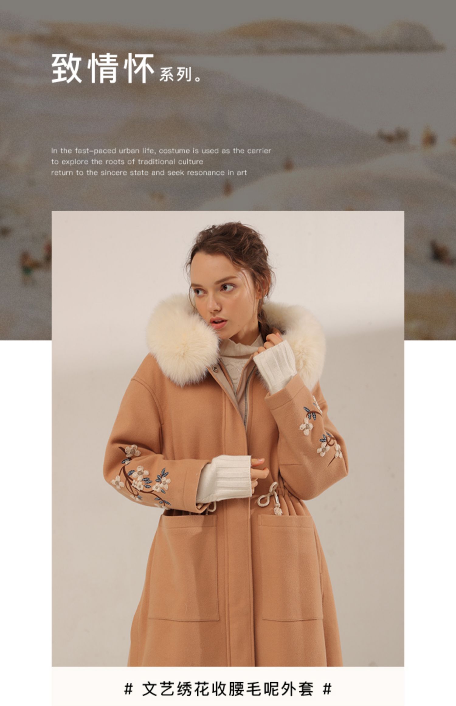 Famecoco范可儿女装英伦赫本风羊毛呢大衣F188AC034