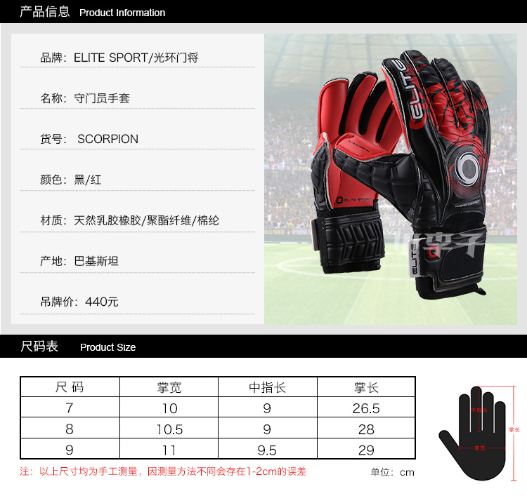 小李子:专柜正品Elite Sport光环足球新款守门员成人门将手套男