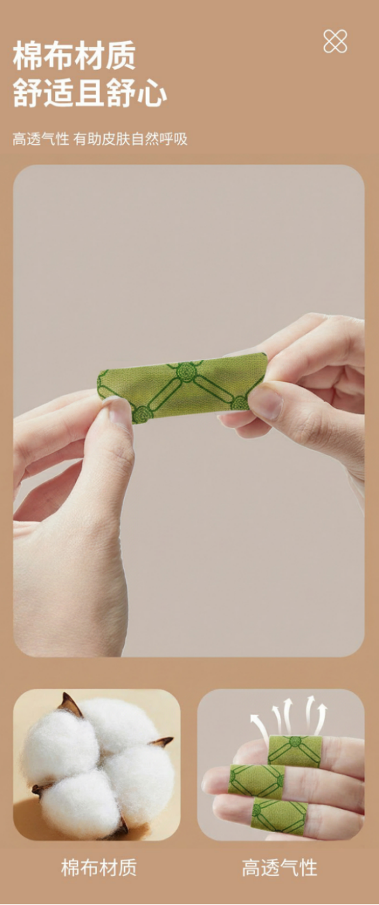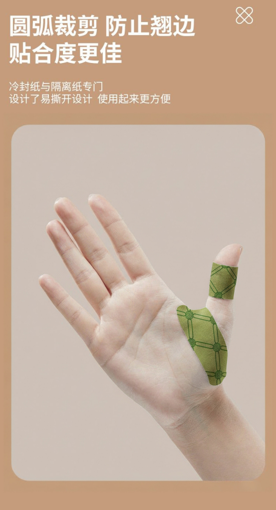 比传统老款的创可贴、纱布 干裂贴(非创可贴)用起来更方便、更卫生 手足使用紧密贴合无束缚,活动自如 一次一片,不用剪开,贴上也不耽误用手