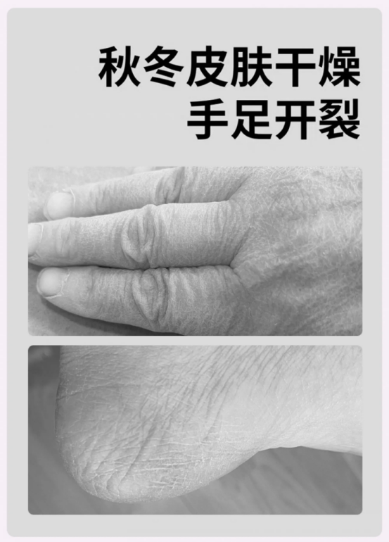 秋冬真的不要忽视手脚的裂口一旦严重真的很影响生活一沾水就会疼的龇牙咧嘴的干啥啥不方便!! 裂痕越来越大,不光碰水,连吹风都会疼走在路上,脚底的口子扯着疼,如同踩“玻璃渣”一样 脱鞋一看,甚至都渗血了!通勤的痛谁懂!?
