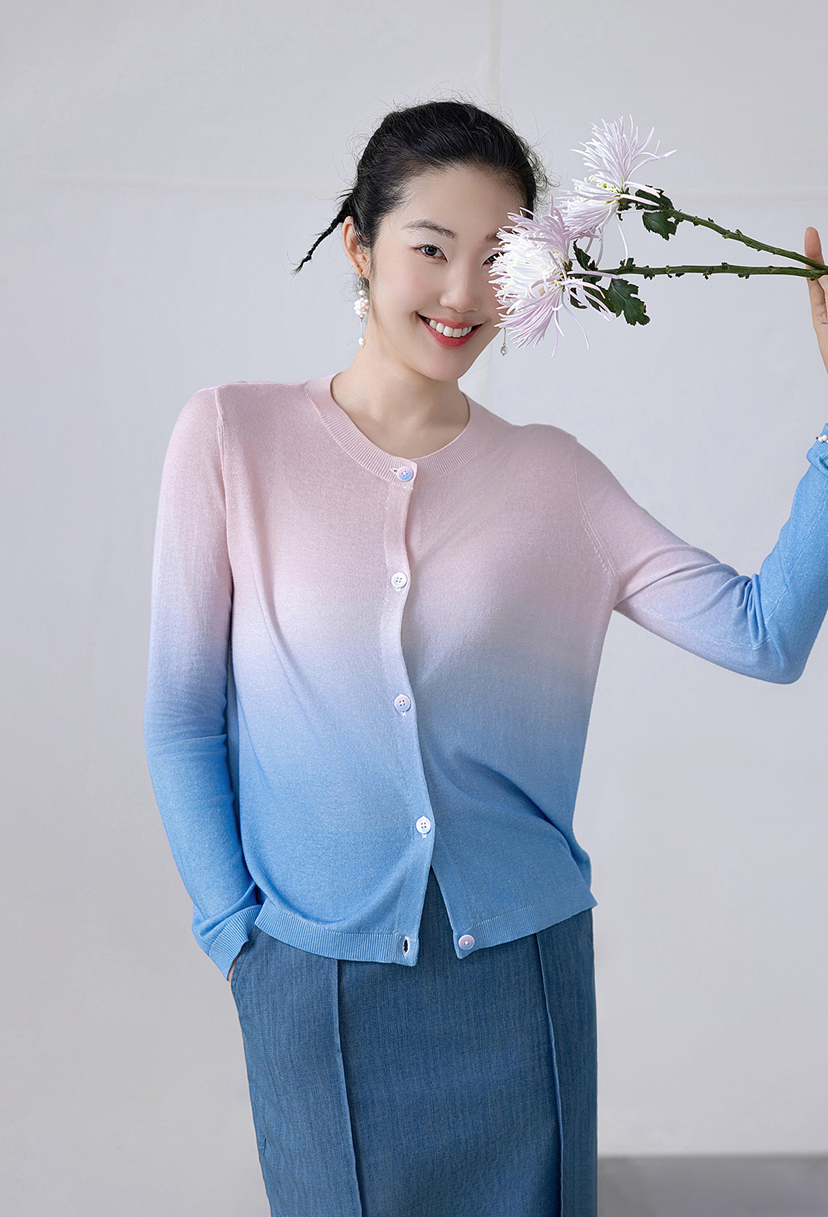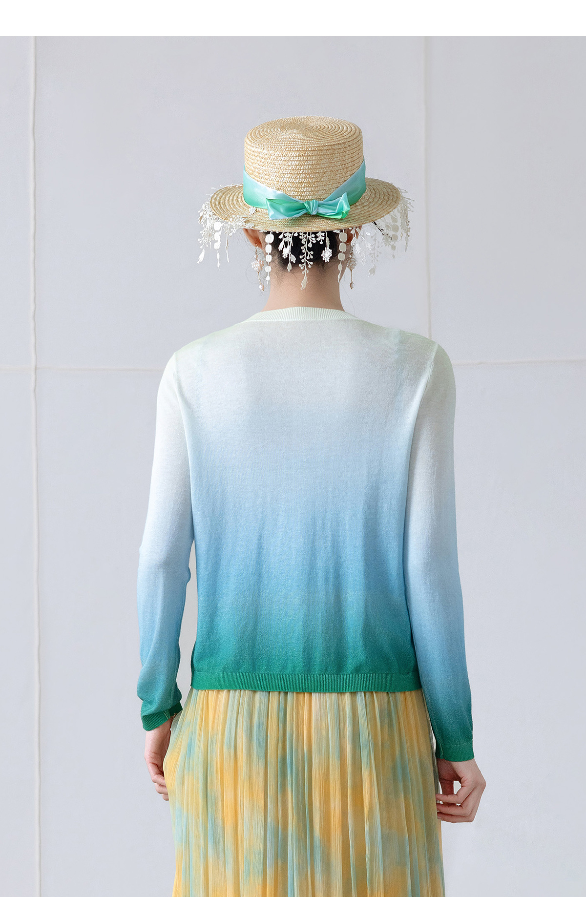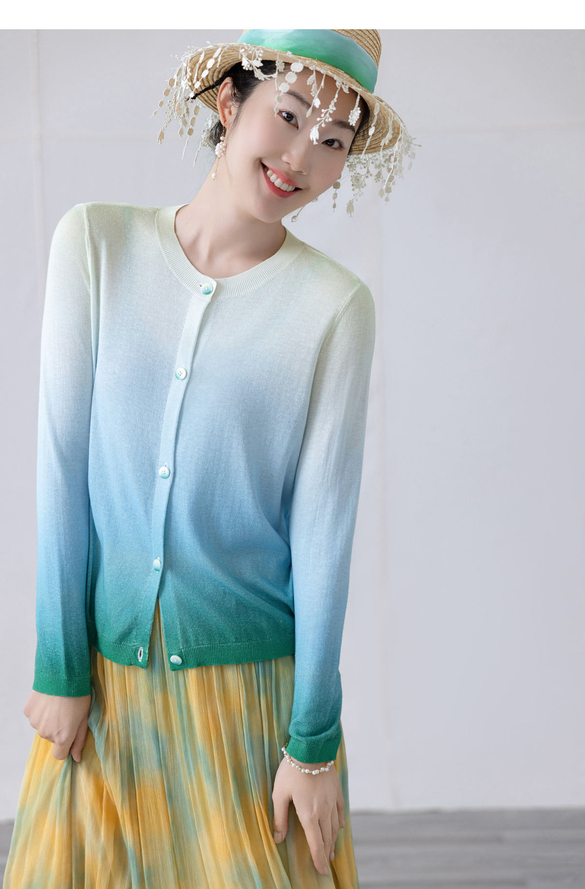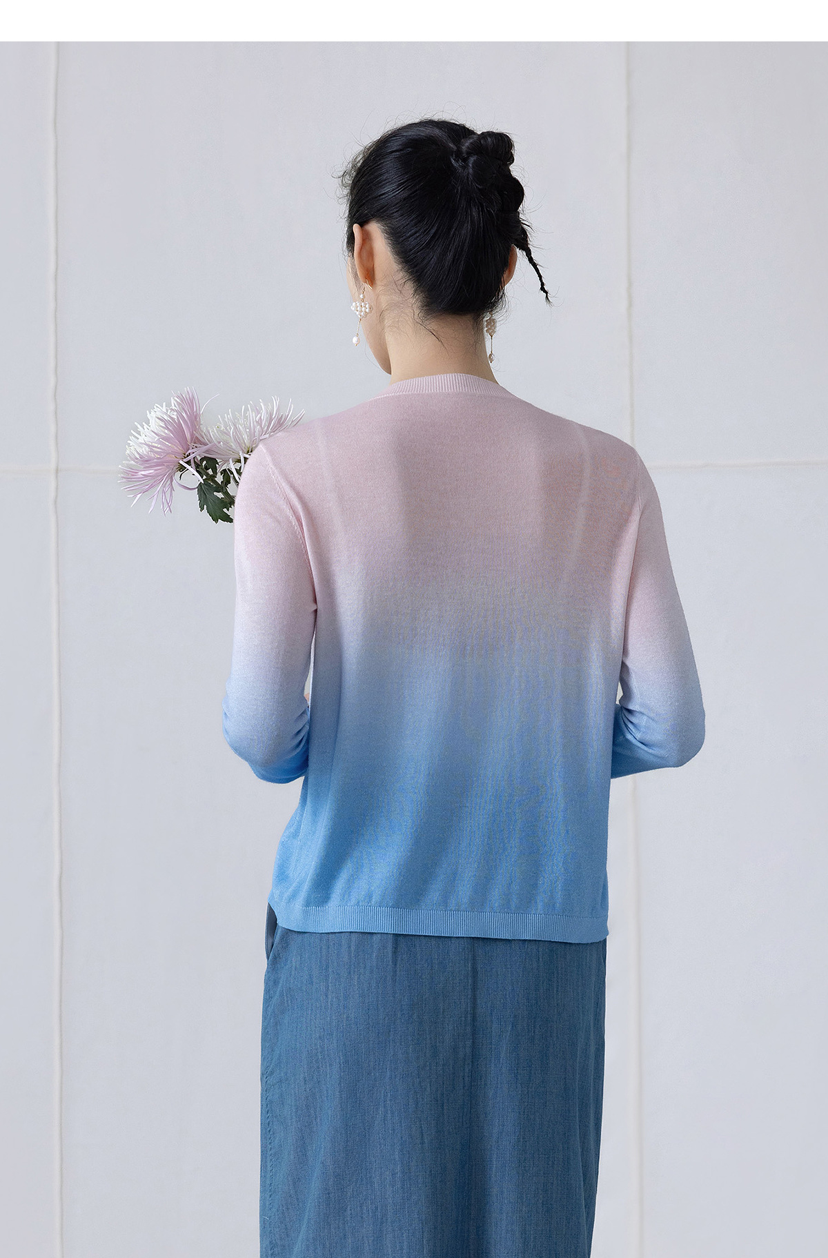 【林栖设计小店】粉色渐变油画毛织开衫收腰纽扣防晒2025夏季新品上衣衬衣女1952131