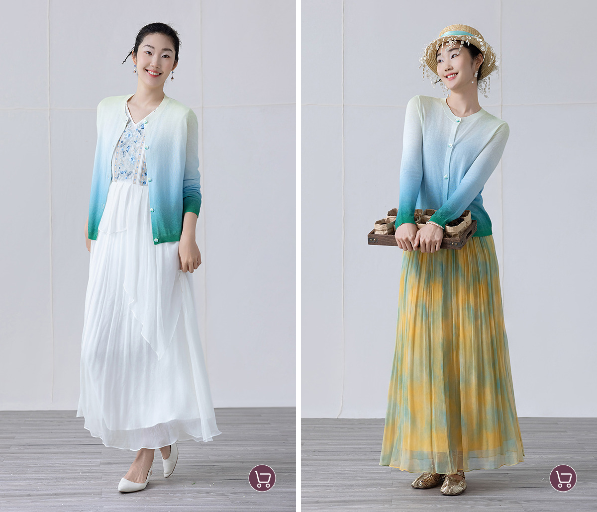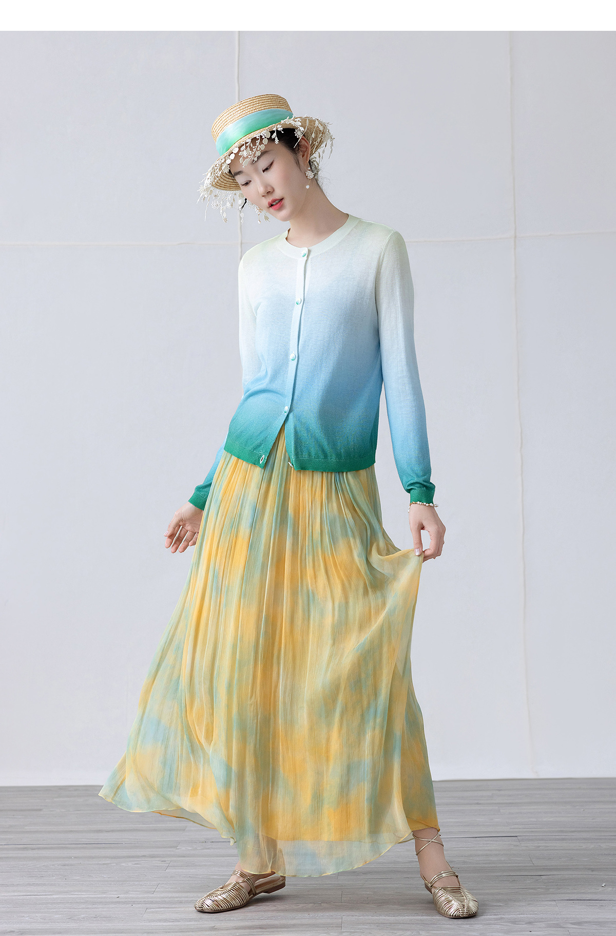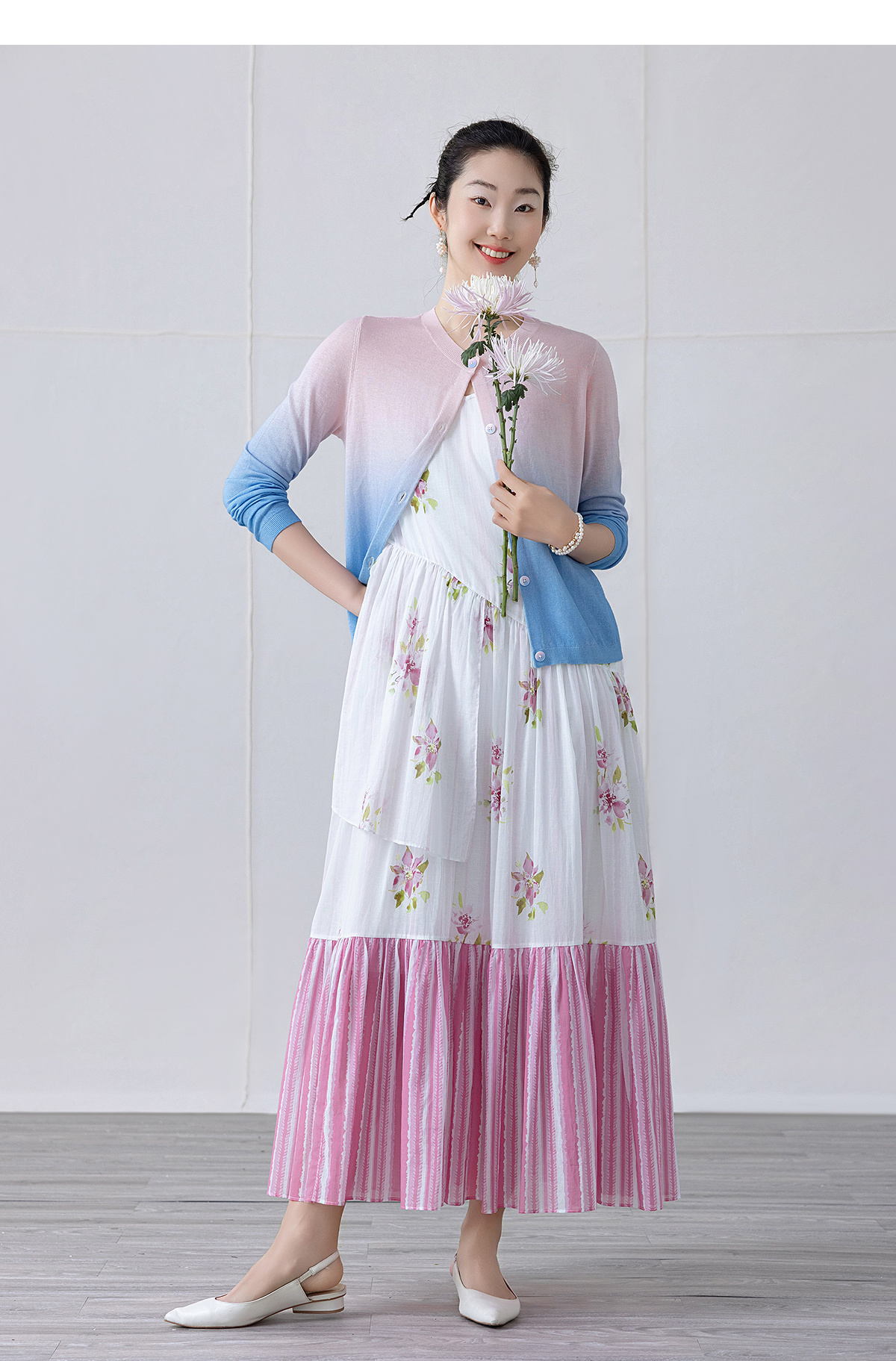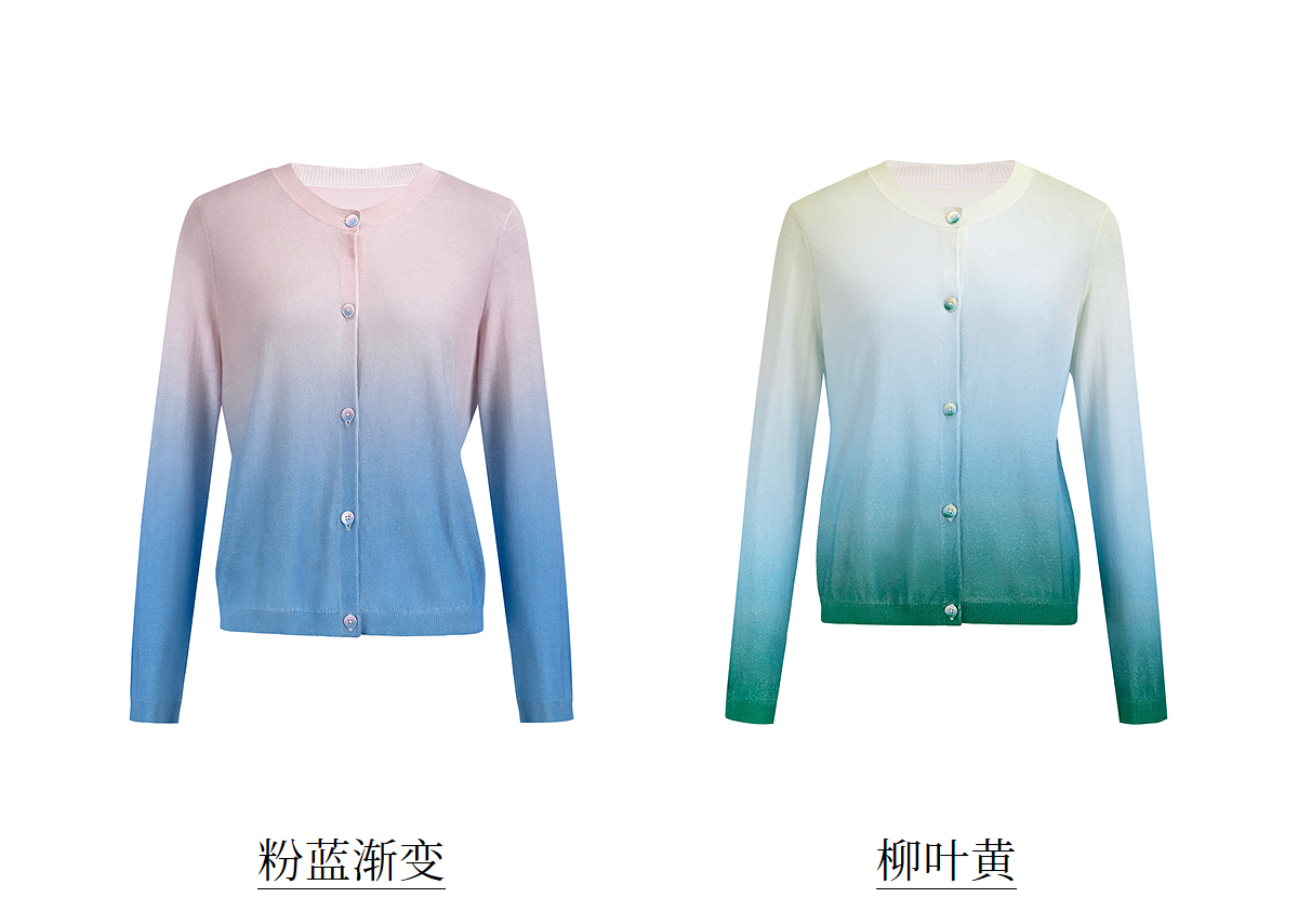 【林栖设计小店】粉色渐变油画毛织开衫收腰纽扣防晒2025夏季新品上衣衬衣女1952131