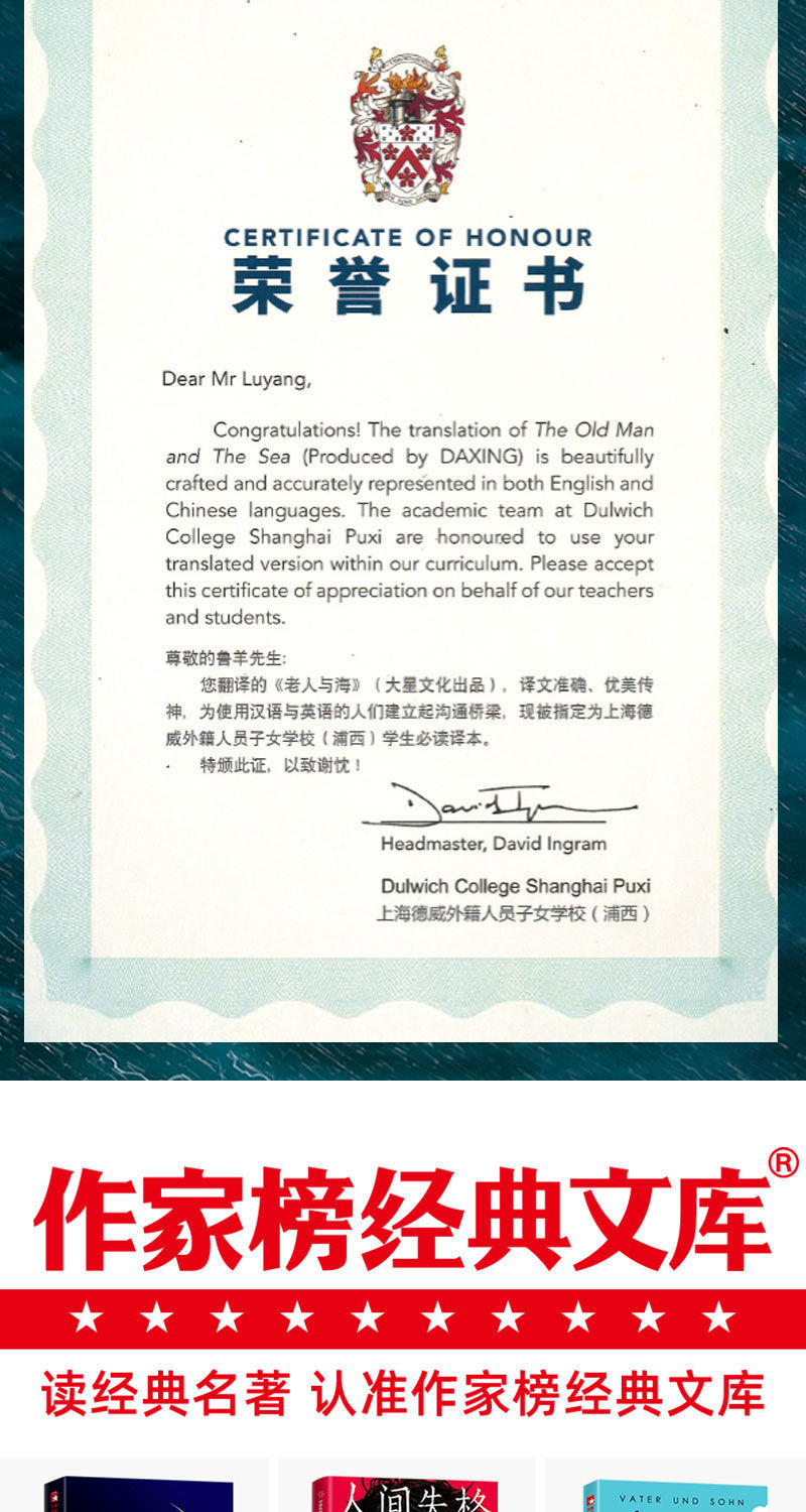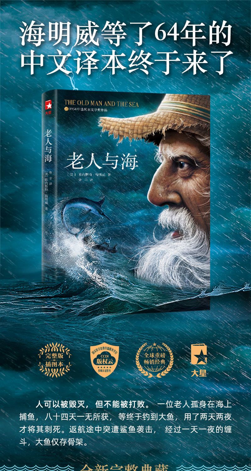 老人与海无删减全版海明威中文版原著青少年课外阅读世界经典名著