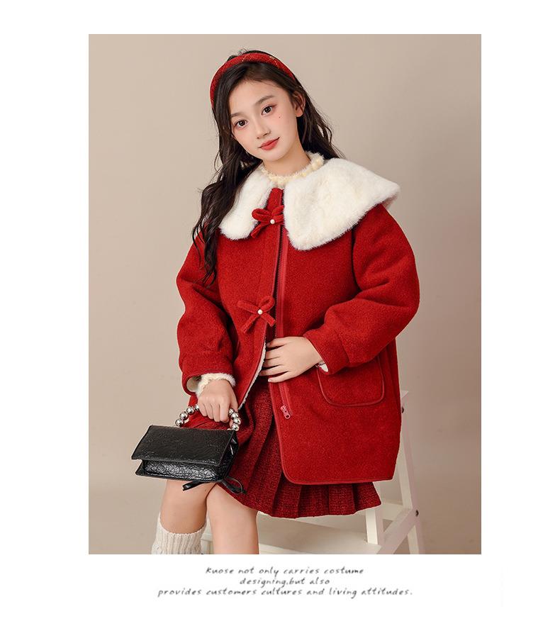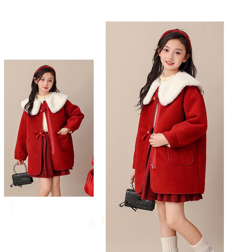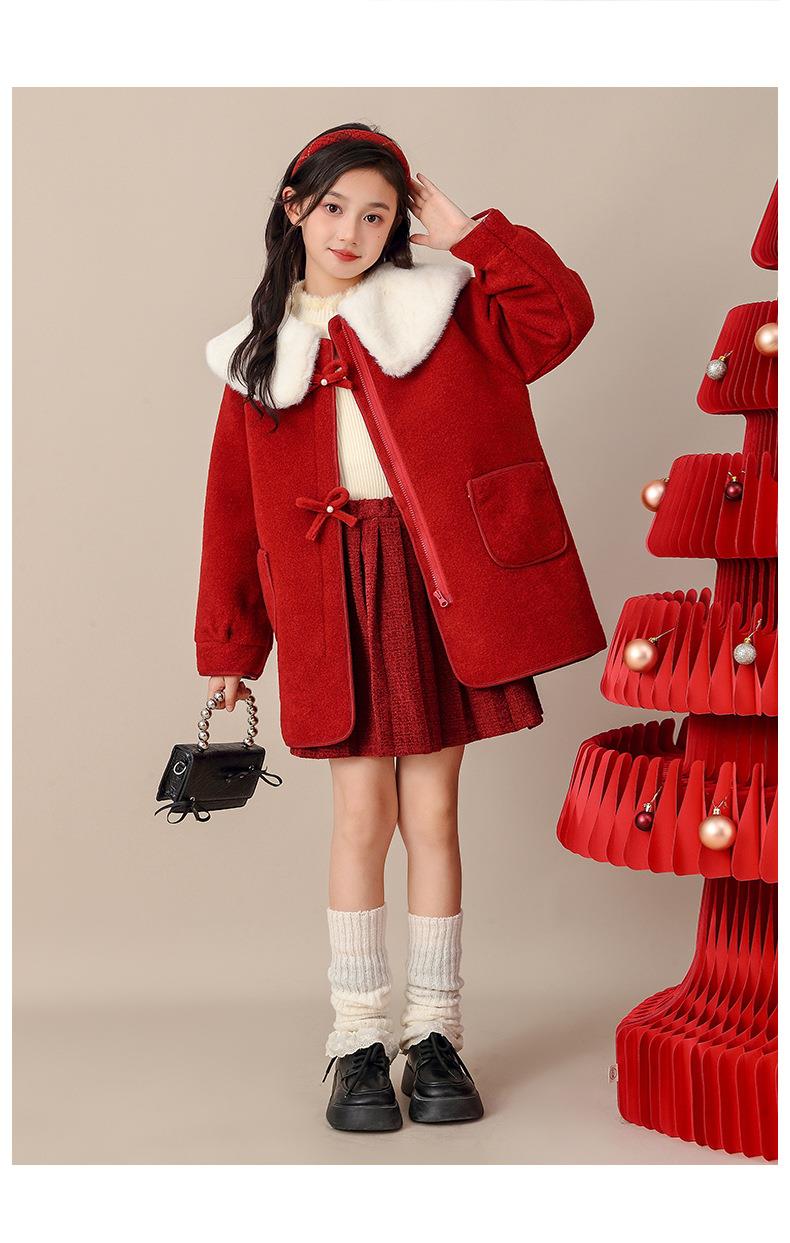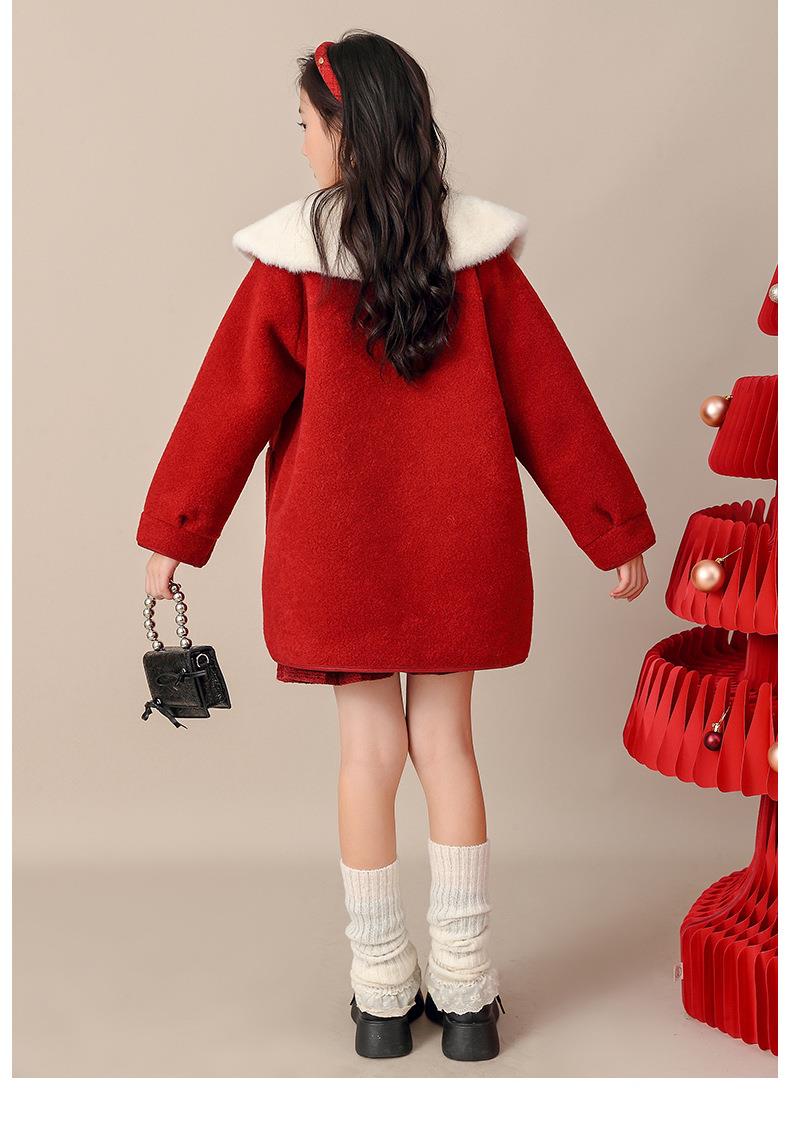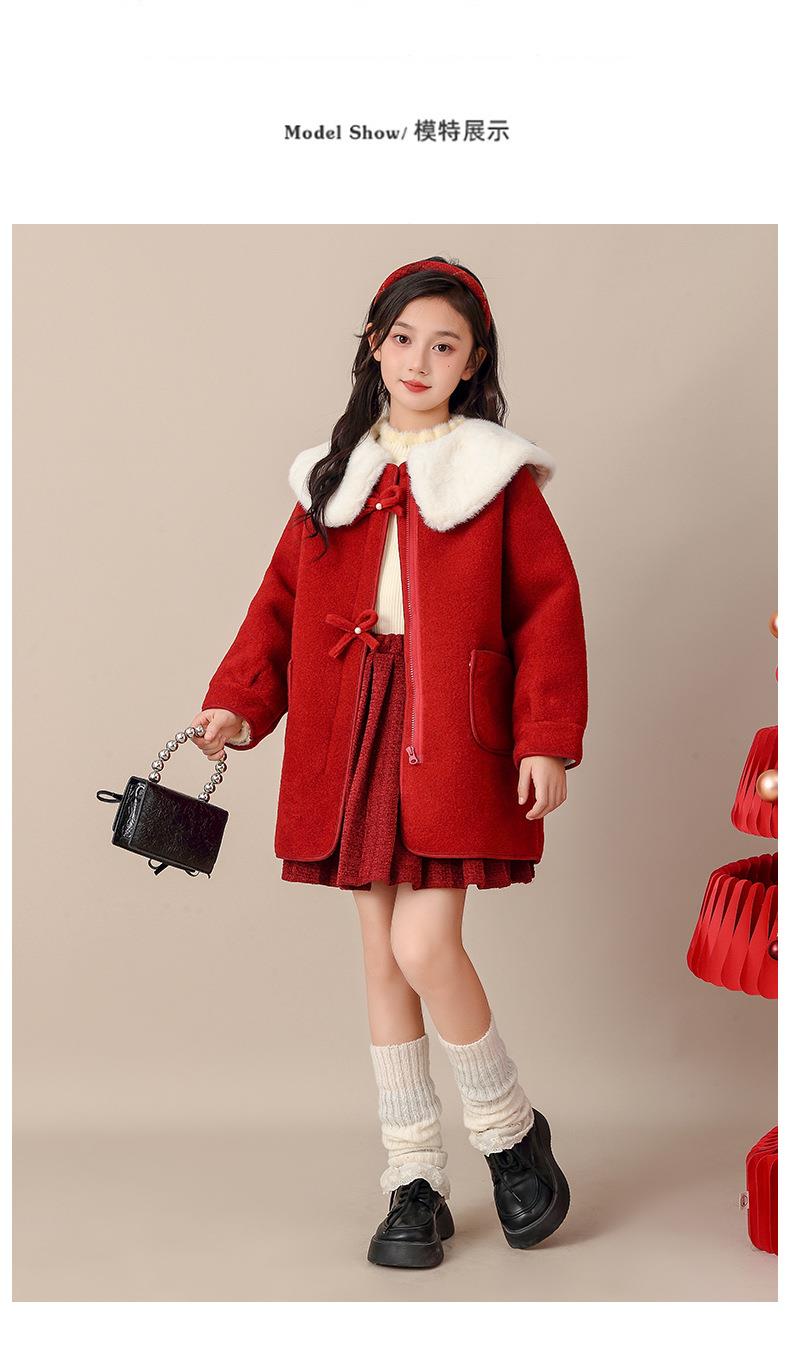 女孩外套新款女童冬装洋气加绒拜年服儿童呢子大衣新年红色中长款