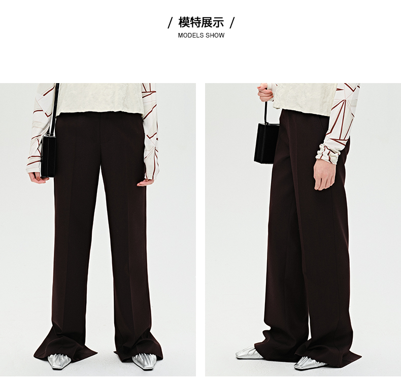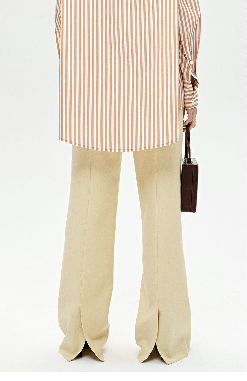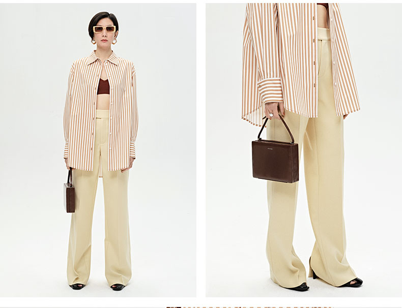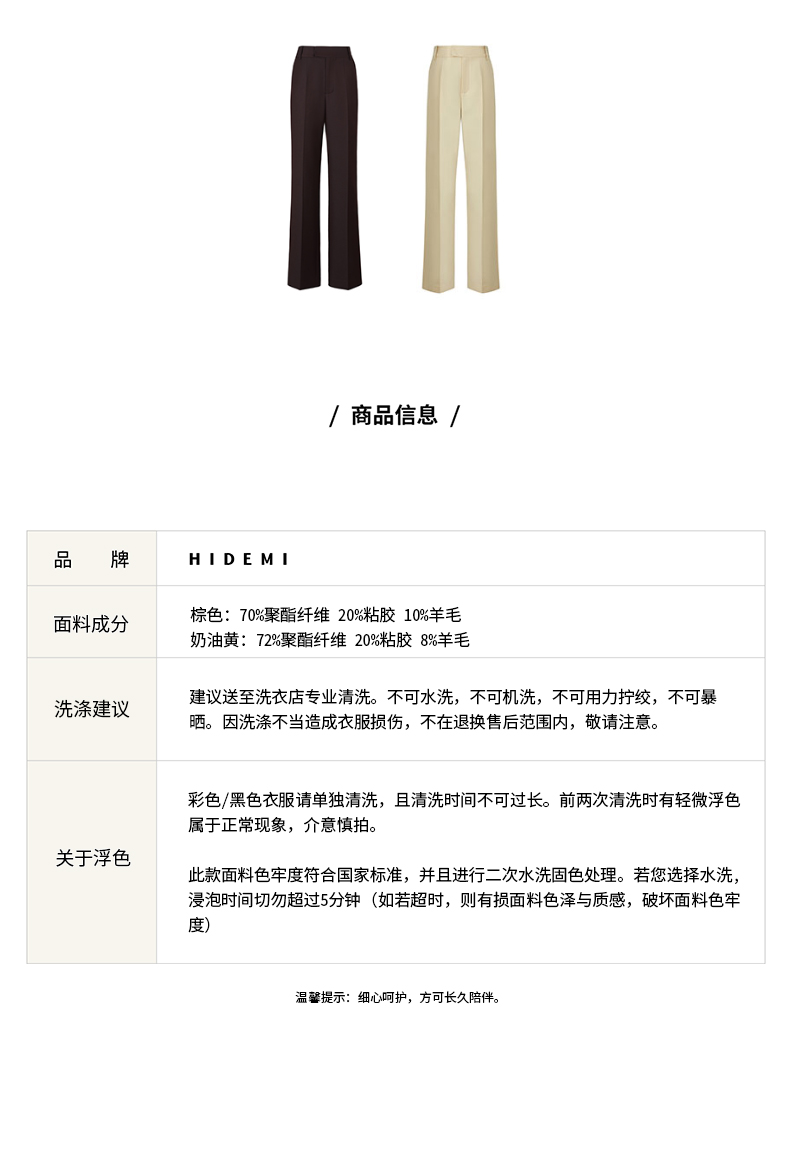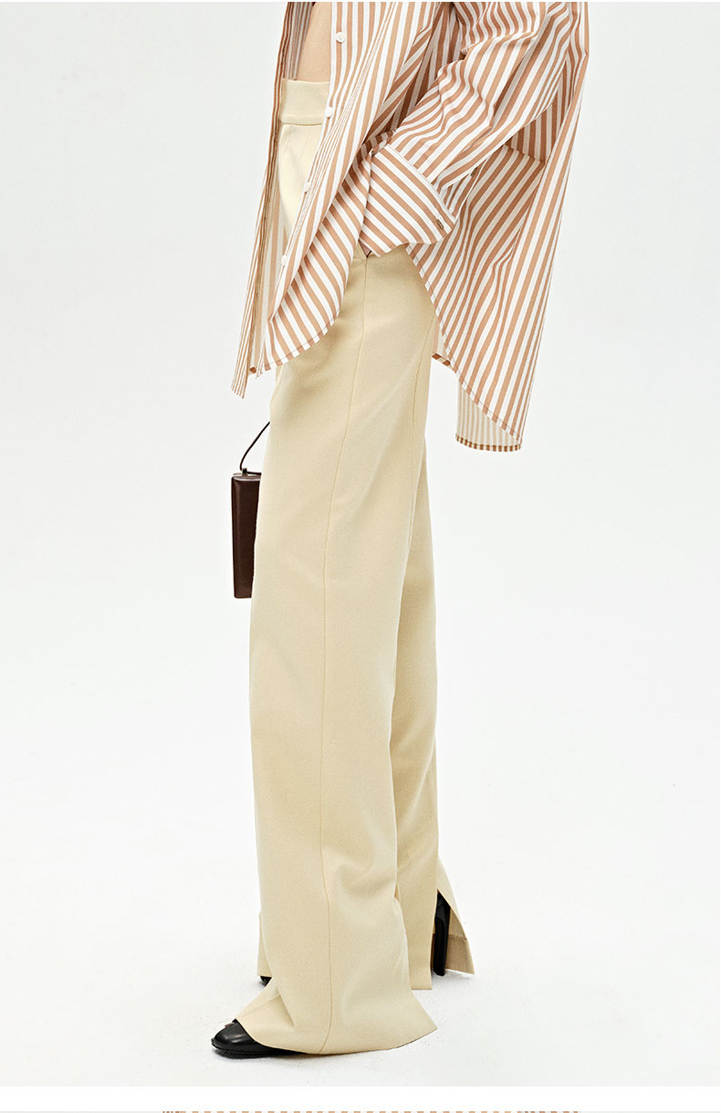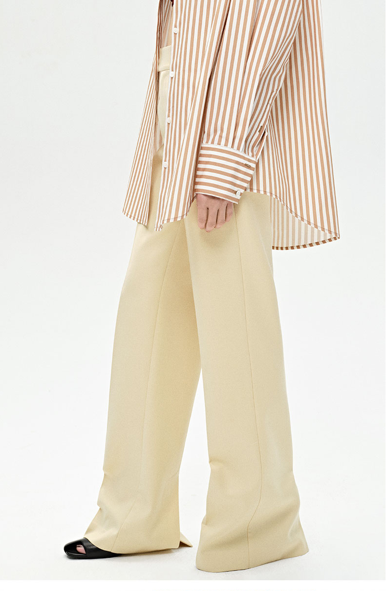 HIDEMI 显瘦高腰拉长感微阔腿宽松长裤 奶油黄/深棕