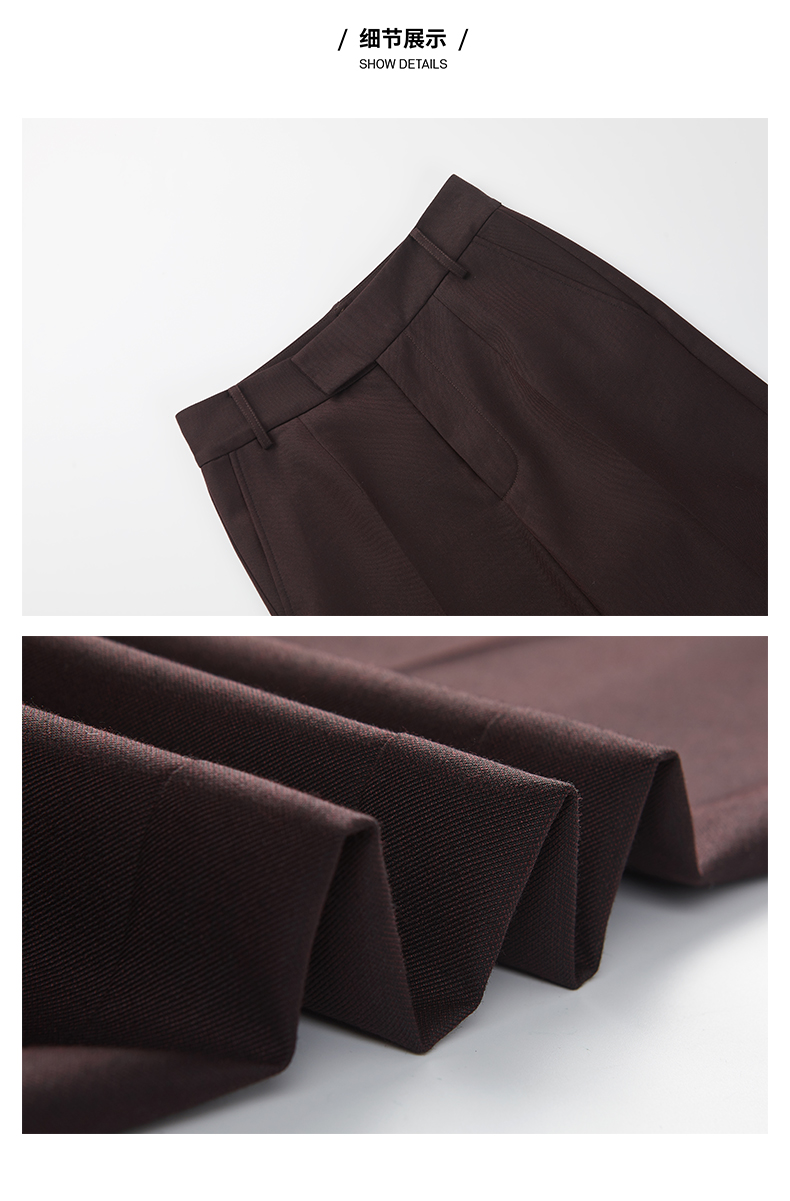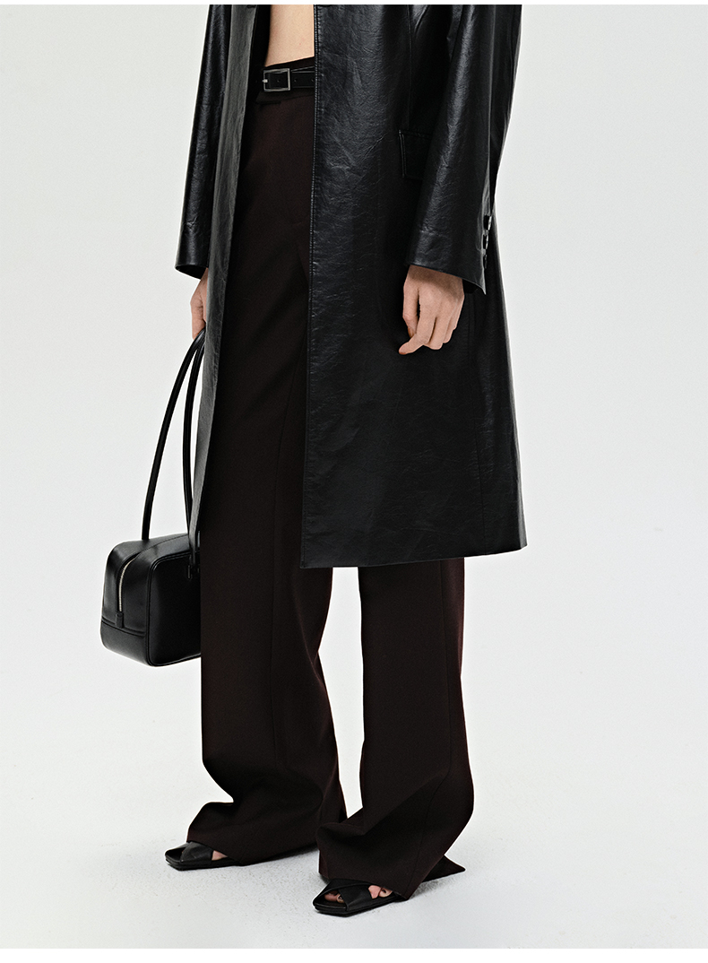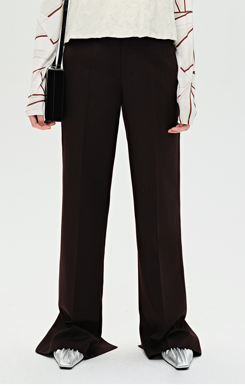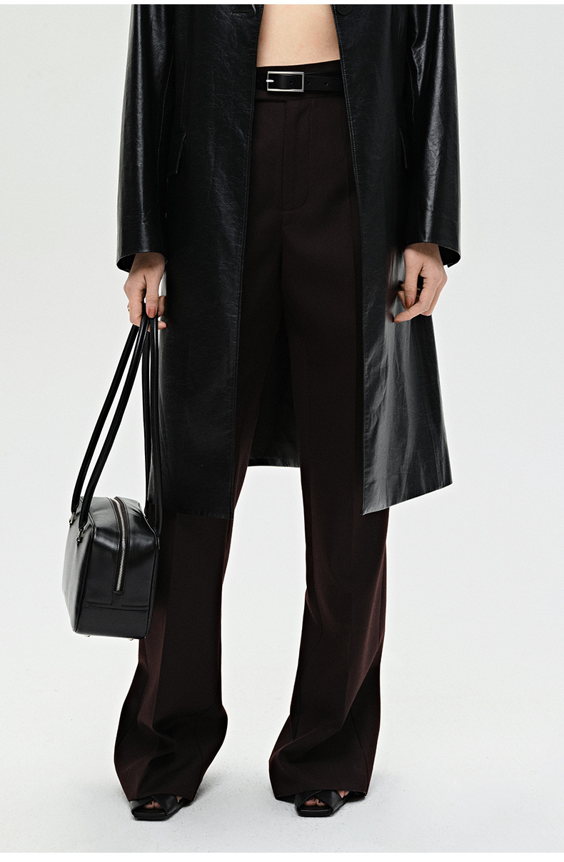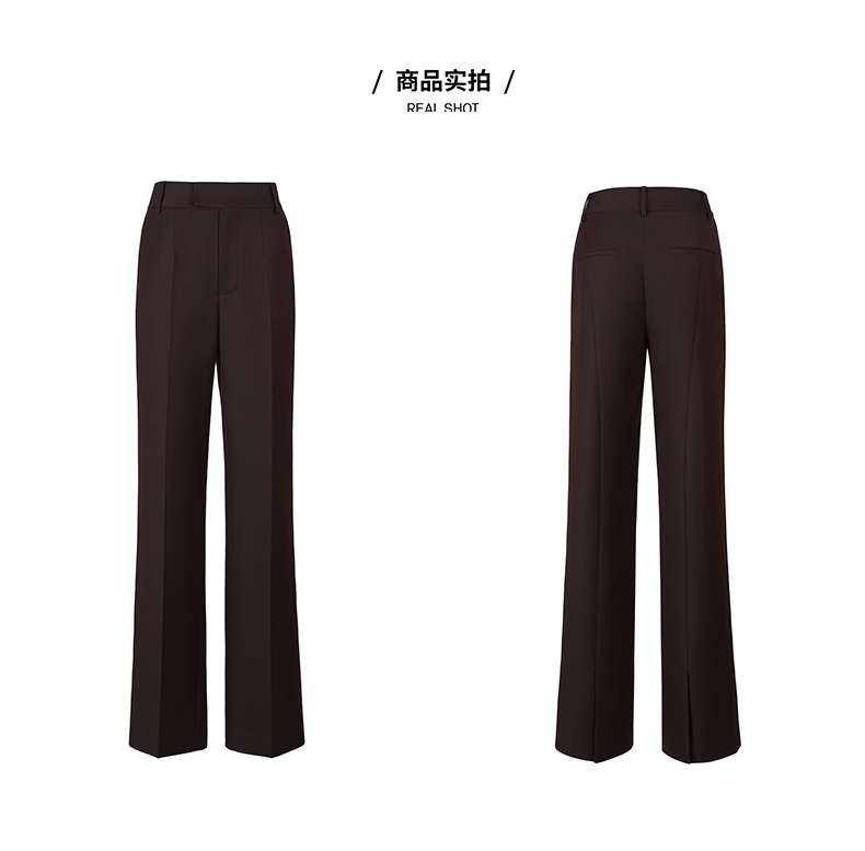 HIDEMI 显瘦高腰拉长感微阔腿宽松长裤 奶油黄/深棕