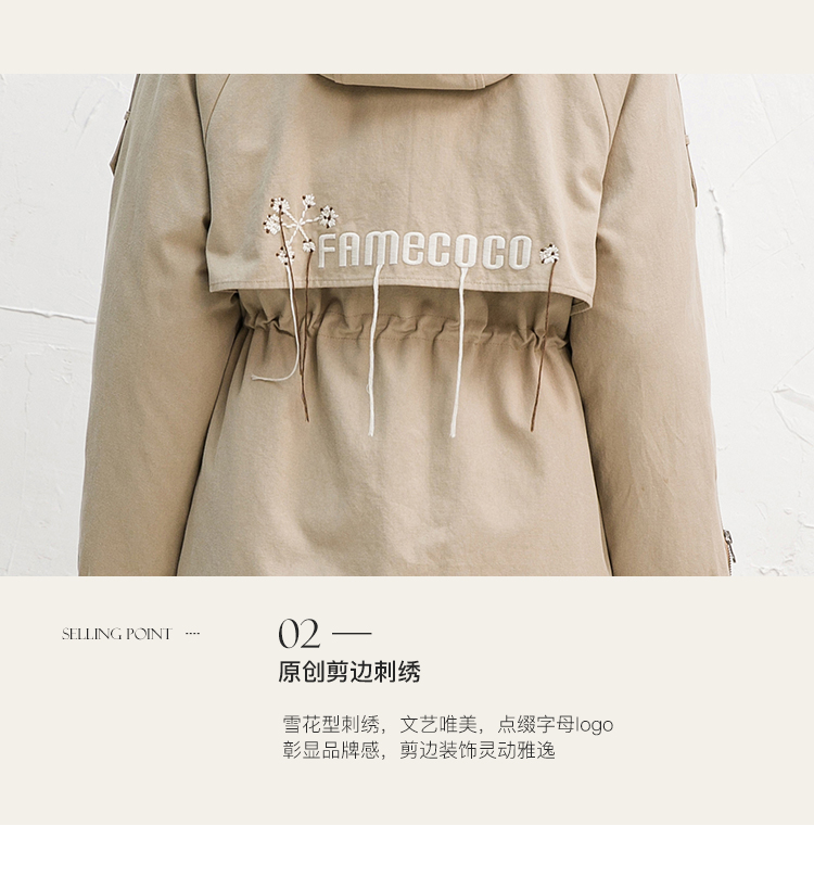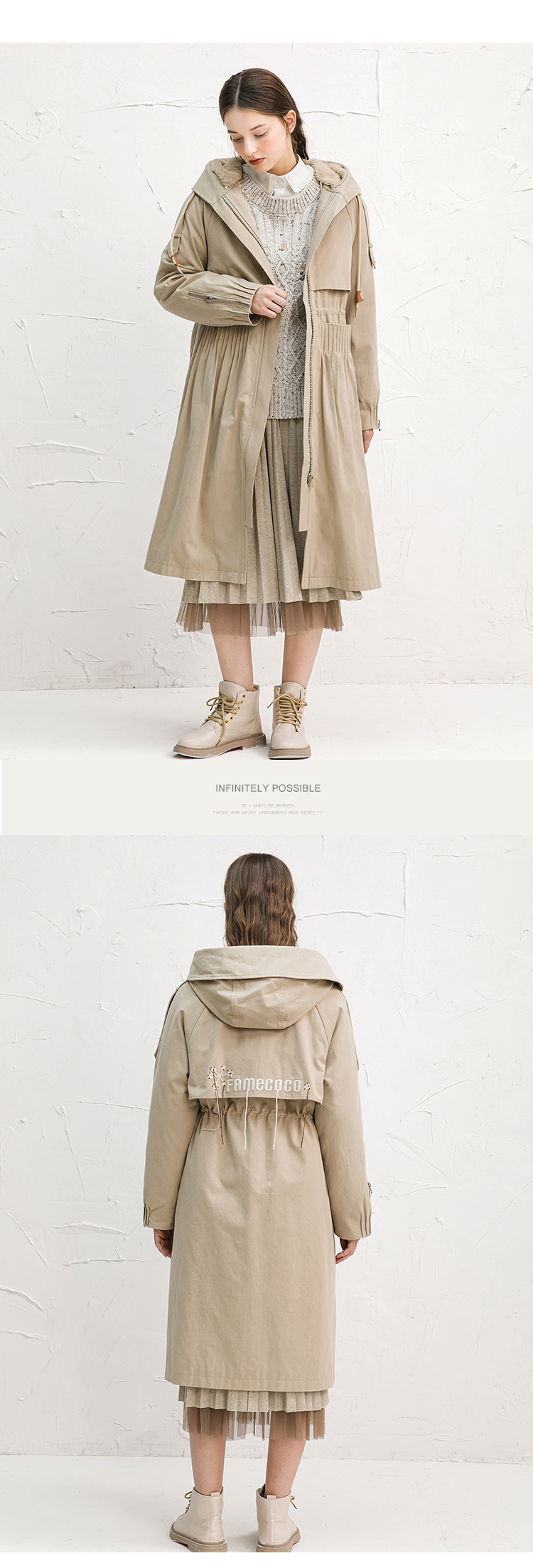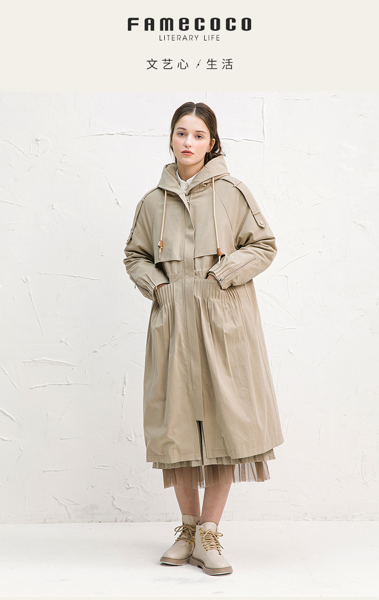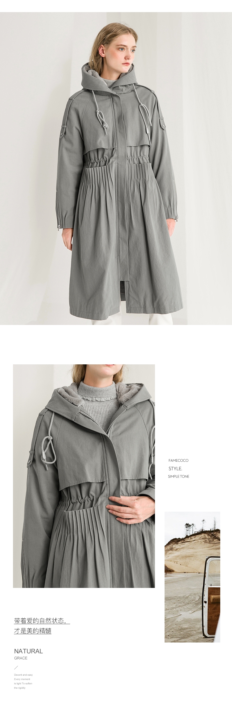 famecoco范可儿长款连帽羽绒服保暖派克服外套F218AH009