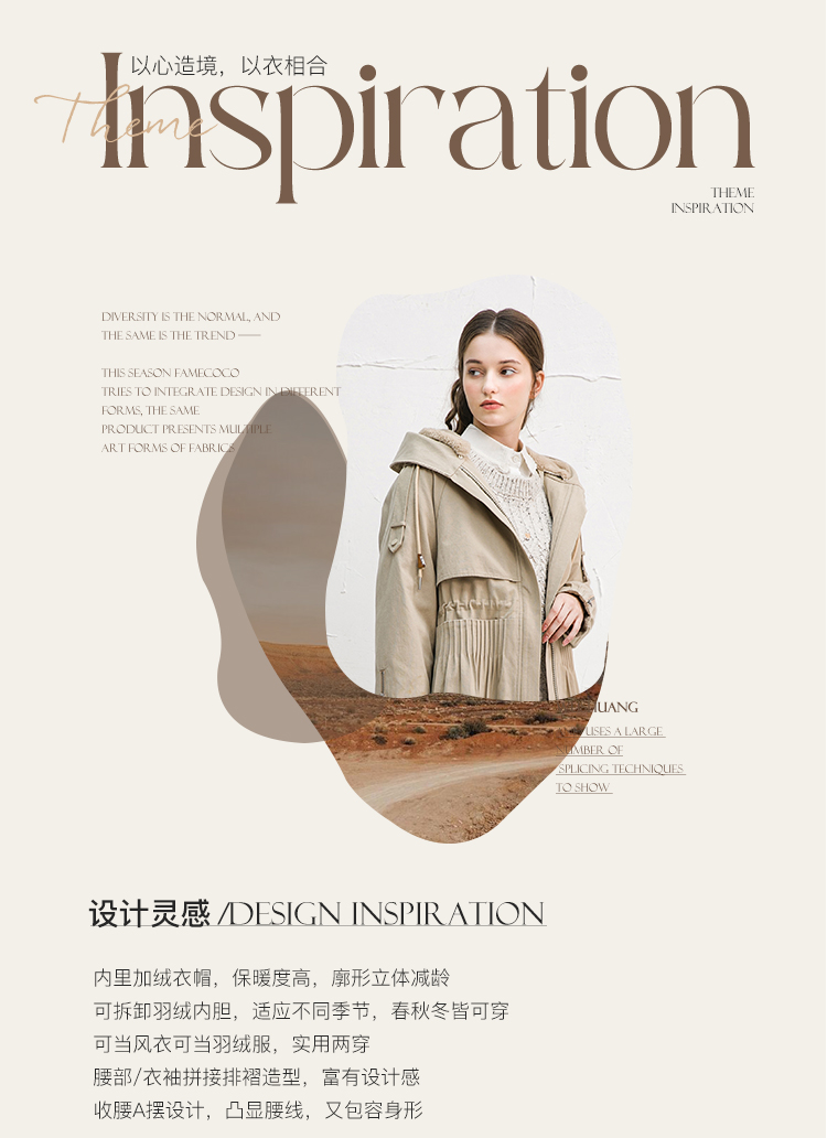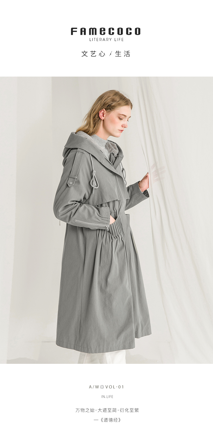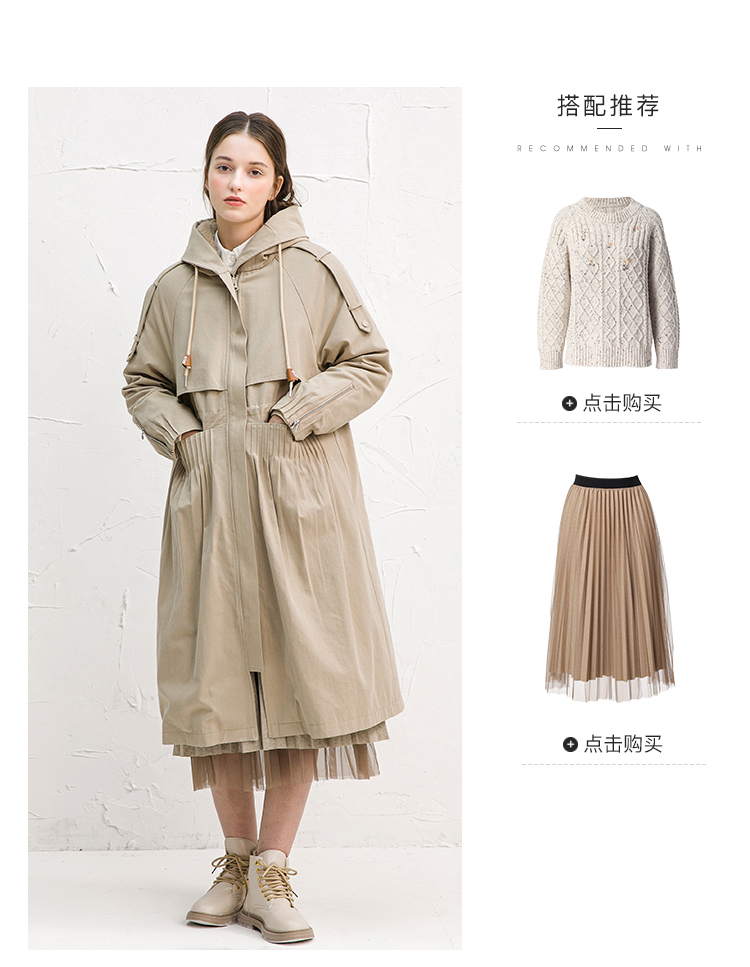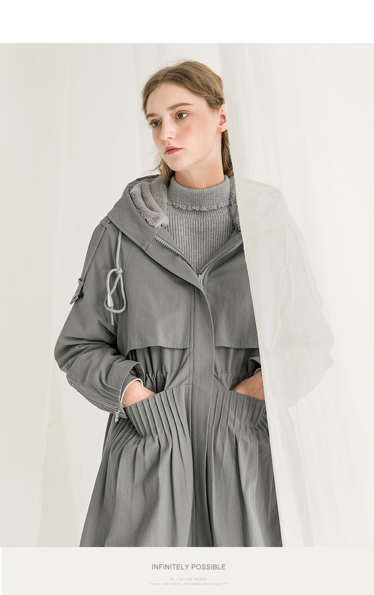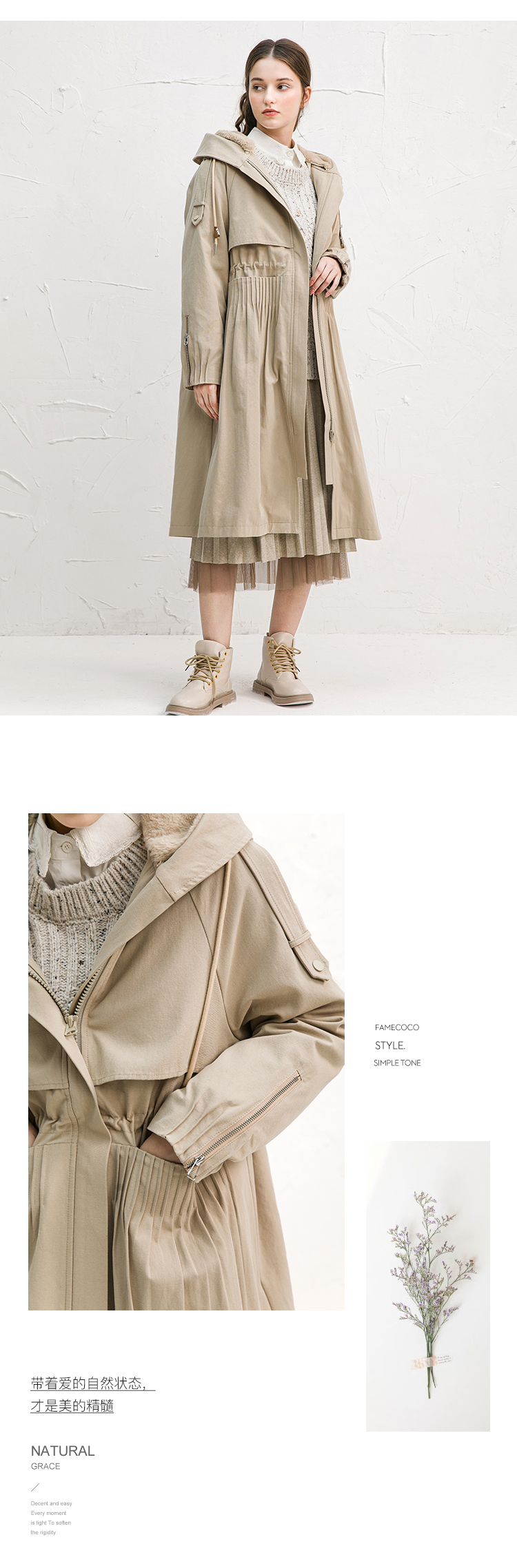famecoco范可儿长款连帽羽绒服保暖派克服外套F218AH009