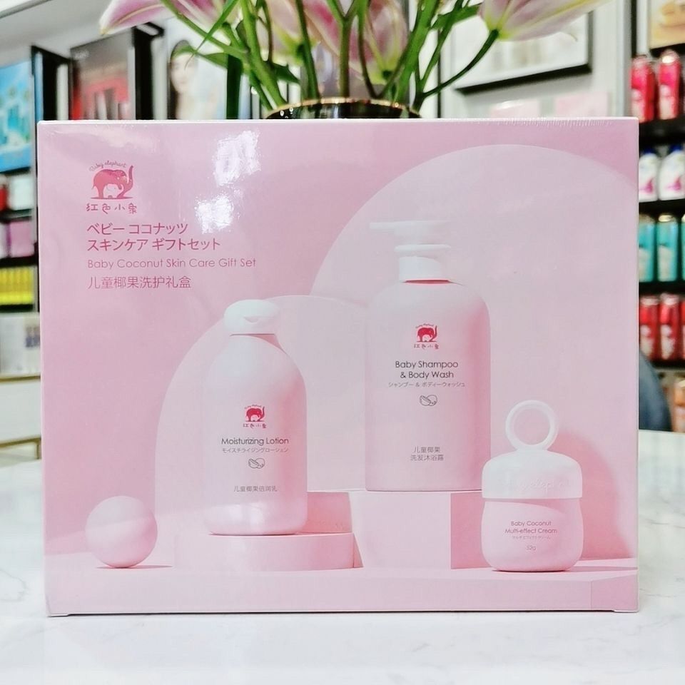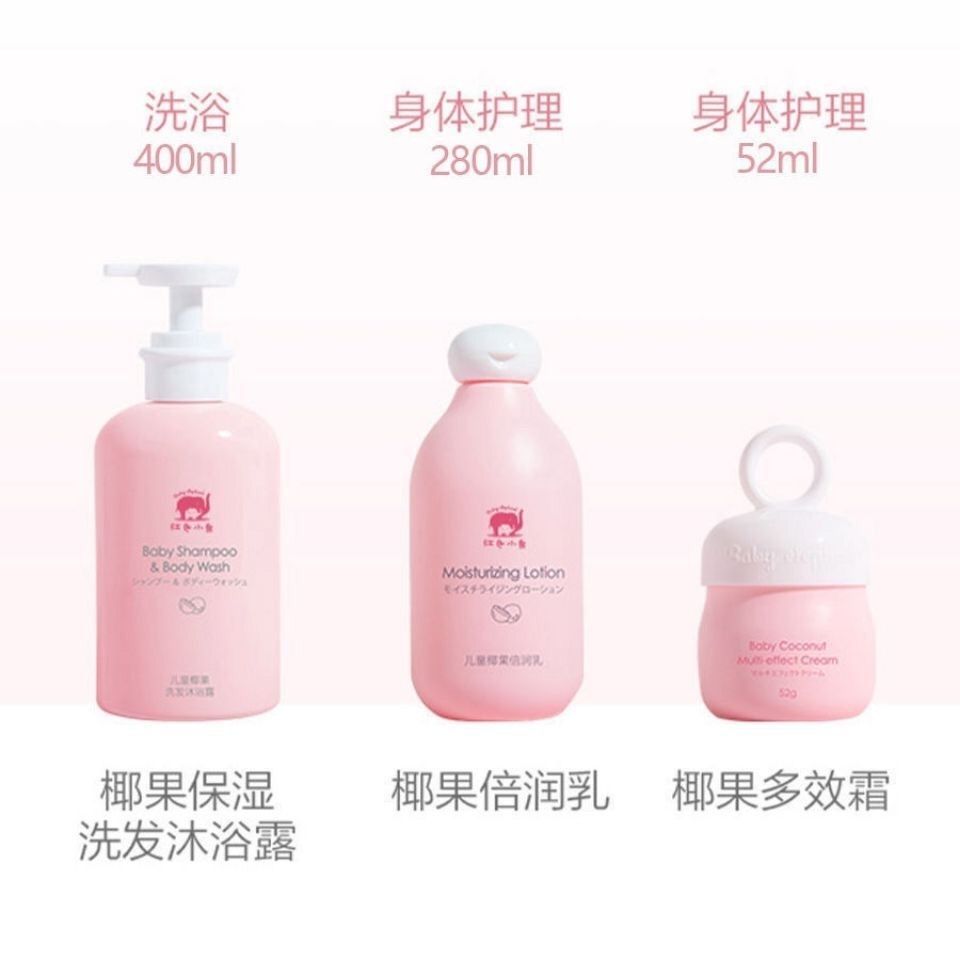 【预售 急单慎拍】红色小象儿童套装椰果多效霜洗发沐浴露乳液三件套组合保湿防皴冬