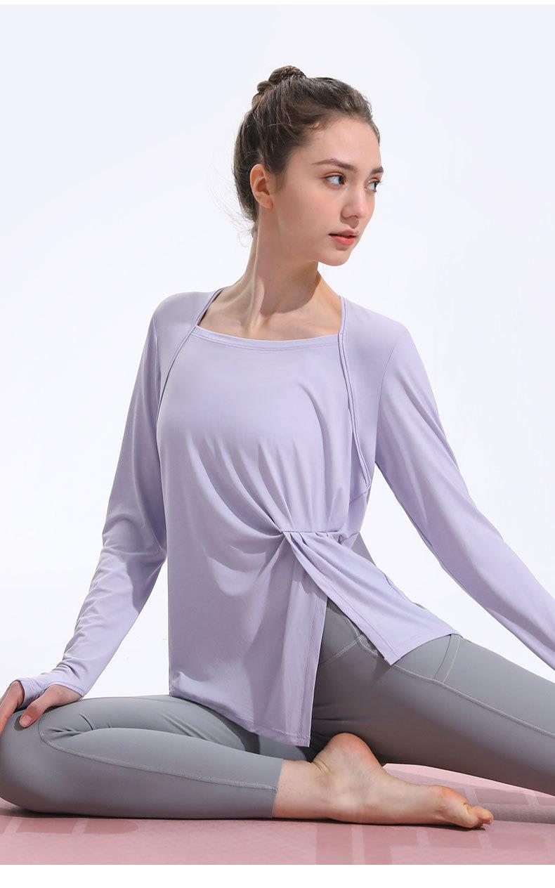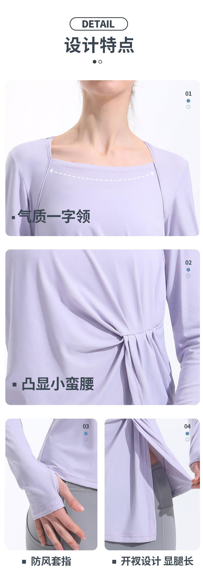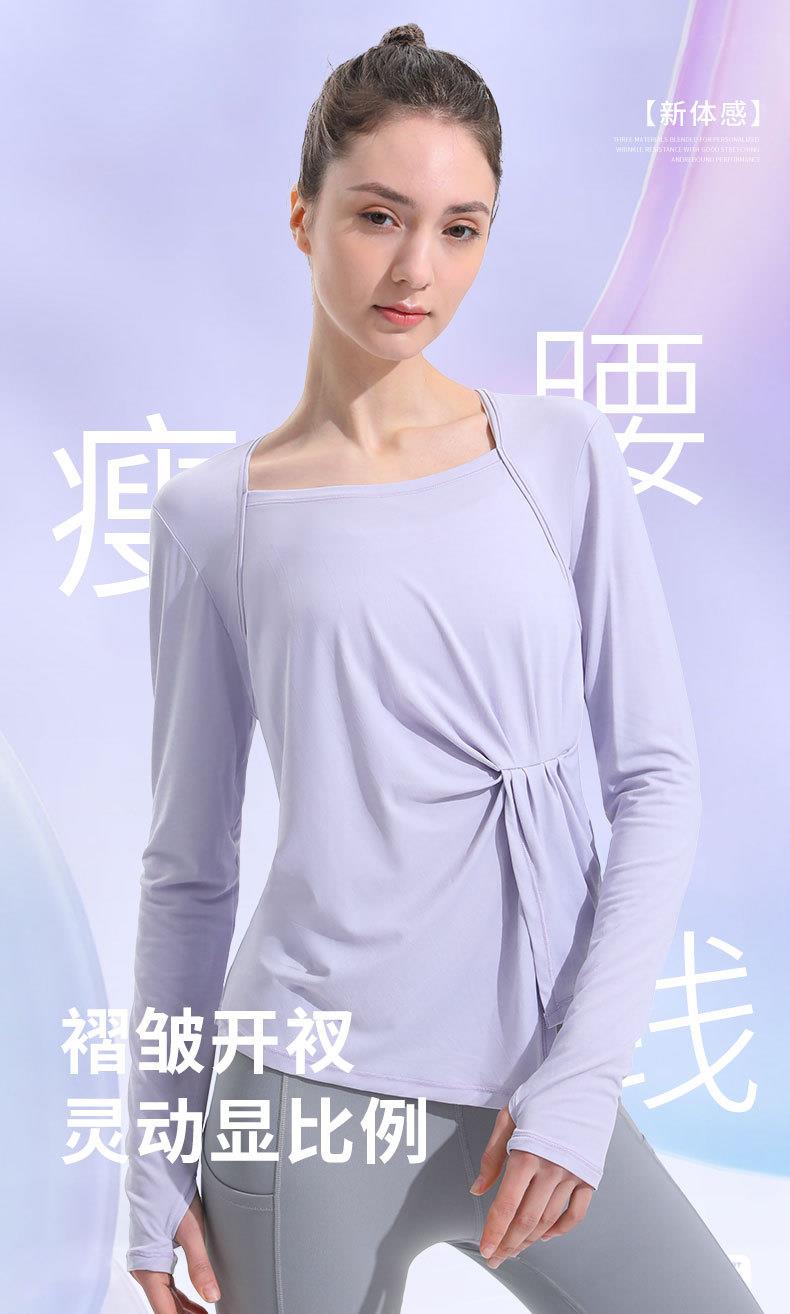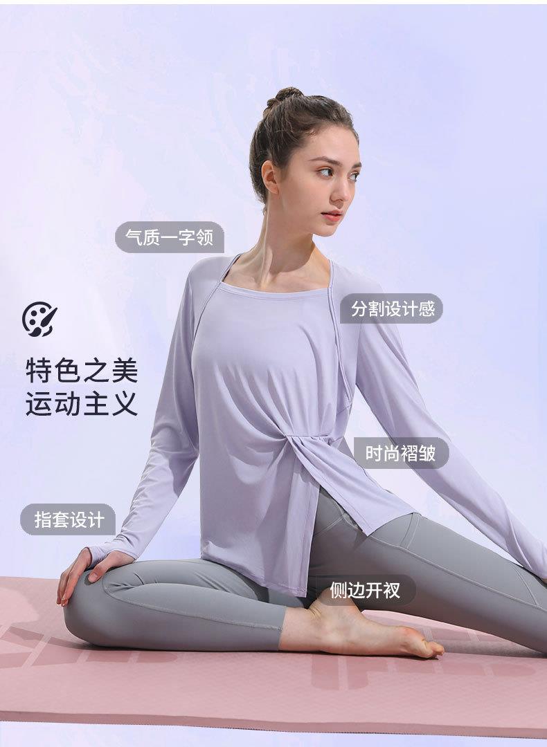 新款开叉运动上衣女透气瑜伽服罩衫柔软亲肤健身T恤吸湿速干长袖