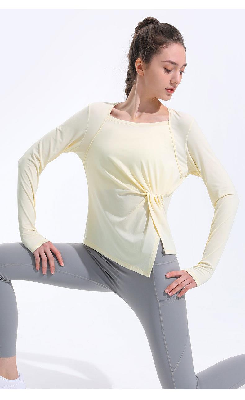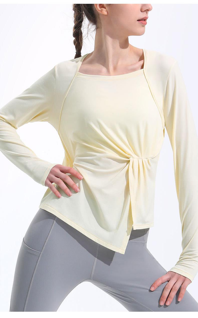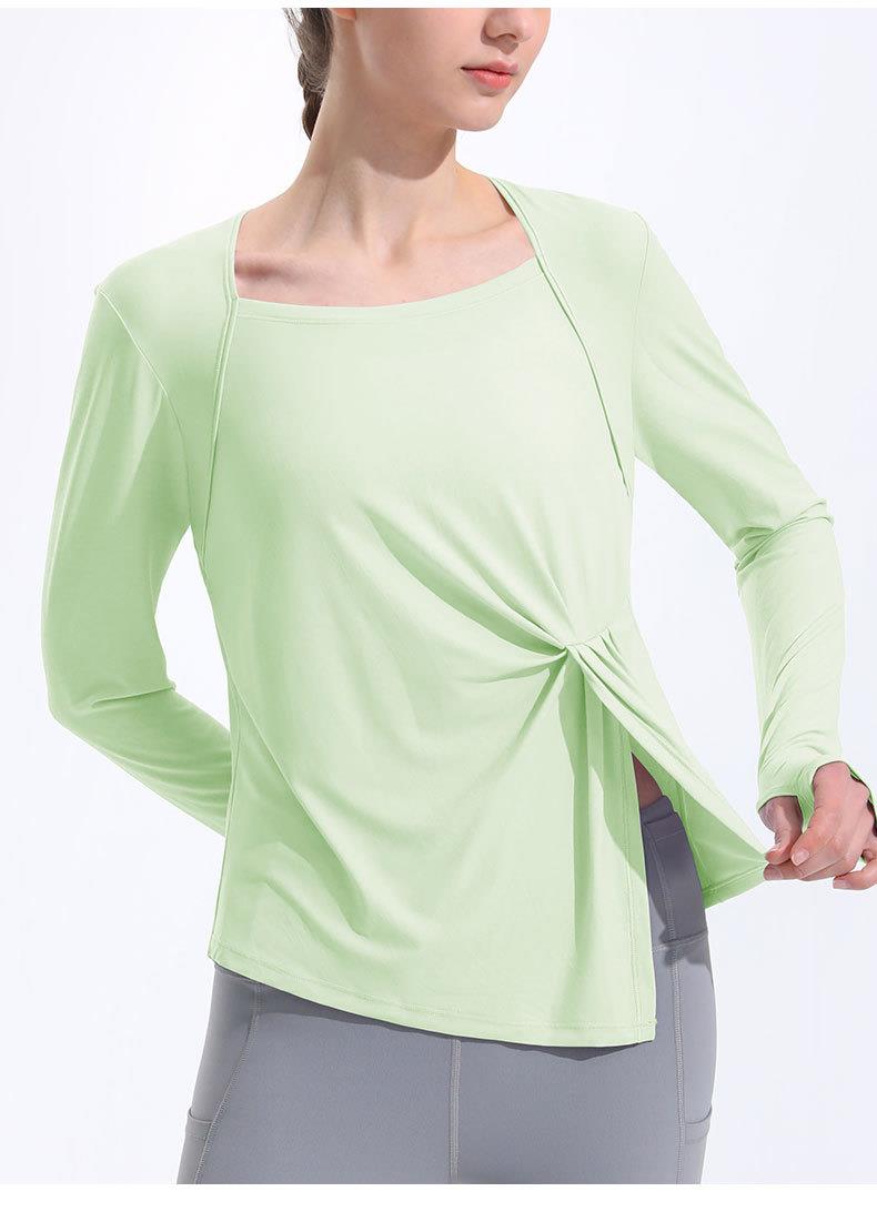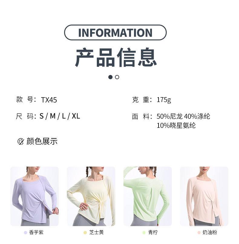 新款开叉运动上衣女透气瑜伽服罩衫柔软亲肤健身T恤吸湿速干长袖