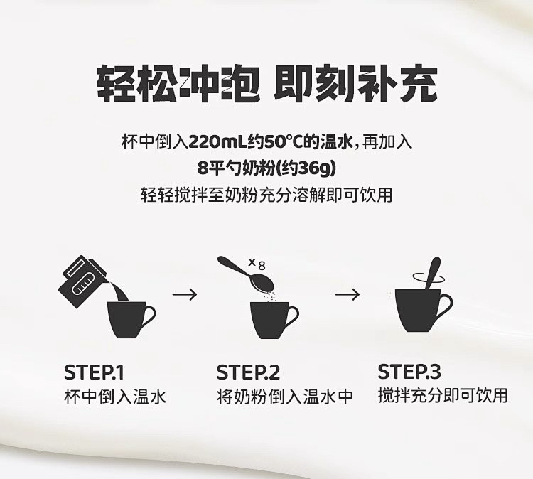 非独立包装,配有勺子,按照个人喜欢加奶粉冲泡水即可,一天1-2次