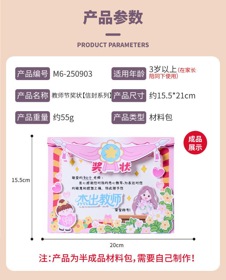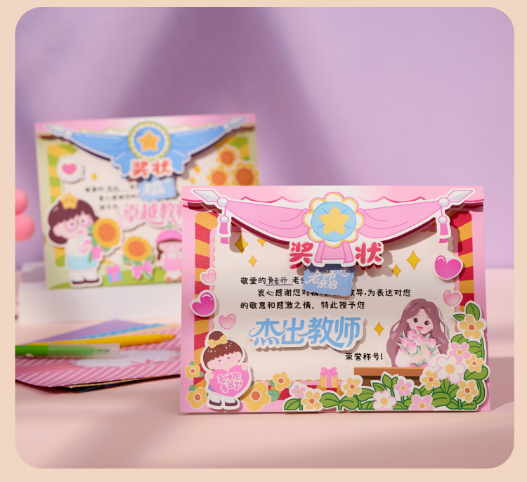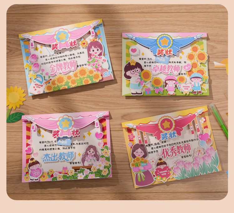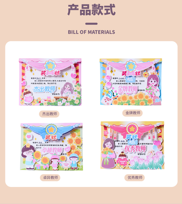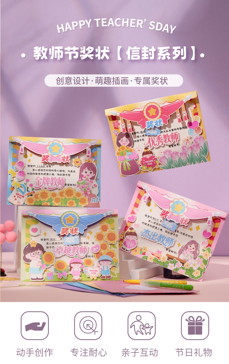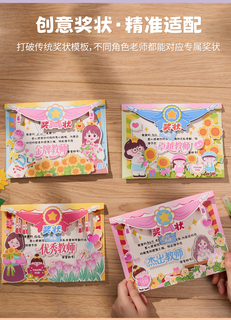 教师节礼物手工diy奖状贺卡儿童制作材料包幼儿园送老师2025新款