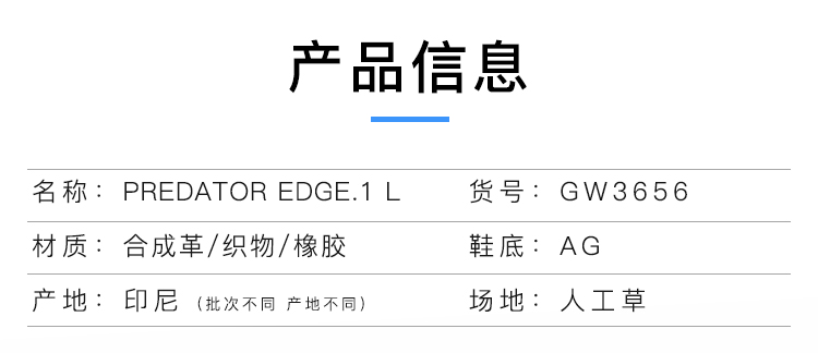 ADIDAS/阿迪达斯PREDATOR EDGE.1 L AG短钉高端足球鞋男GW3656