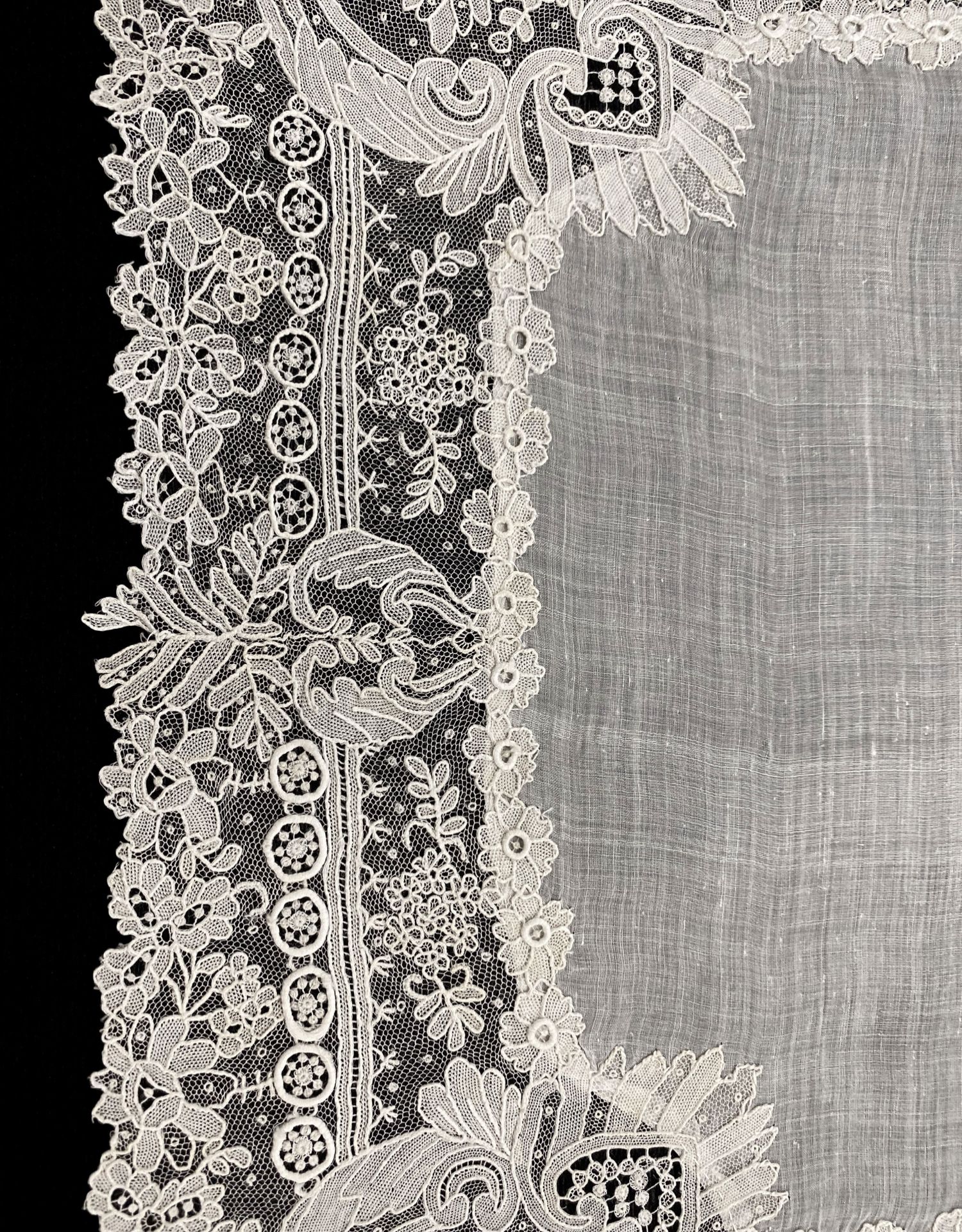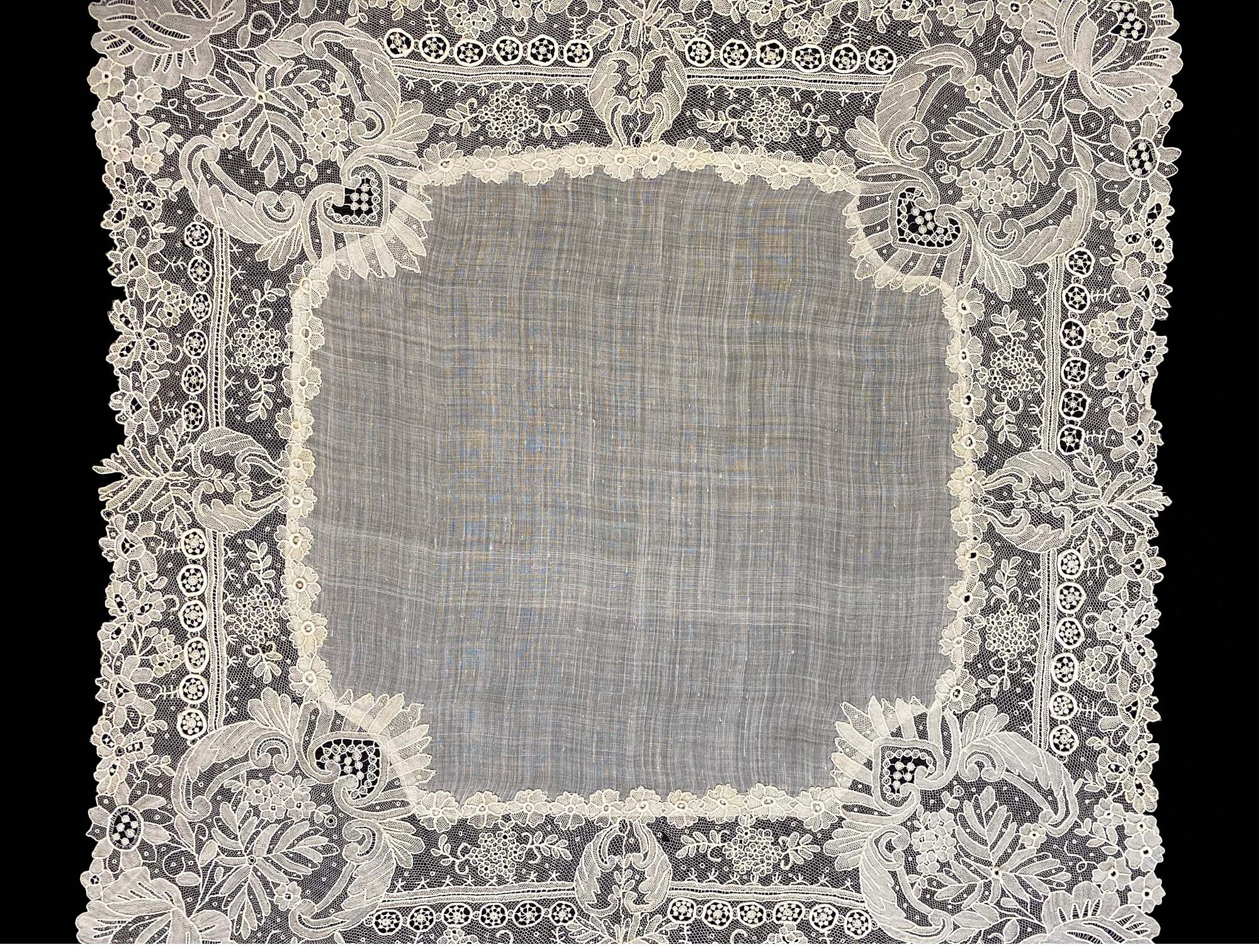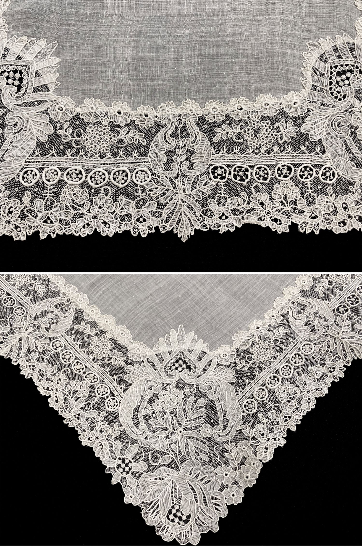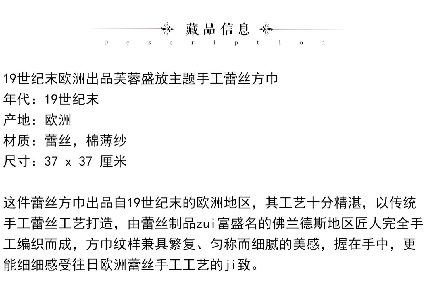 独角鹿西洋古董19世纪末欧洲出品芙蓉盛放主题手工蕾丝方巾手帕