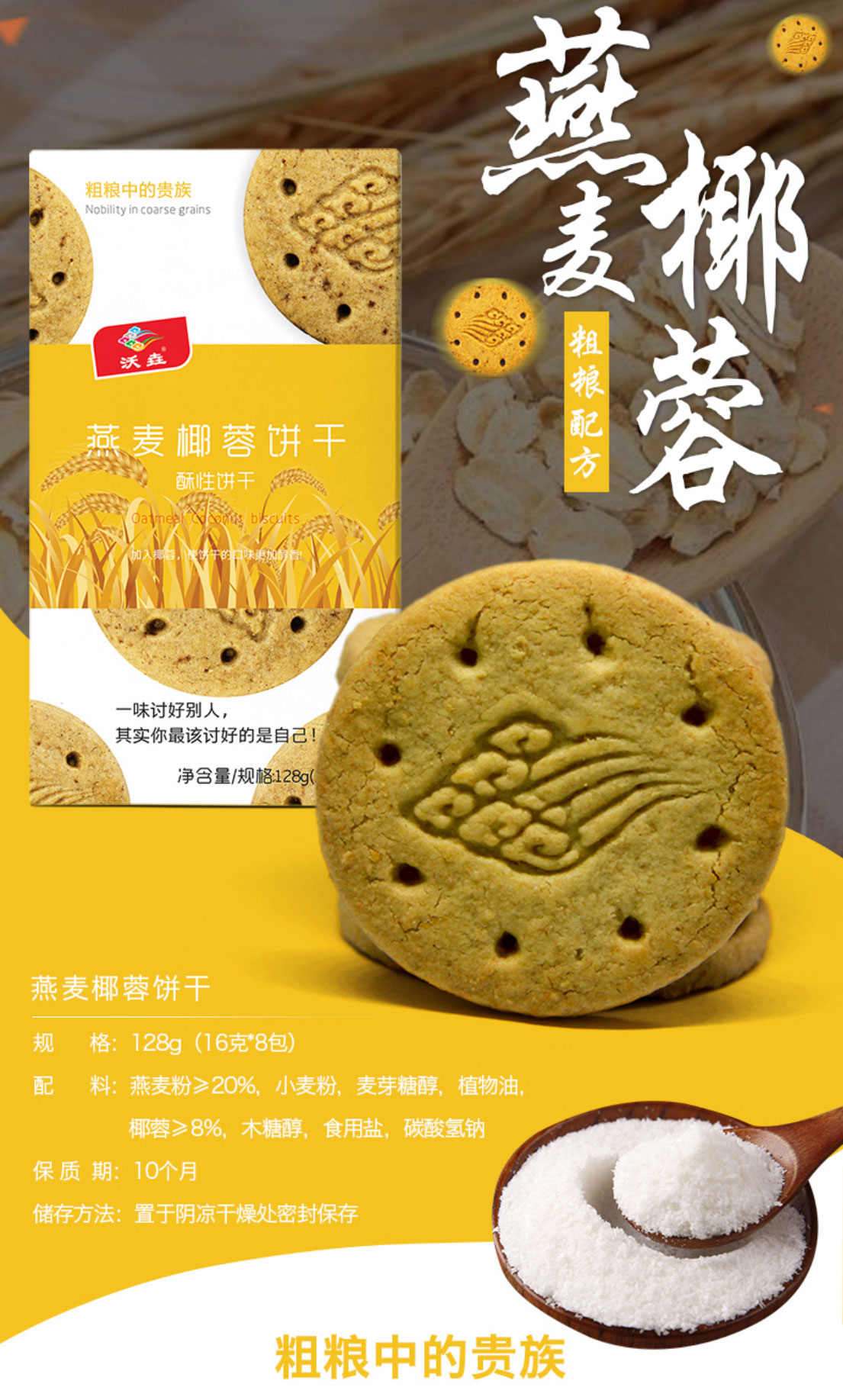 沃垚燕麦椰蓉饼干|青海特产 | 青稞椰蓉饼干128g粗粮代餐饱腹早餐单独包装零食