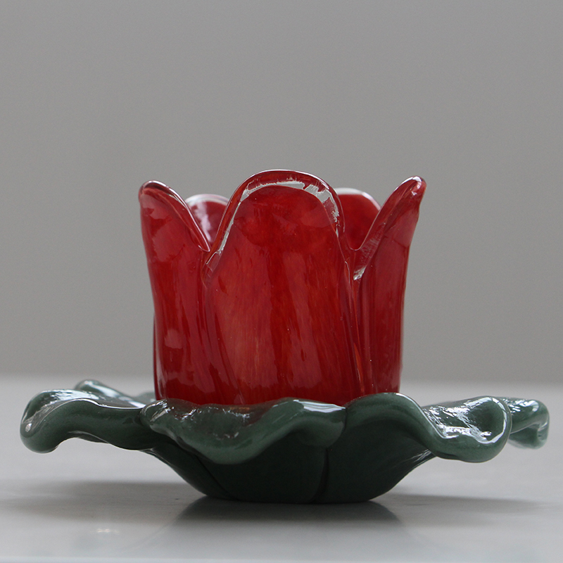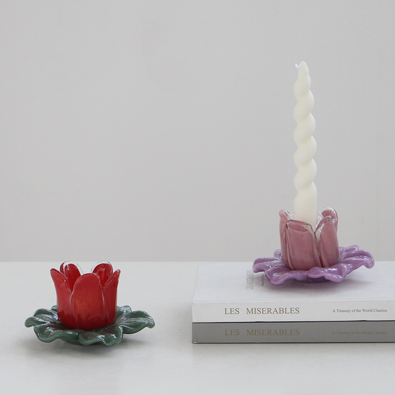 北欧ins风彩色玻璃烛台网红餐厅创意玫瑰烛台简约婚庆烛台装饰品