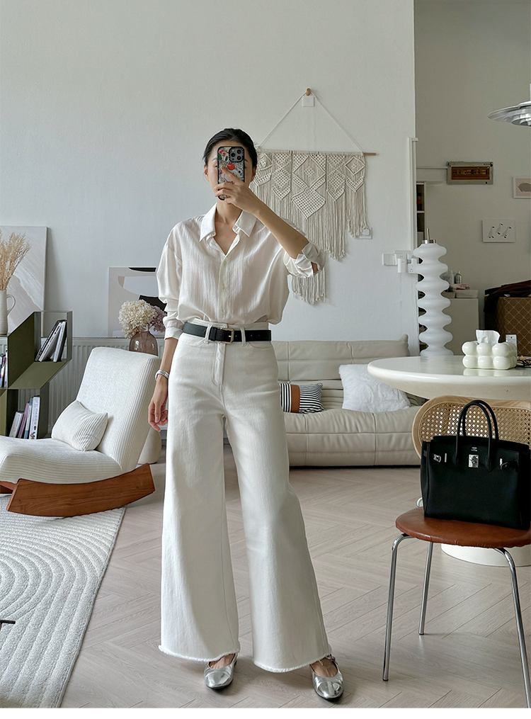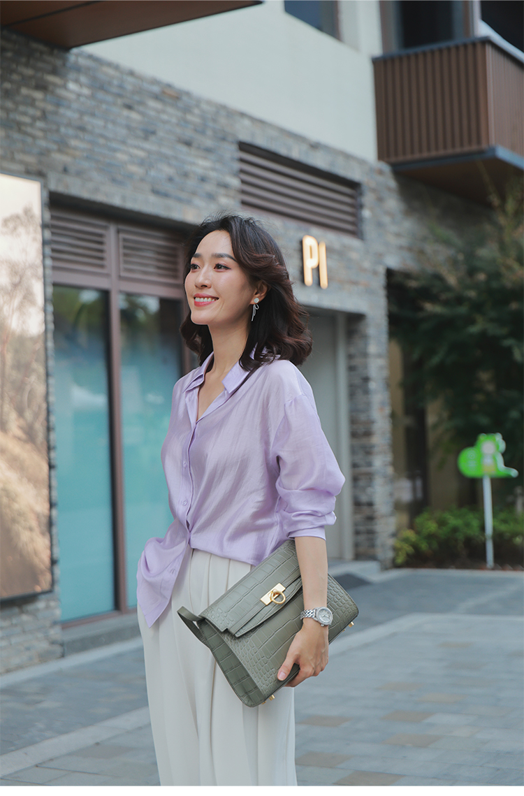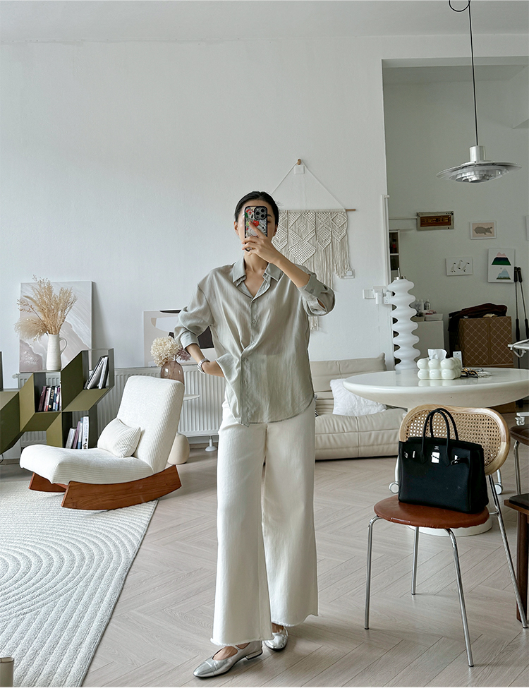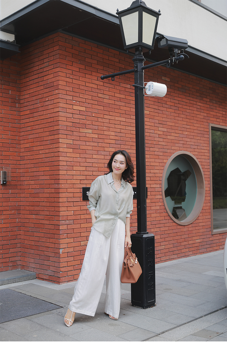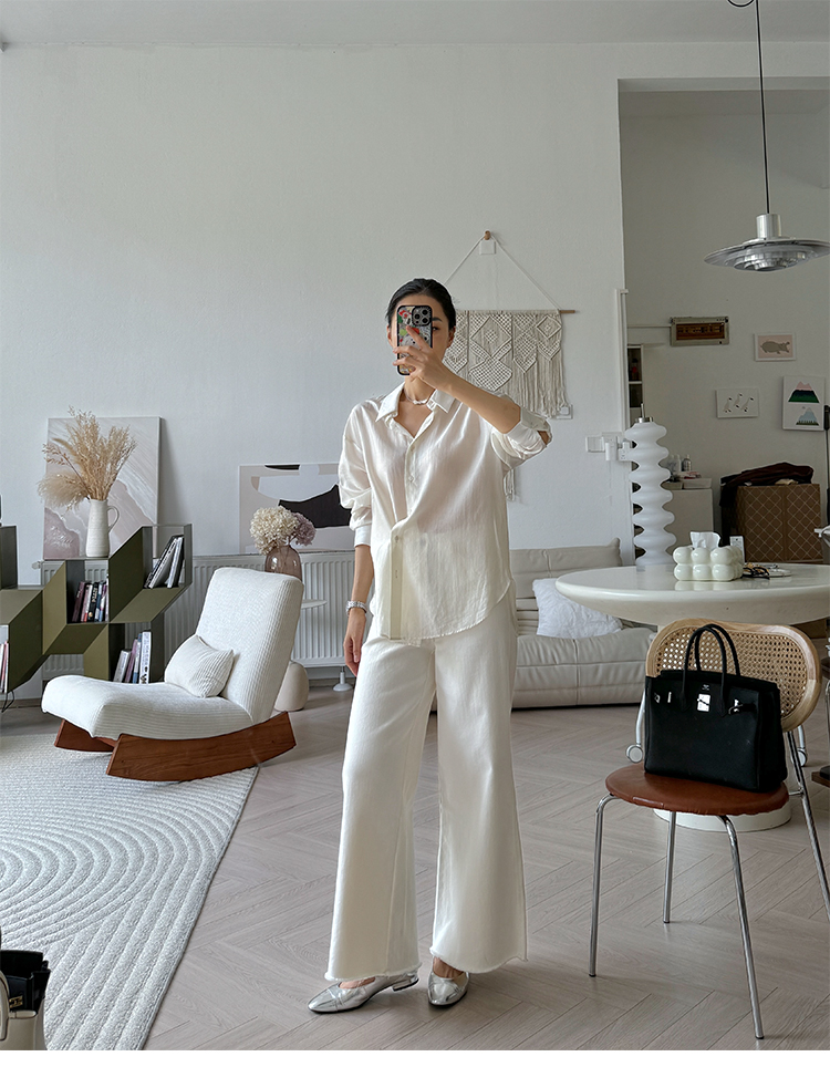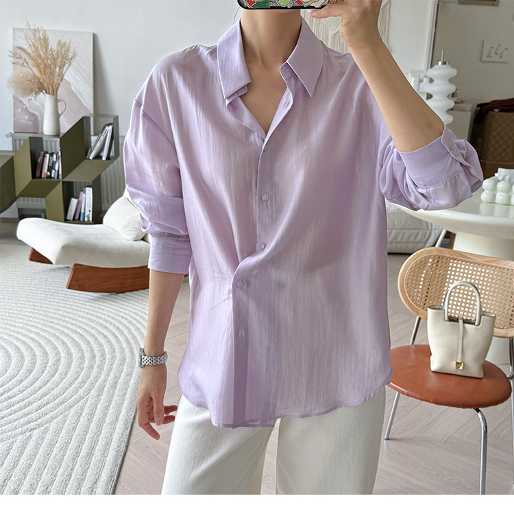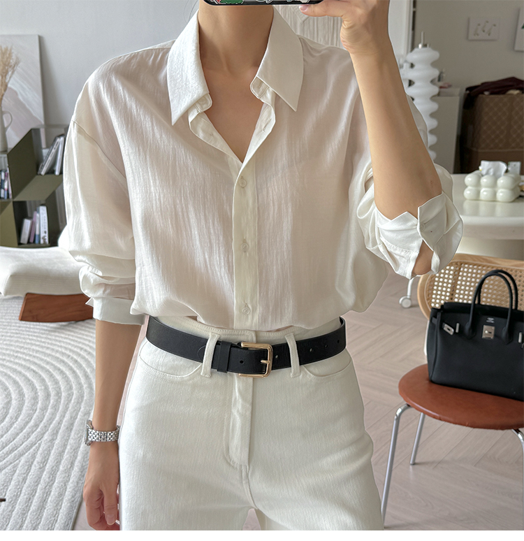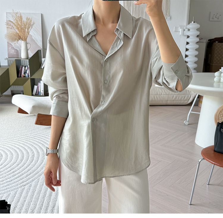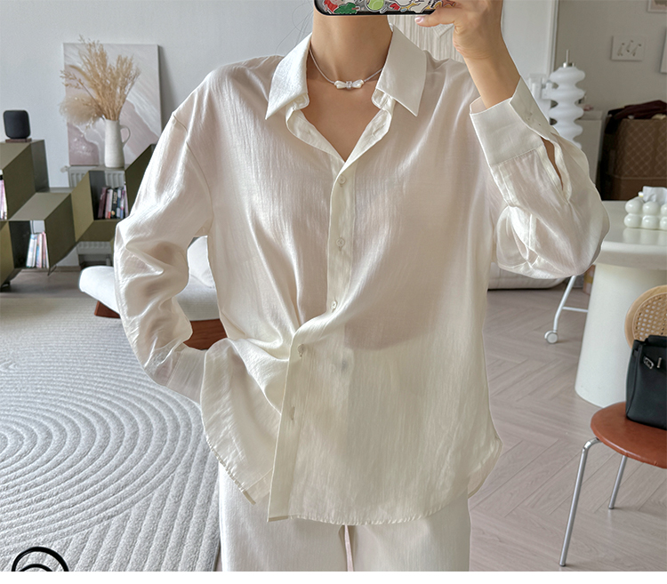 “蝉翼流光”法式极简风扭褶设计 宽松微透感衬衫