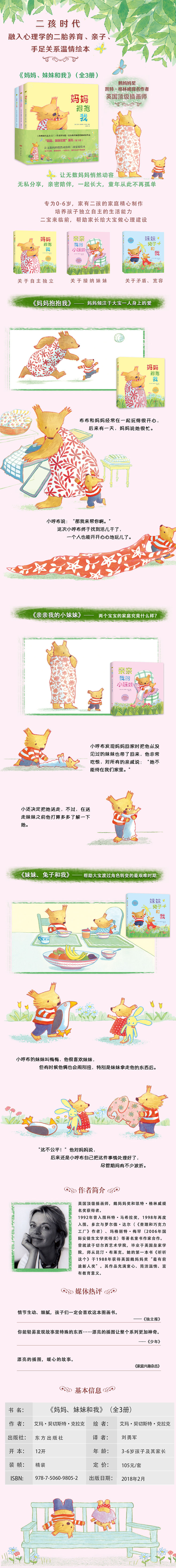 《妈妈、妹妹和我》(全3册) 让无数妈妈悄然动容的二孩家庭绘本。唤醒父母对大宝的心理关怀,让兄弟姐妹和谐相处
