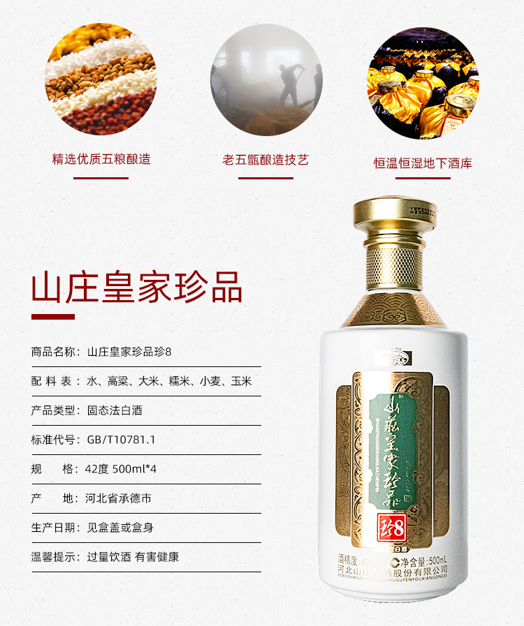 【新品上市】山庄珍品珍8浓香型42度500ml*4整箱装