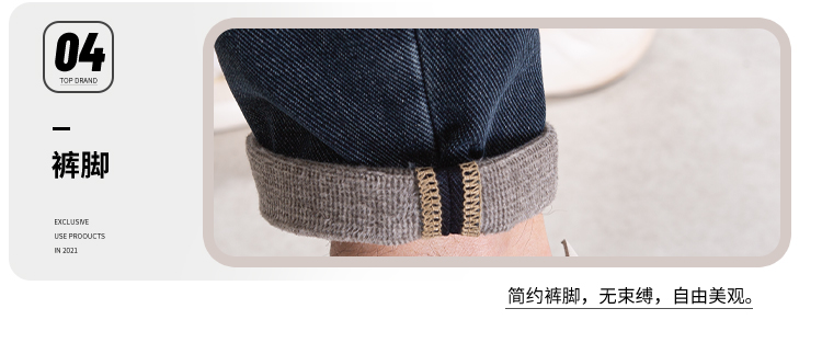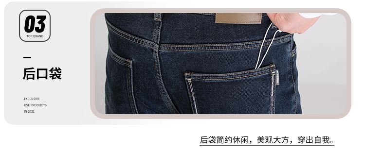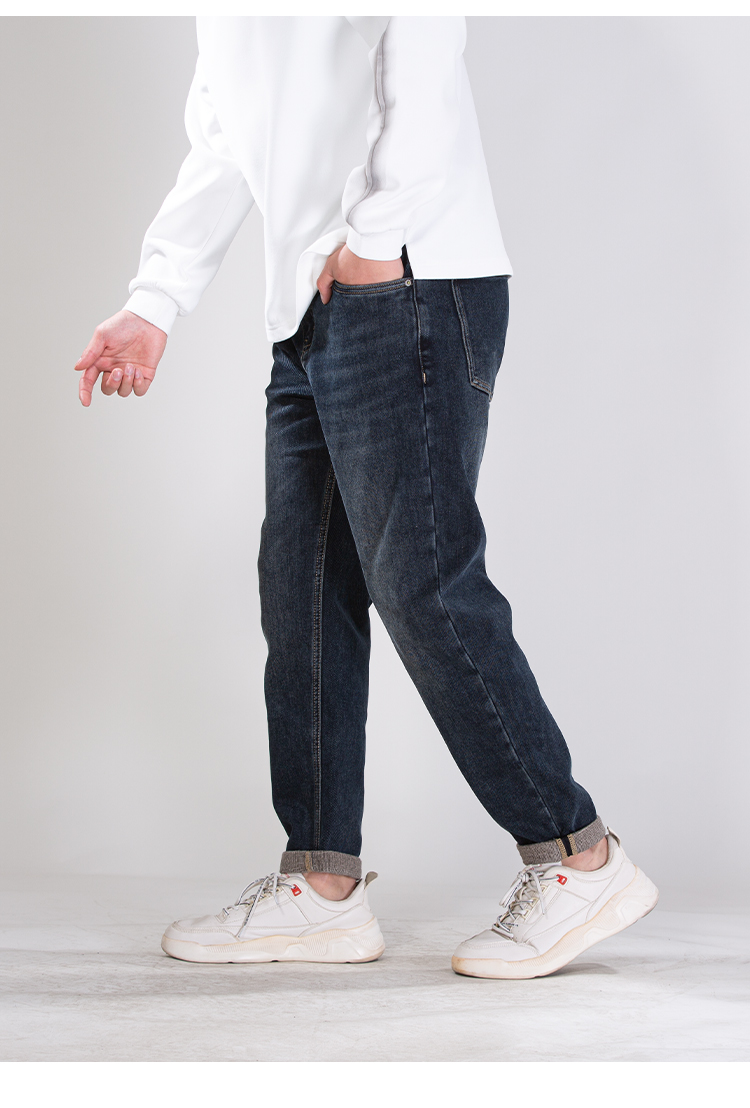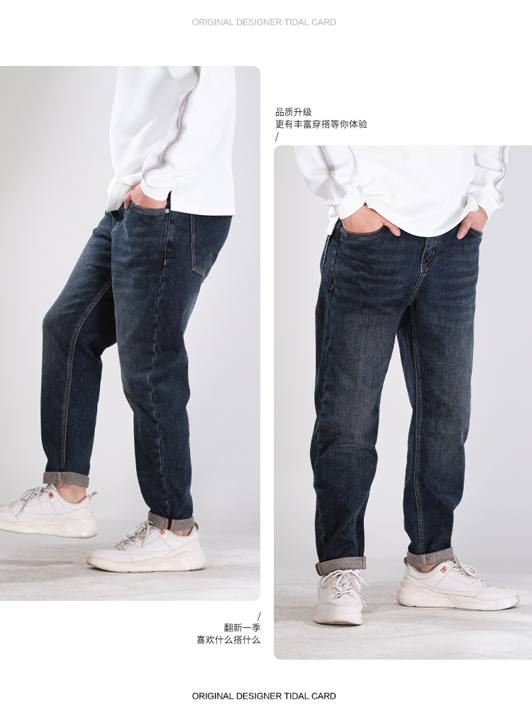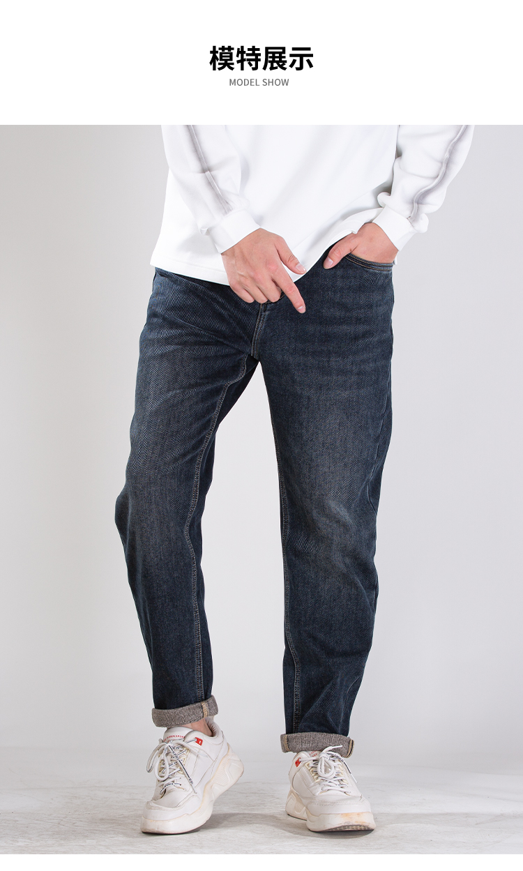 DRONKOO 2025 正常腰表袋右后袋绿色刺绣一体绒厚牛仔长裤