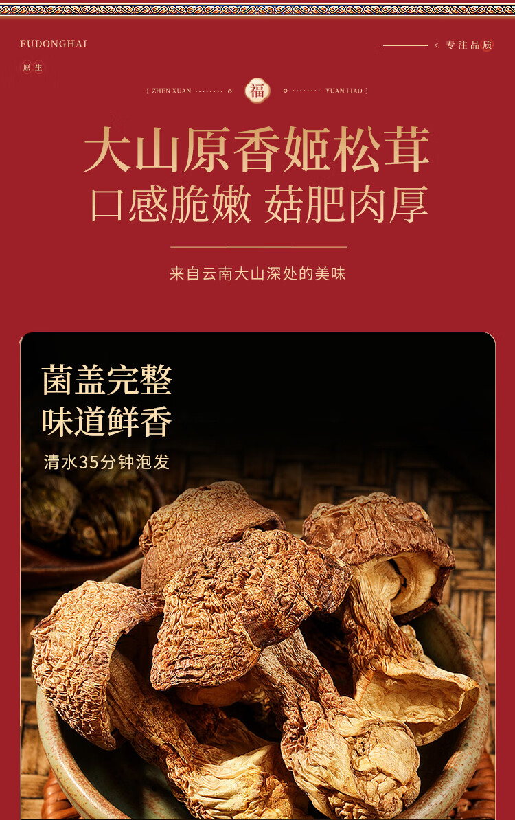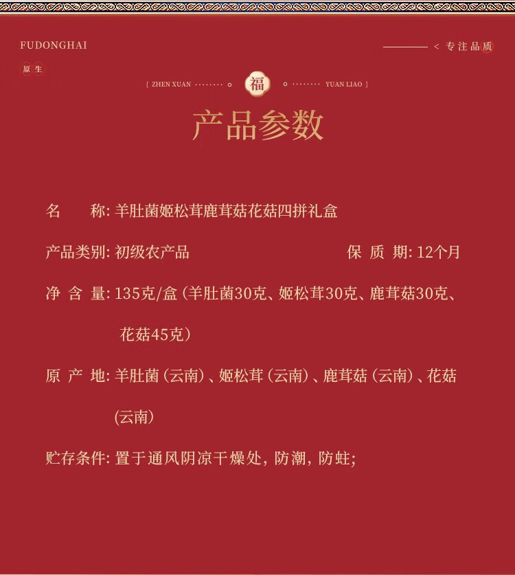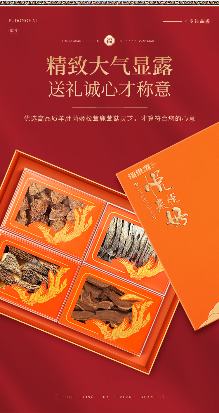 【福东海】羊肚菌姬松茸鹿茸菇花菇四拼礼盒135克/盒 羊肚菌30克+姬松茸30克+鹿茸菇30克+花菇45克