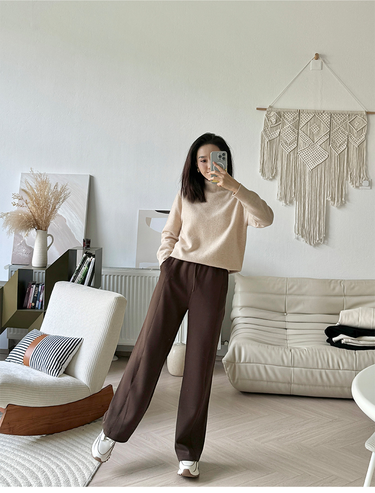 “新晋神裤” 卡其色高腰休闲直筒九分西裤