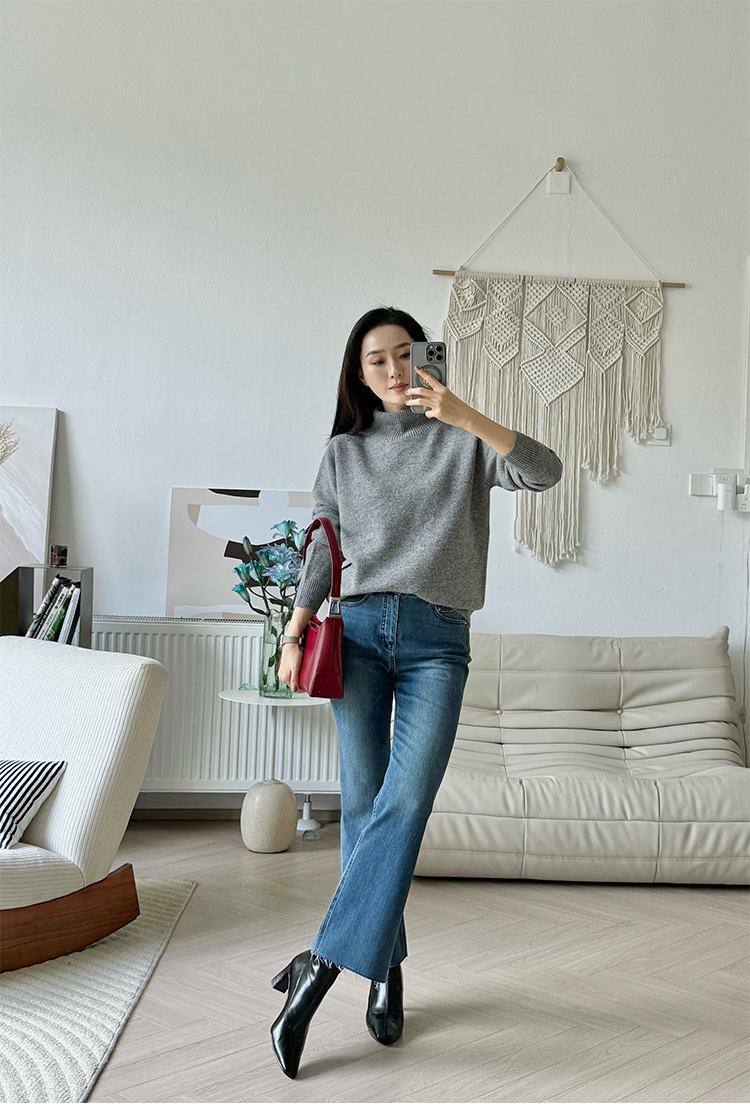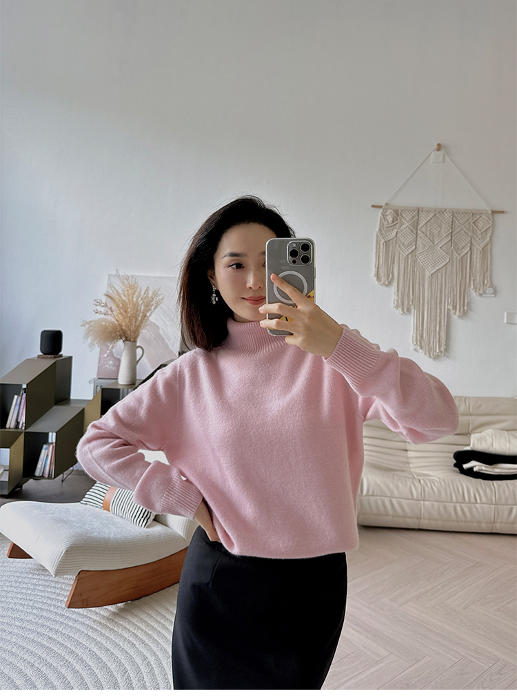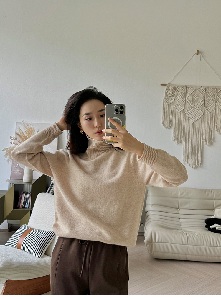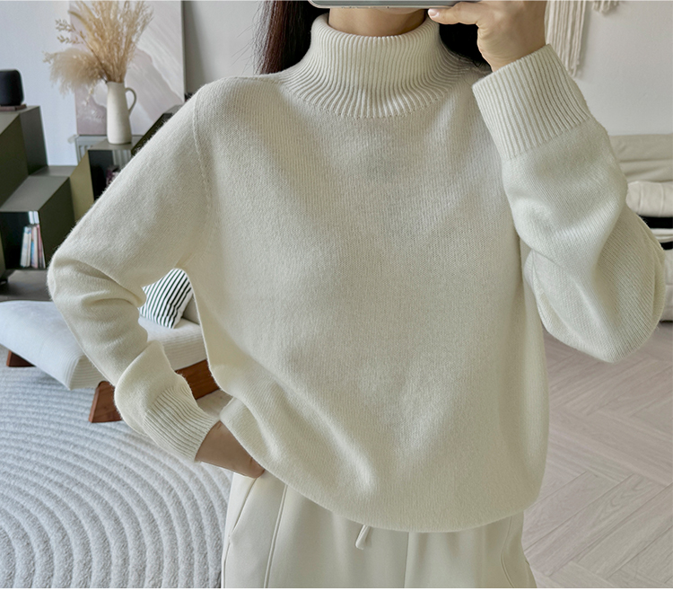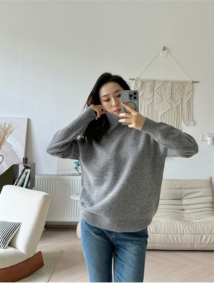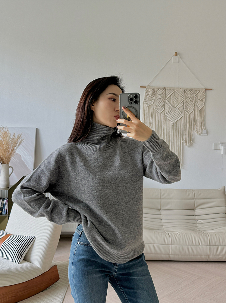 简约宽松感 全羊毛高领针织毛衣