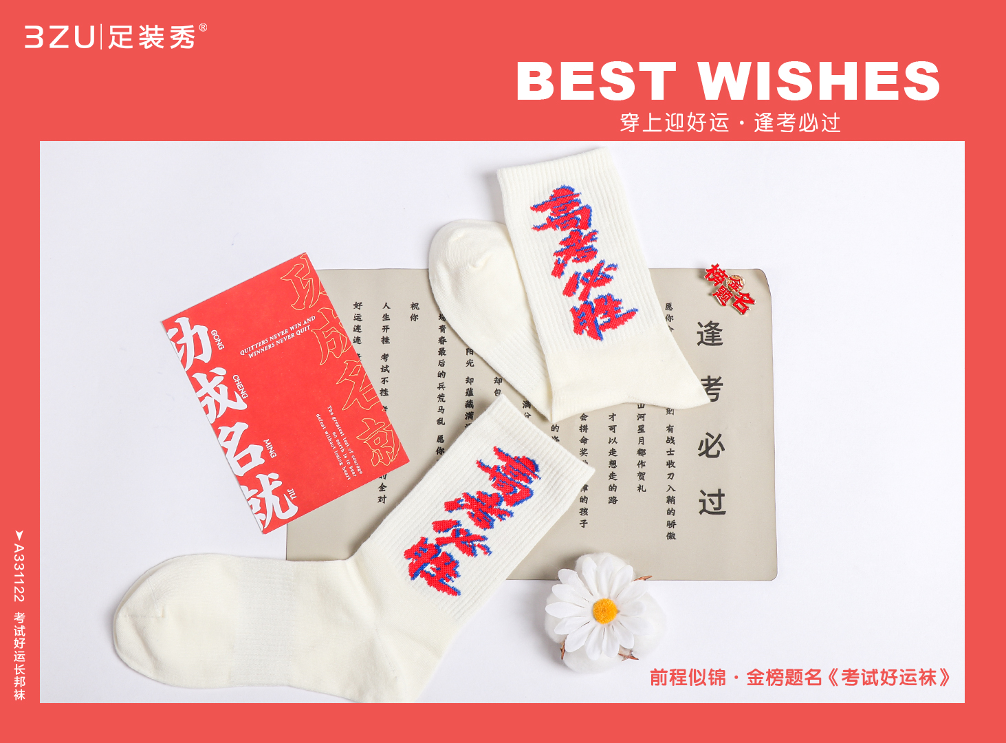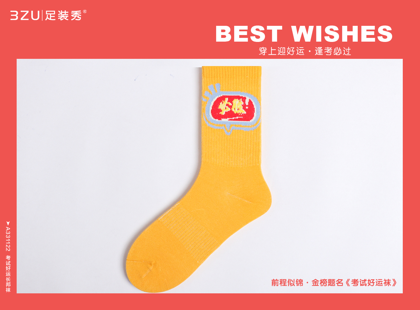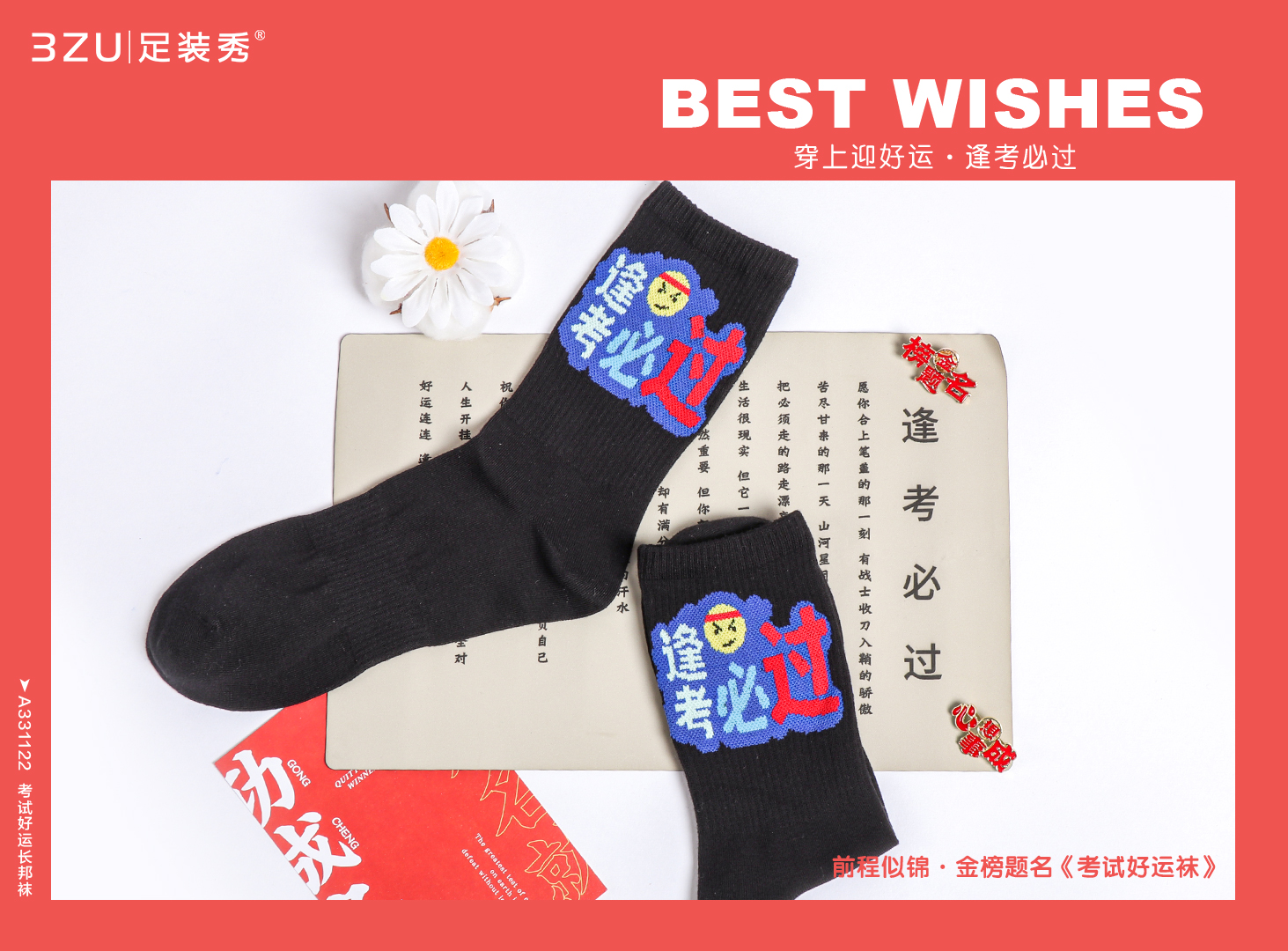 23春夏新品精梳棉200针编织考试好运手工缝头长邦袜男女均可穿