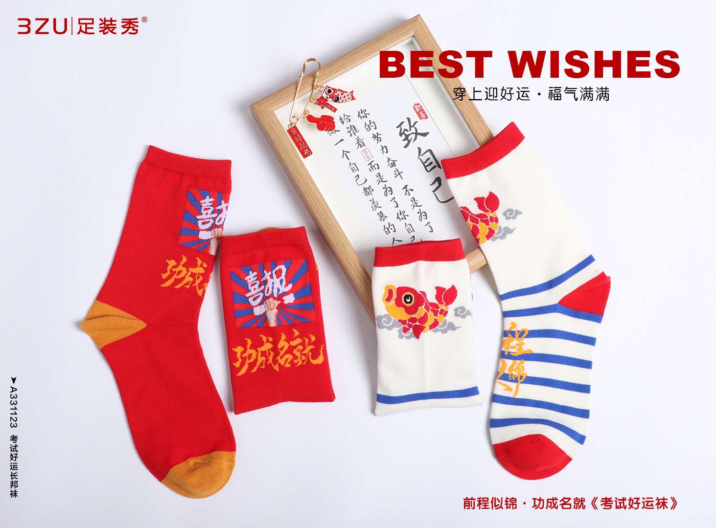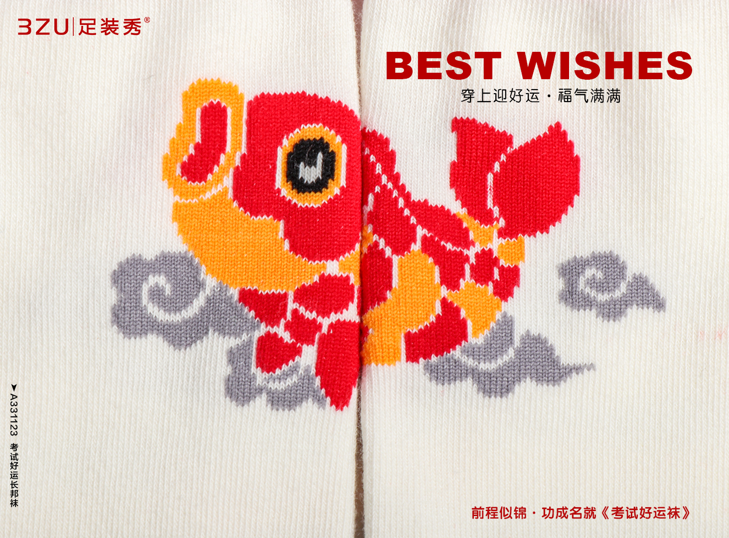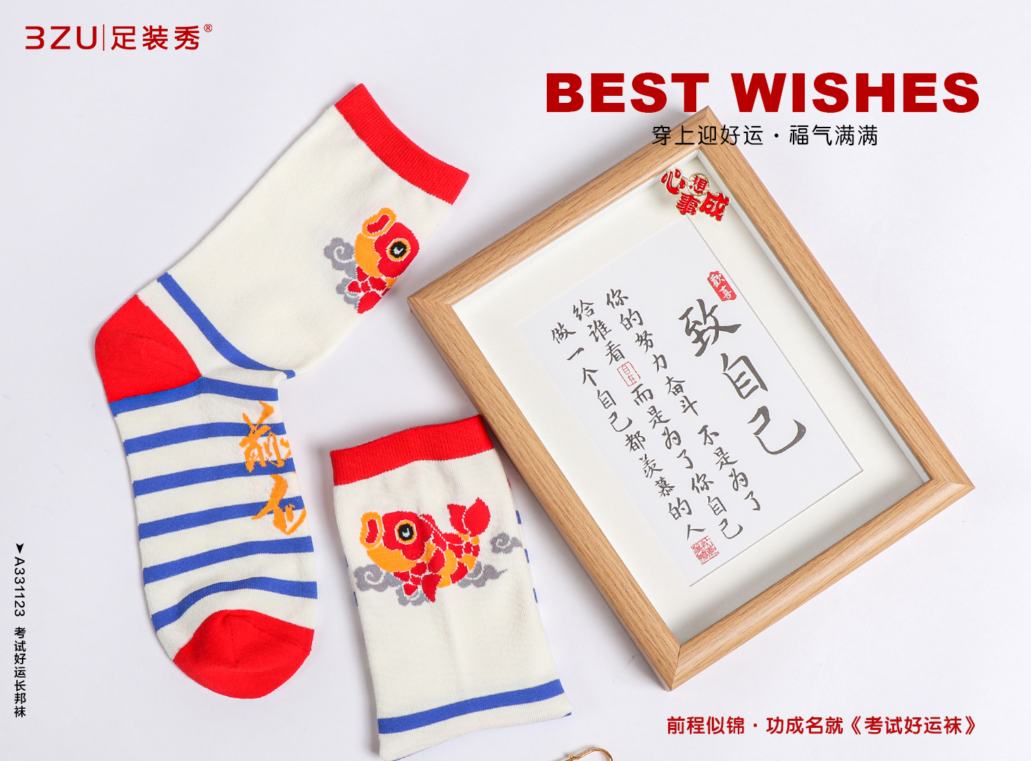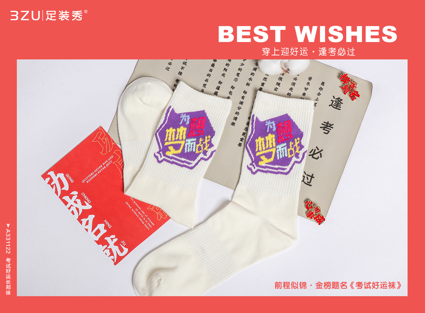 23春夏新品精梳棉200针编织考试好运手工缝头长邦袜男女均可穿