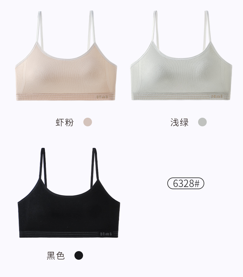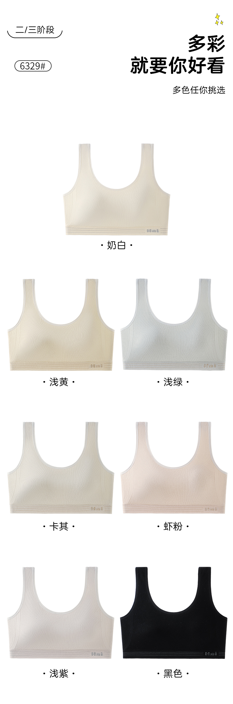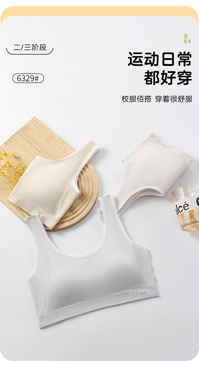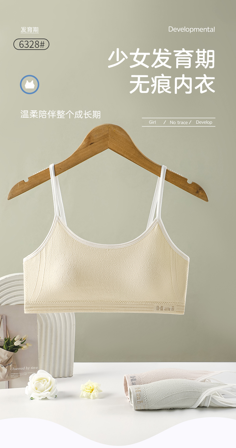 女士少女文胸无缝三阶段全固定杯少女Bra运动防震少女背心窄肩宽肩6328/6329