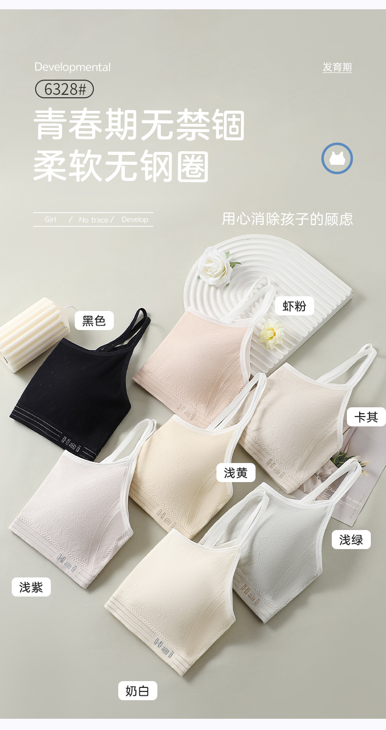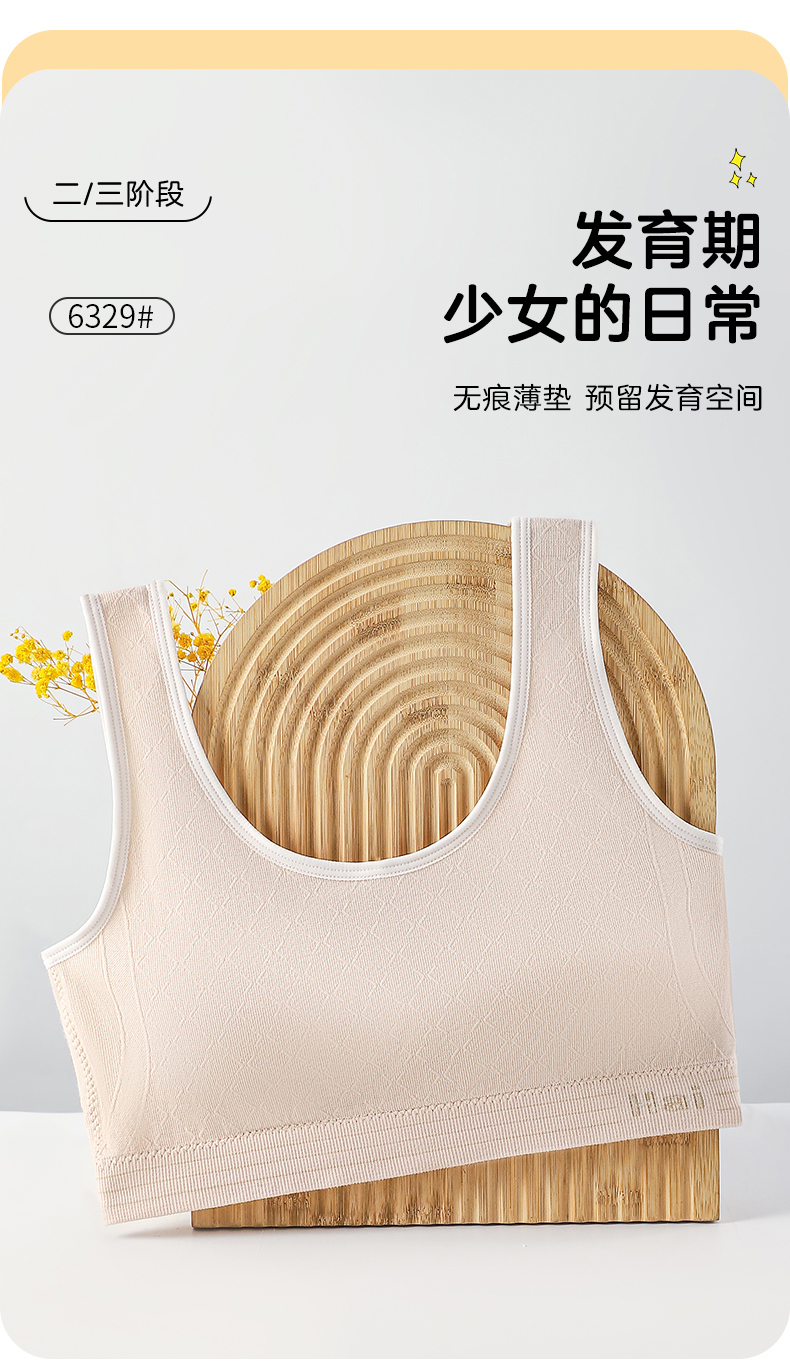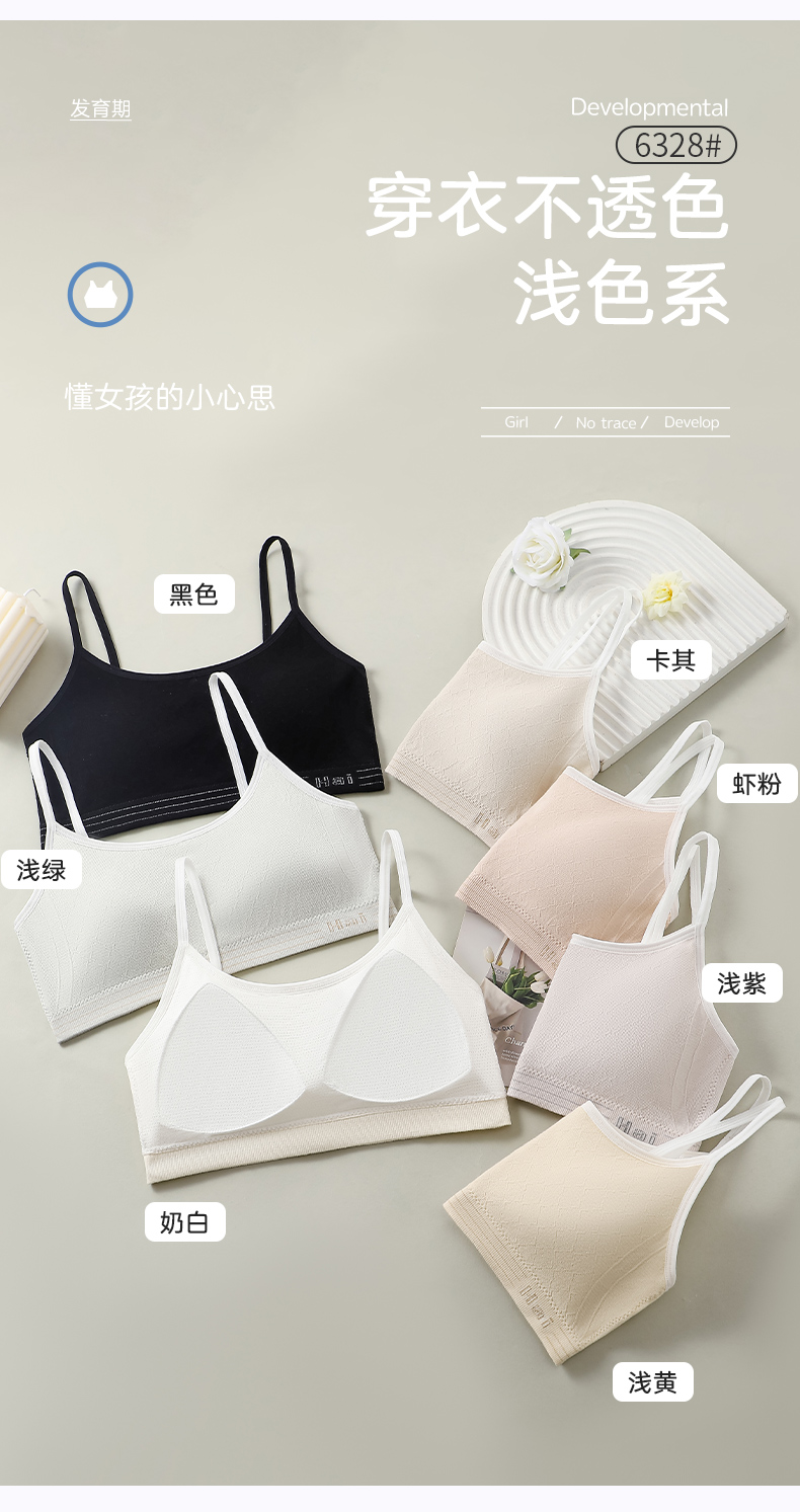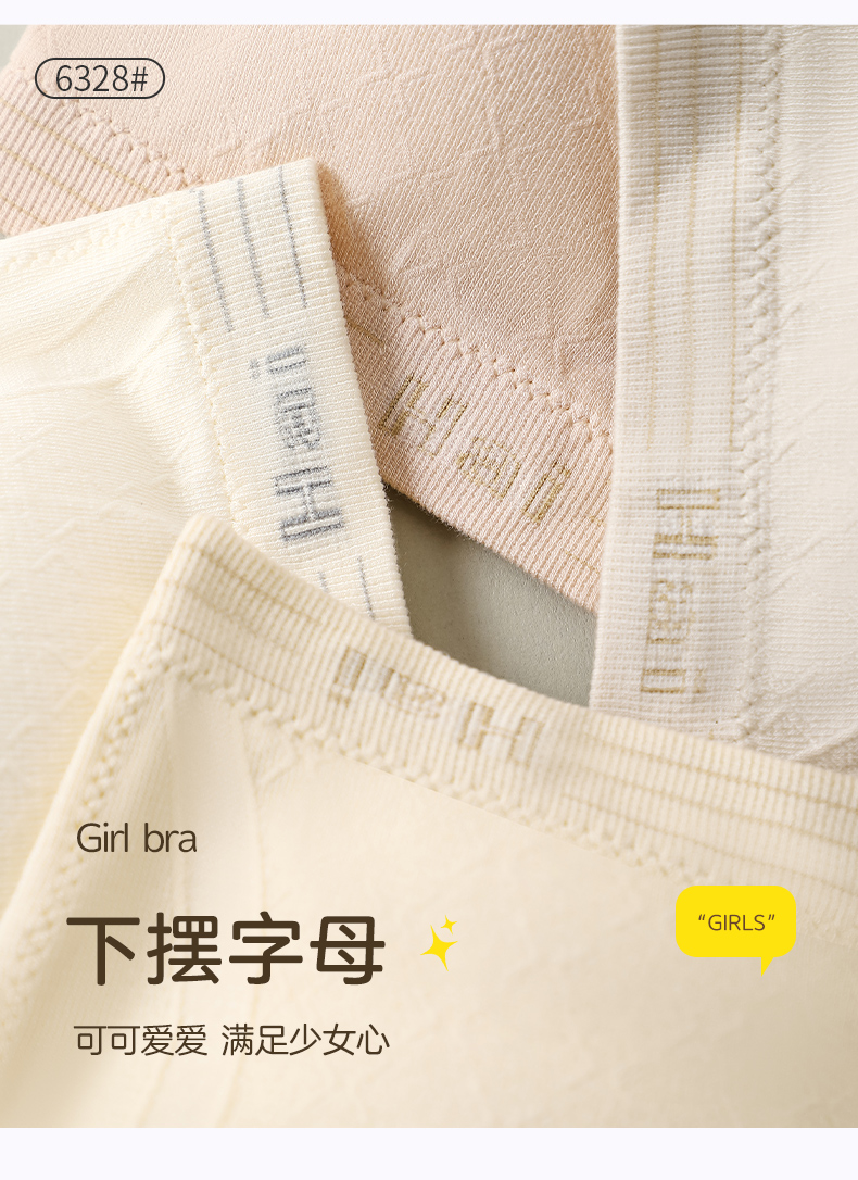 女士少女文胸无缝三阶段全固定杯少女Bra运动防震少女背心窄肩宽肩6328/6329