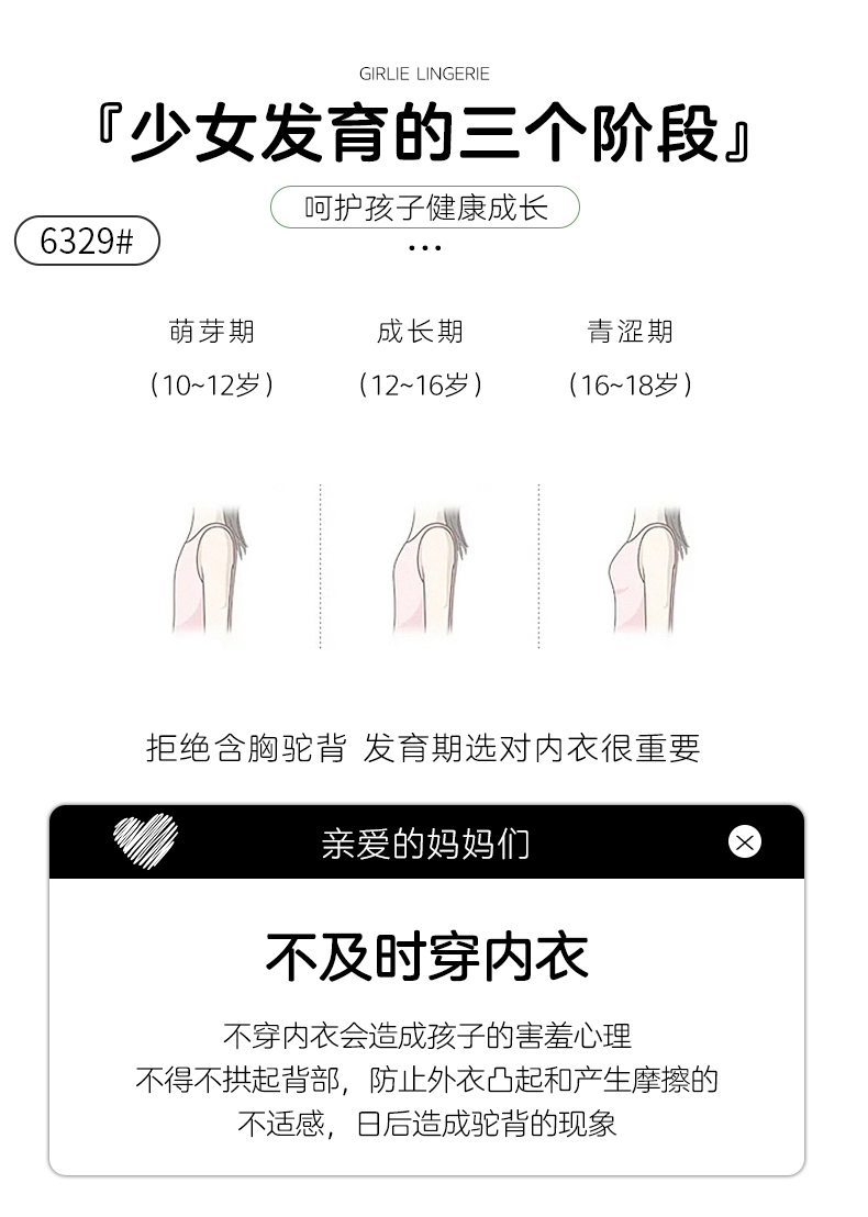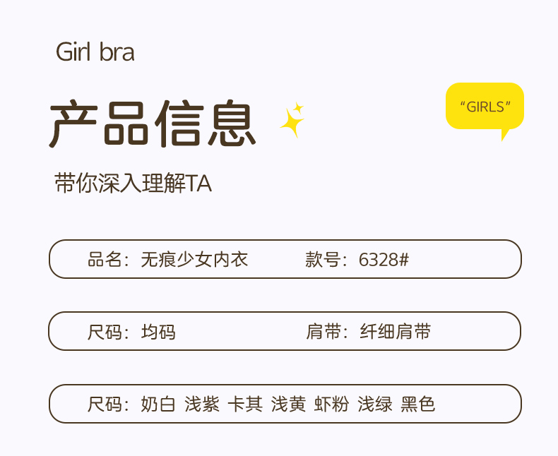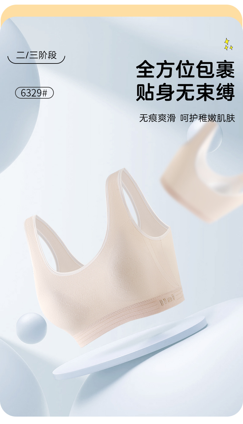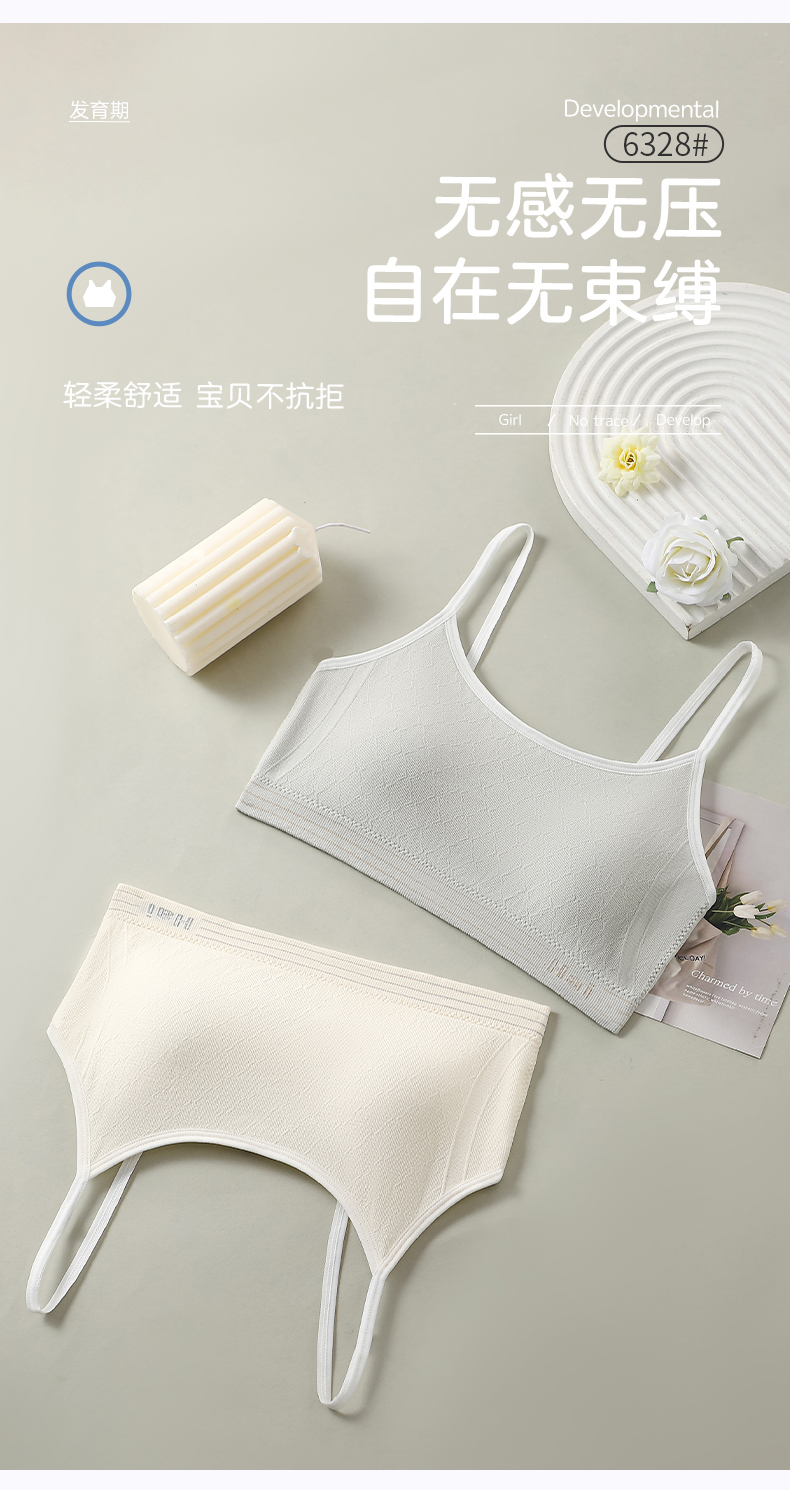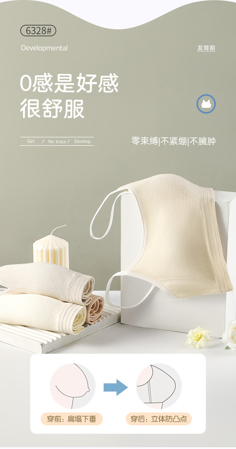 女士少女文胸无缝三阶段全固定杯少女Bra运动防震少女背心窄肩宽肩6328/6329