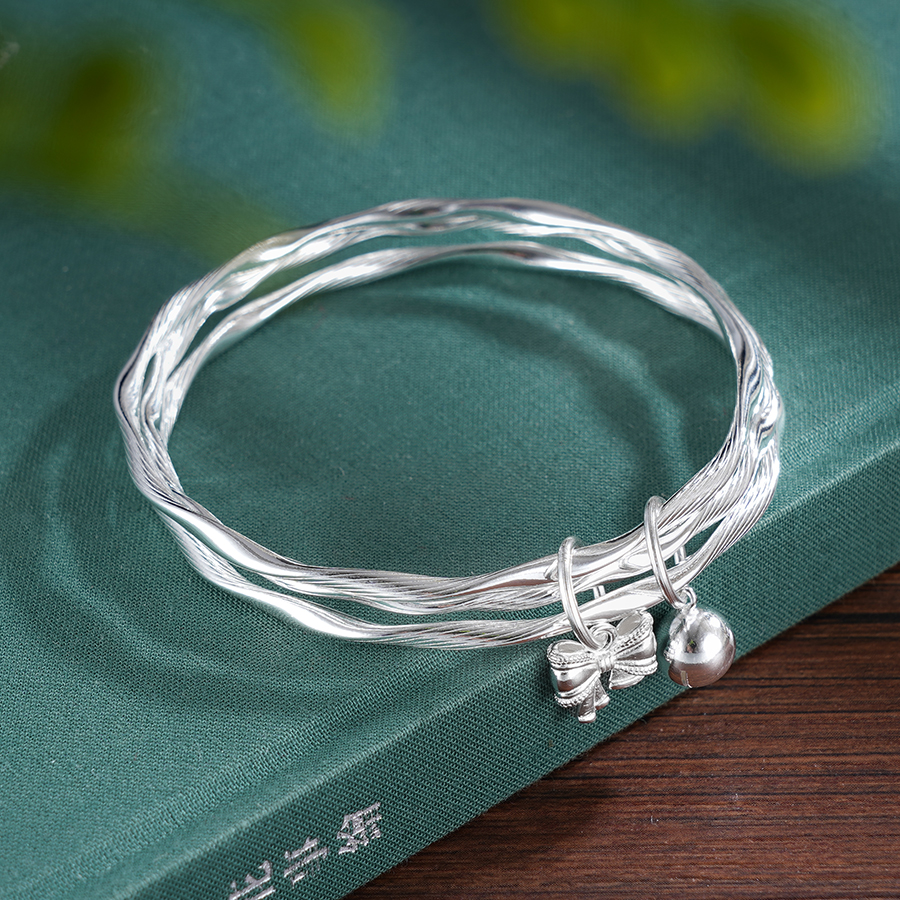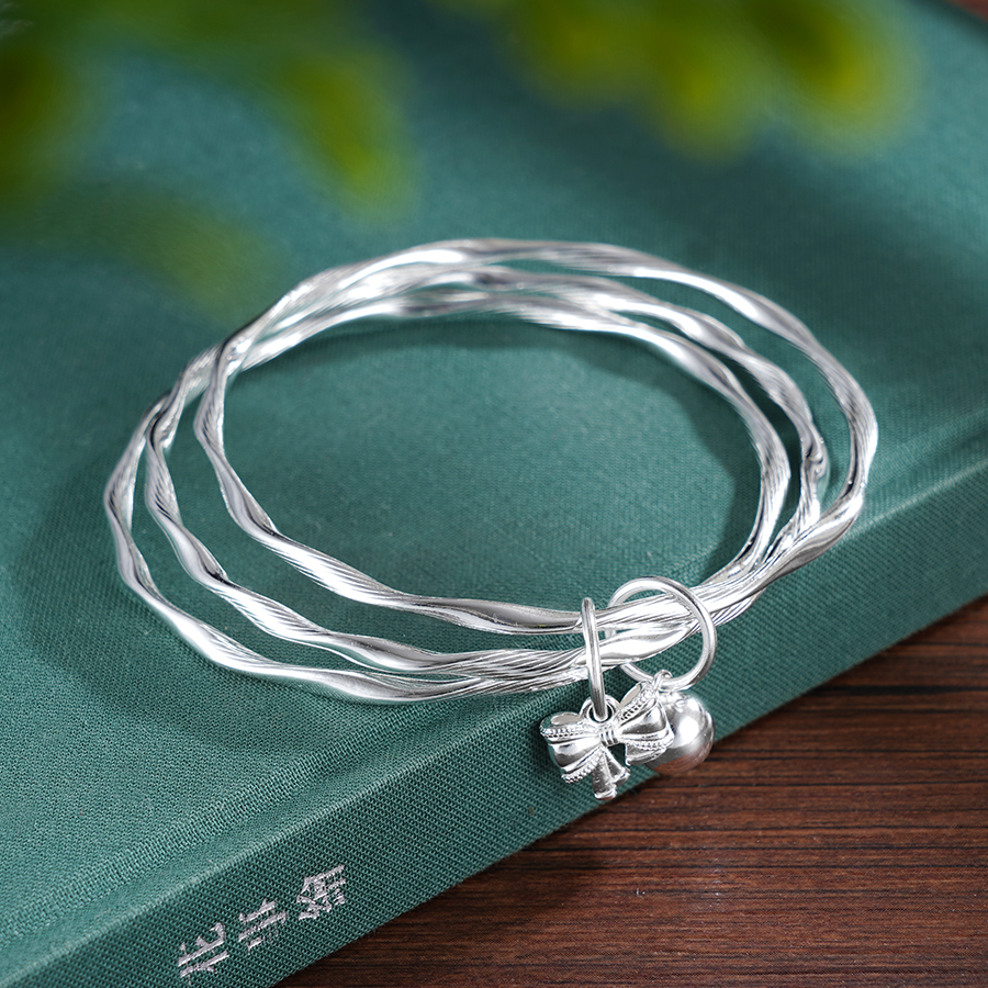 【寓意】:一款独特的三圈闭口手镯,戴上显白显瘦细。手镯之上点缀蝴蝶结小坠饰,兼具甜美与清爽之感。