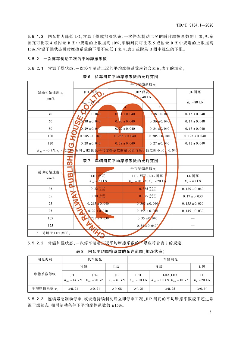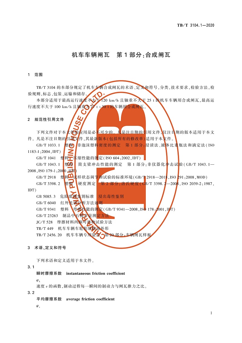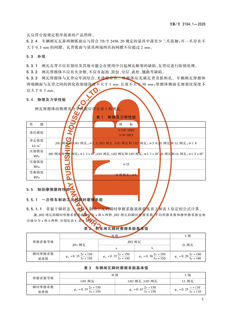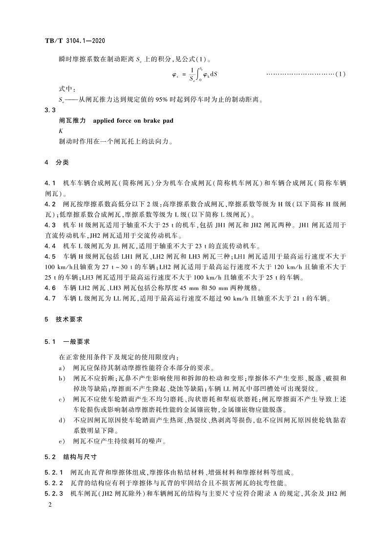 15113.6193机车车辆闸瓦 第1部分:合成闸瓦 TB/T 3104.1-2020