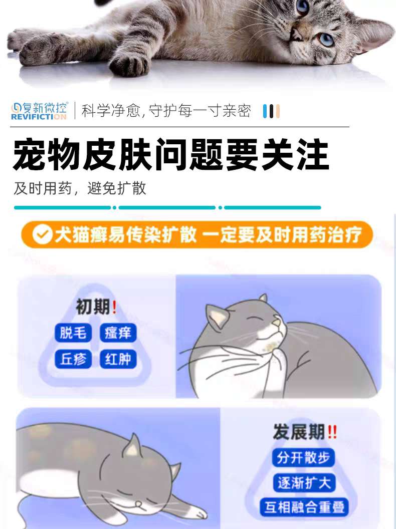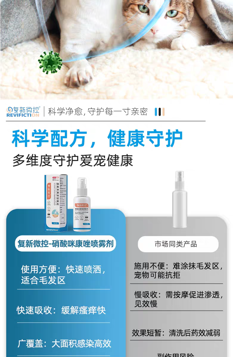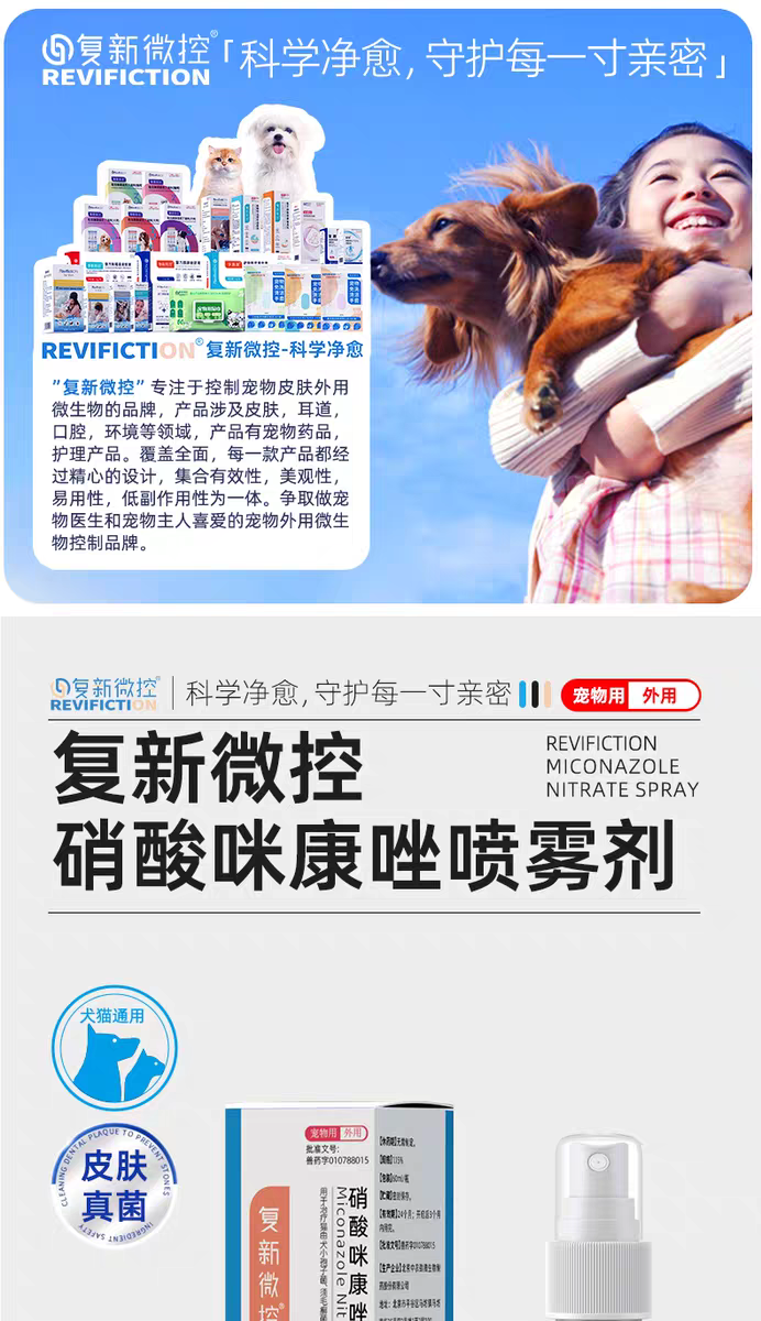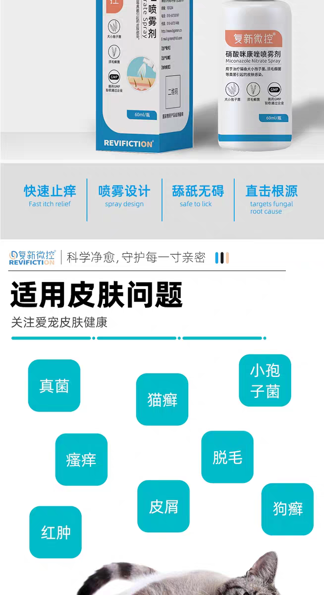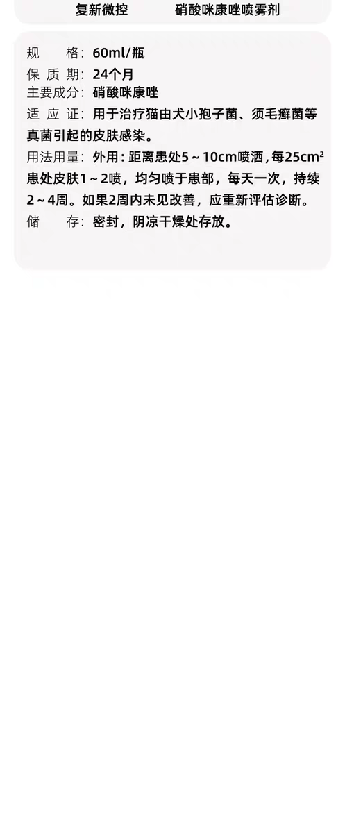 复新微控硝酸咪康唑喷雾宠物猫狗藓真菌皮屑脱毛小孢子菌马拉色